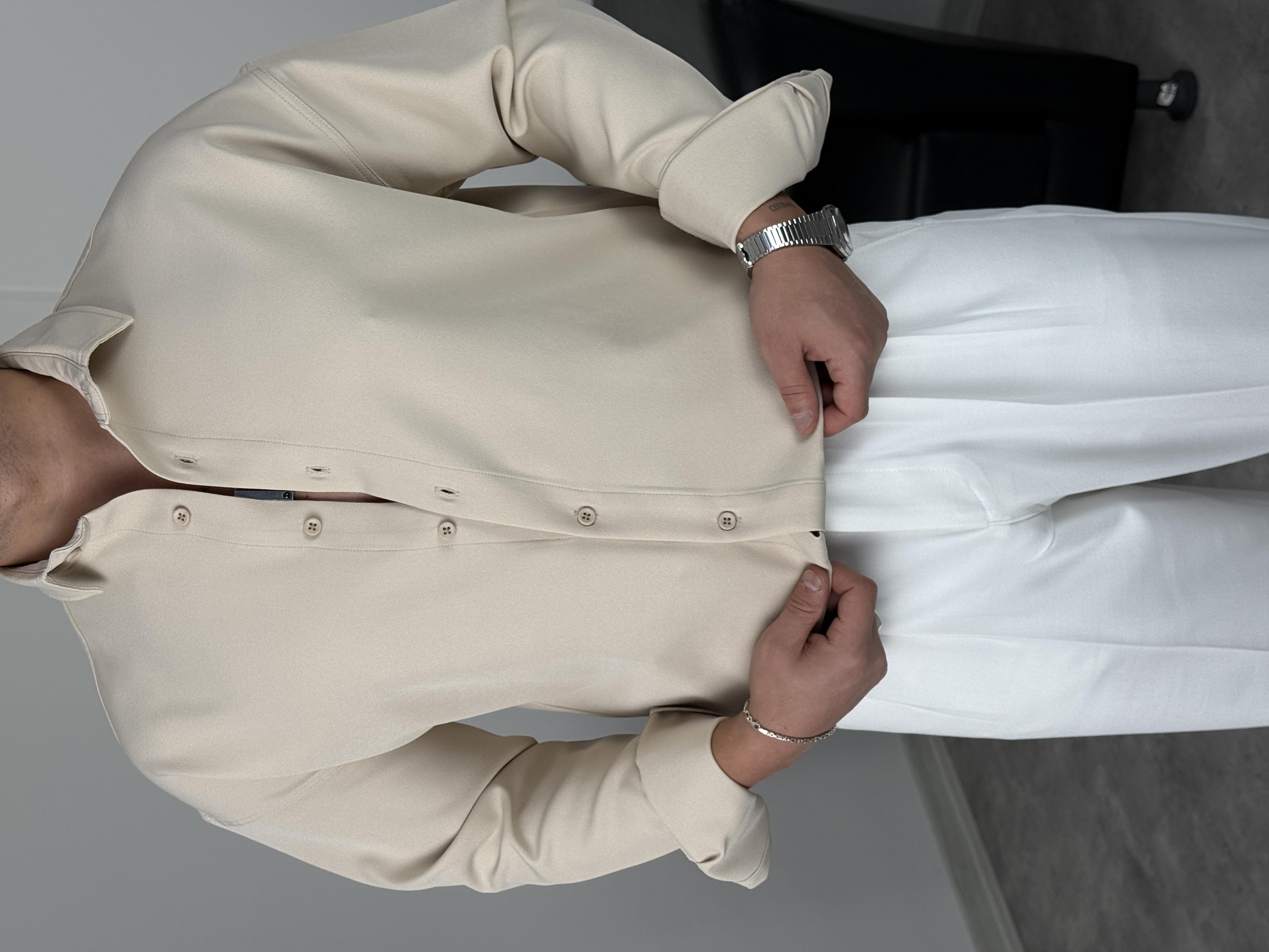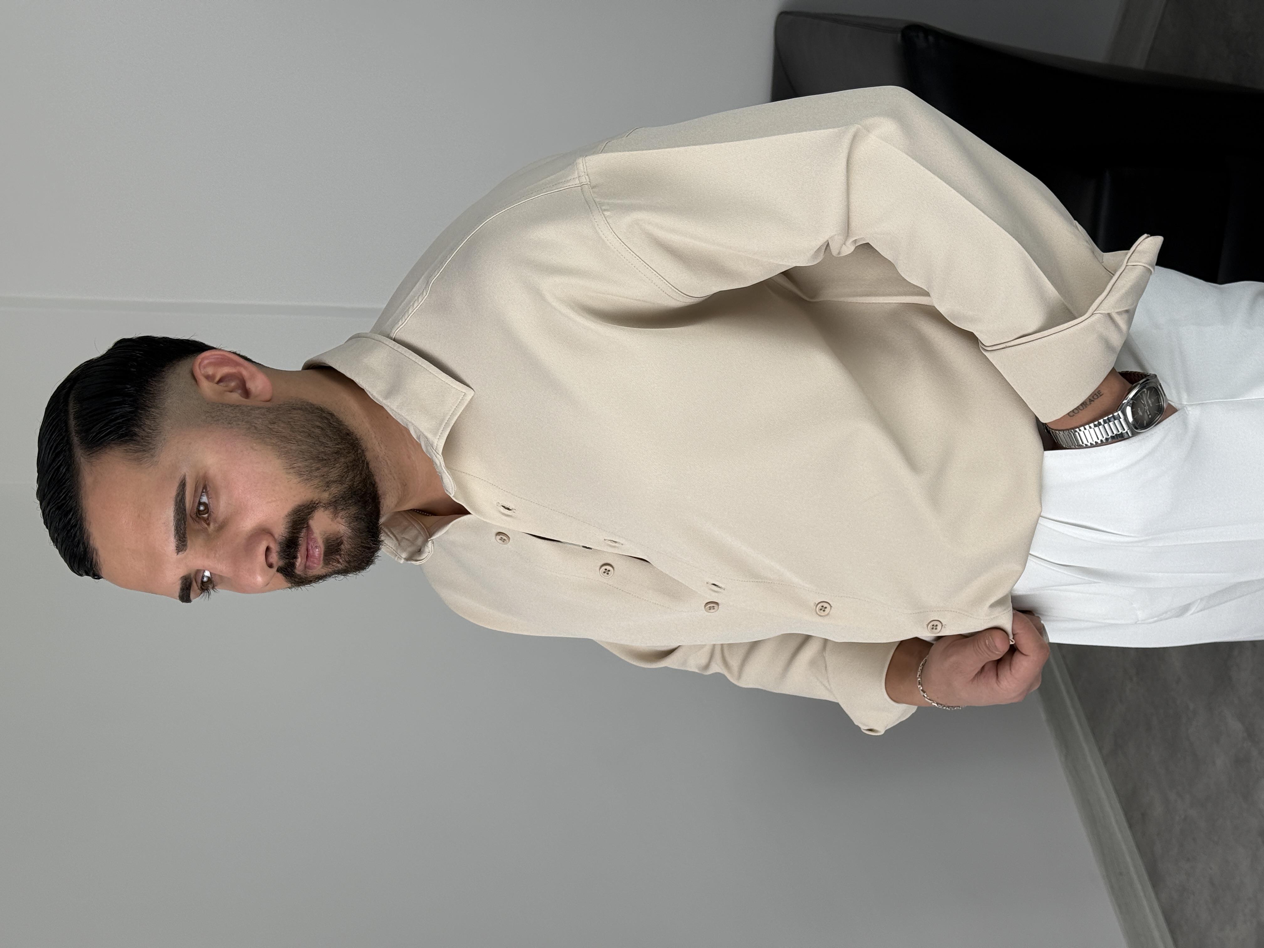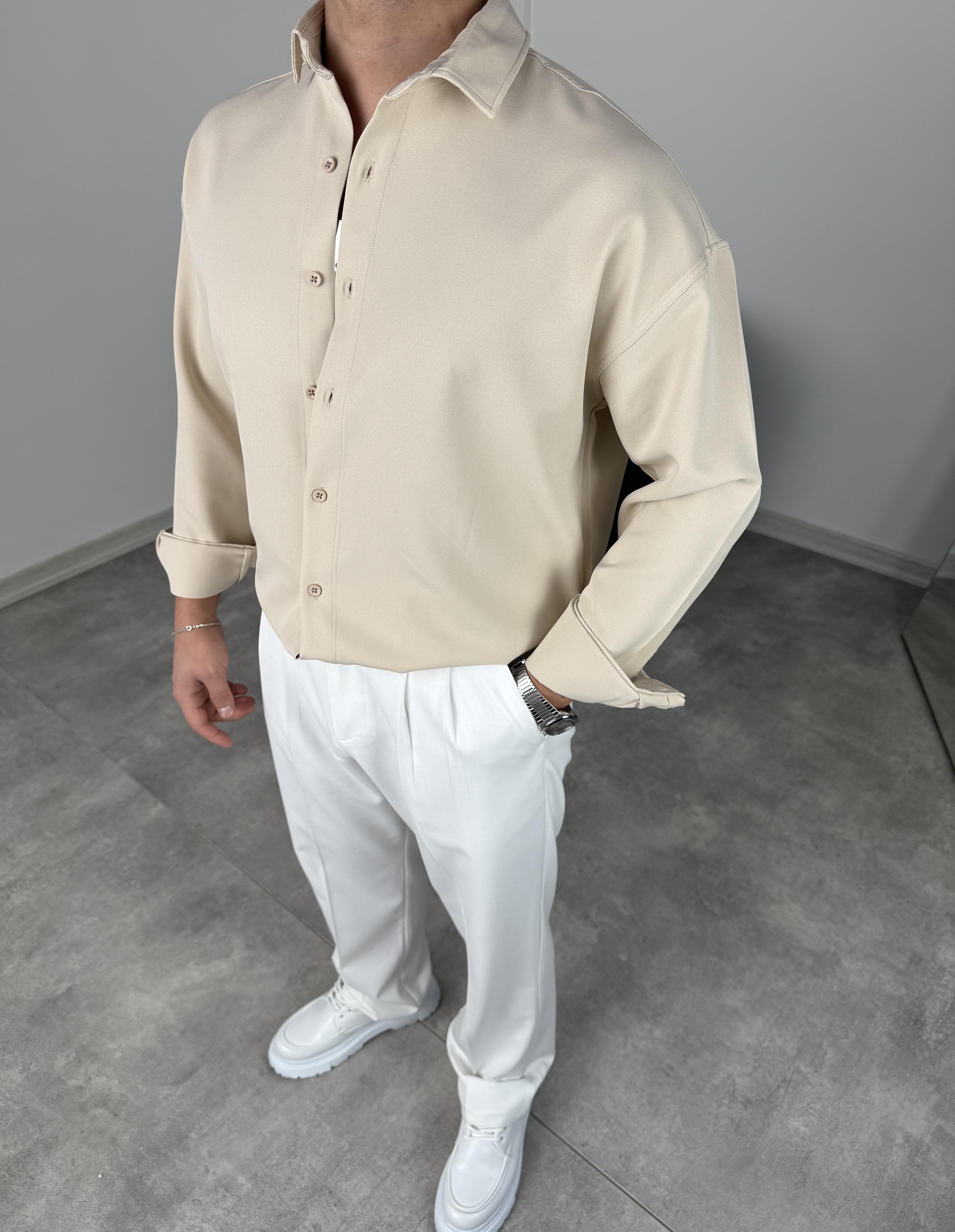 OVERSİZE DABIL İTHAL KUMAŞ GÖMLEK KREM