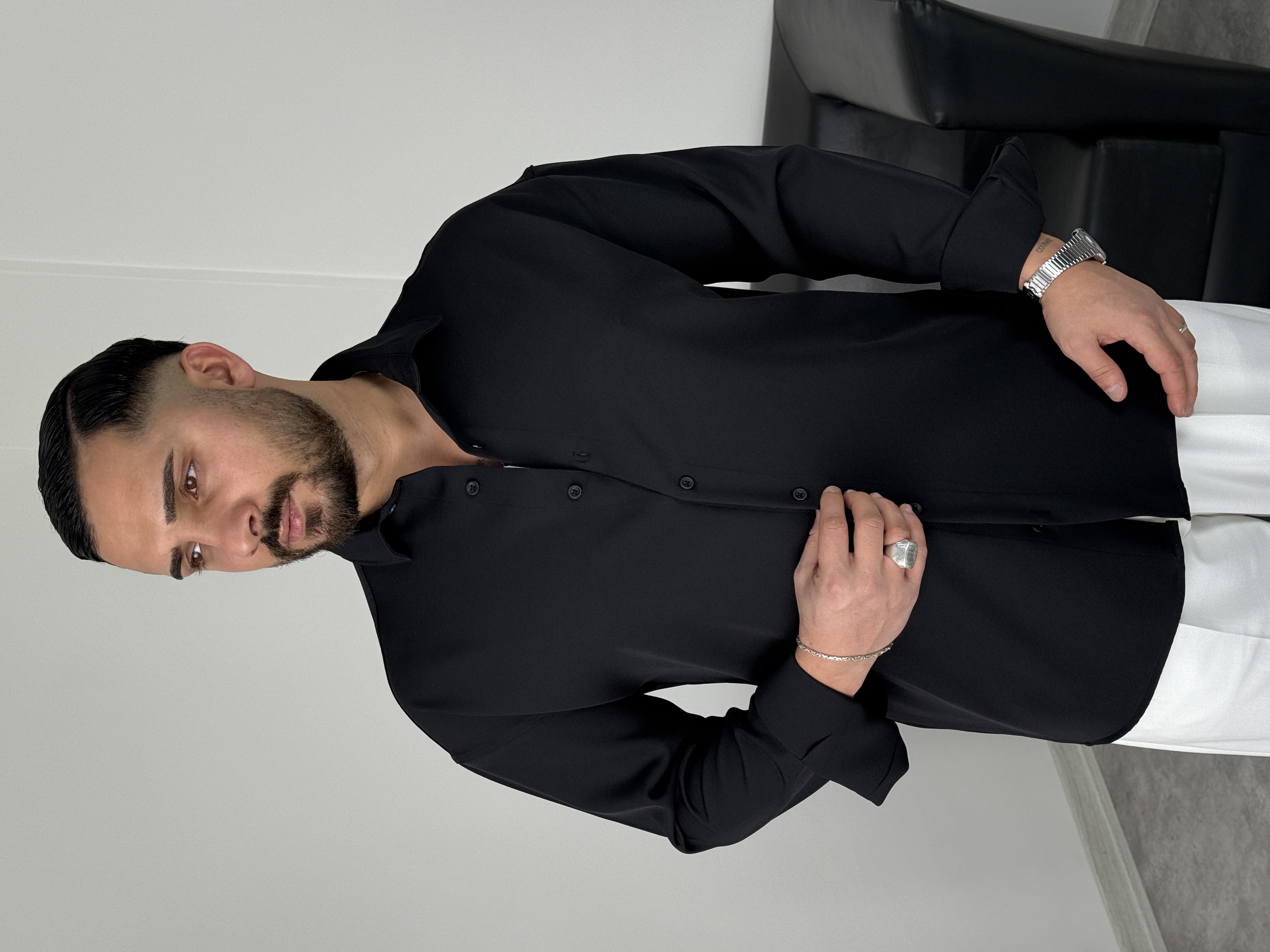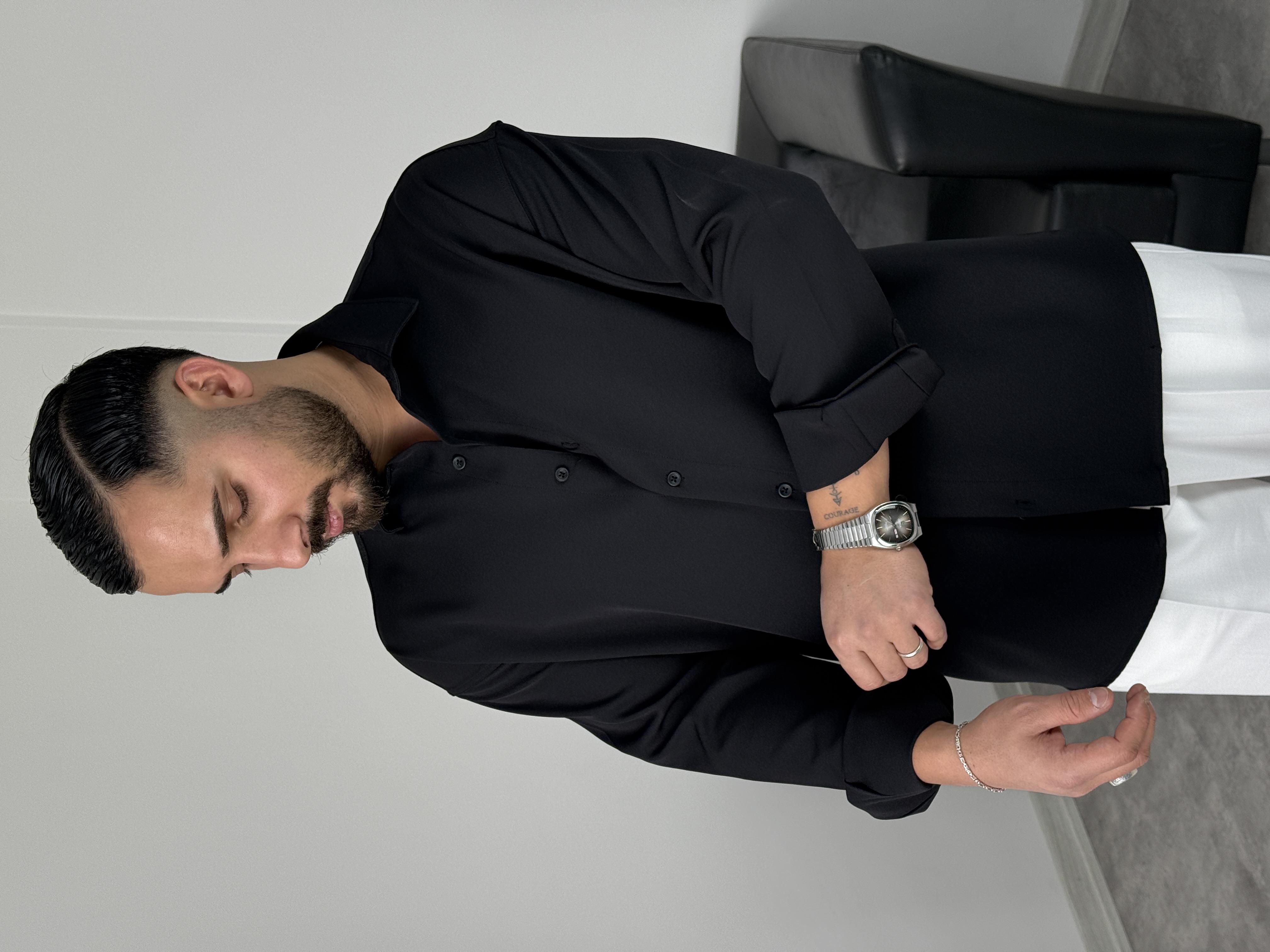 OVERSİZE DABIL İTHAL KUMAŞ GÖMLEK SİYAH