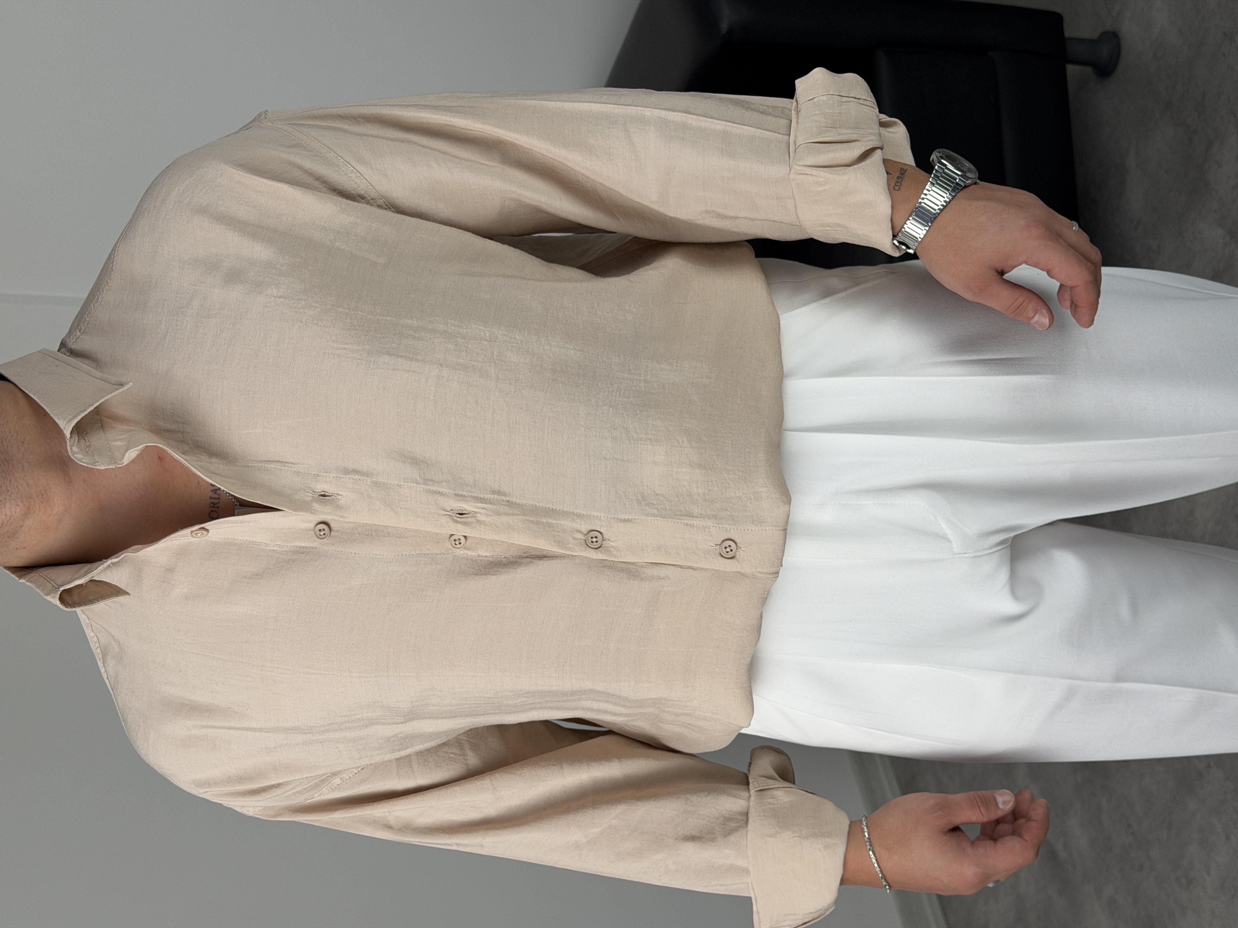 OVERSİZE PAMUK TENSEL KUMAŞ GÖMLEK BEJ
