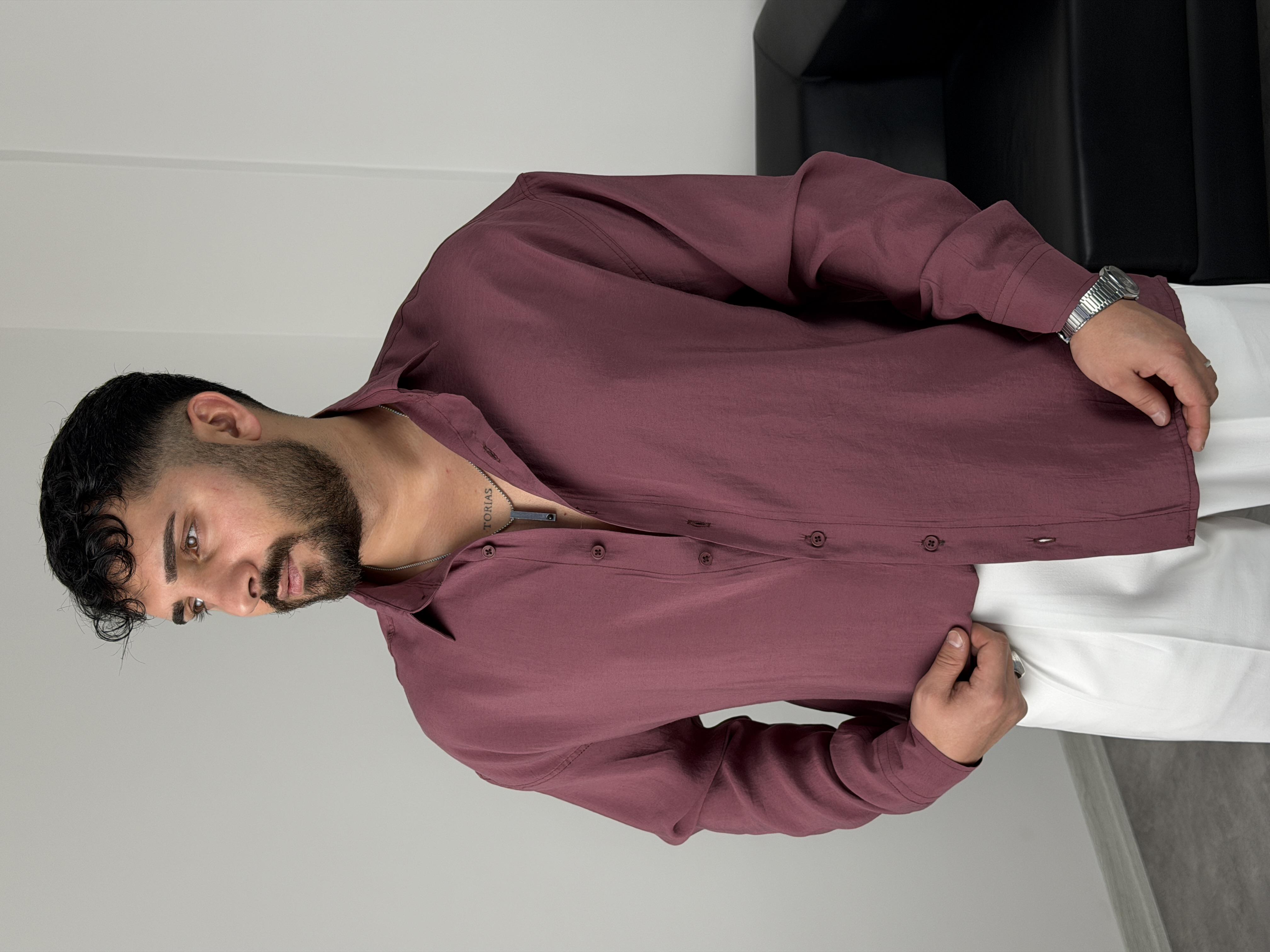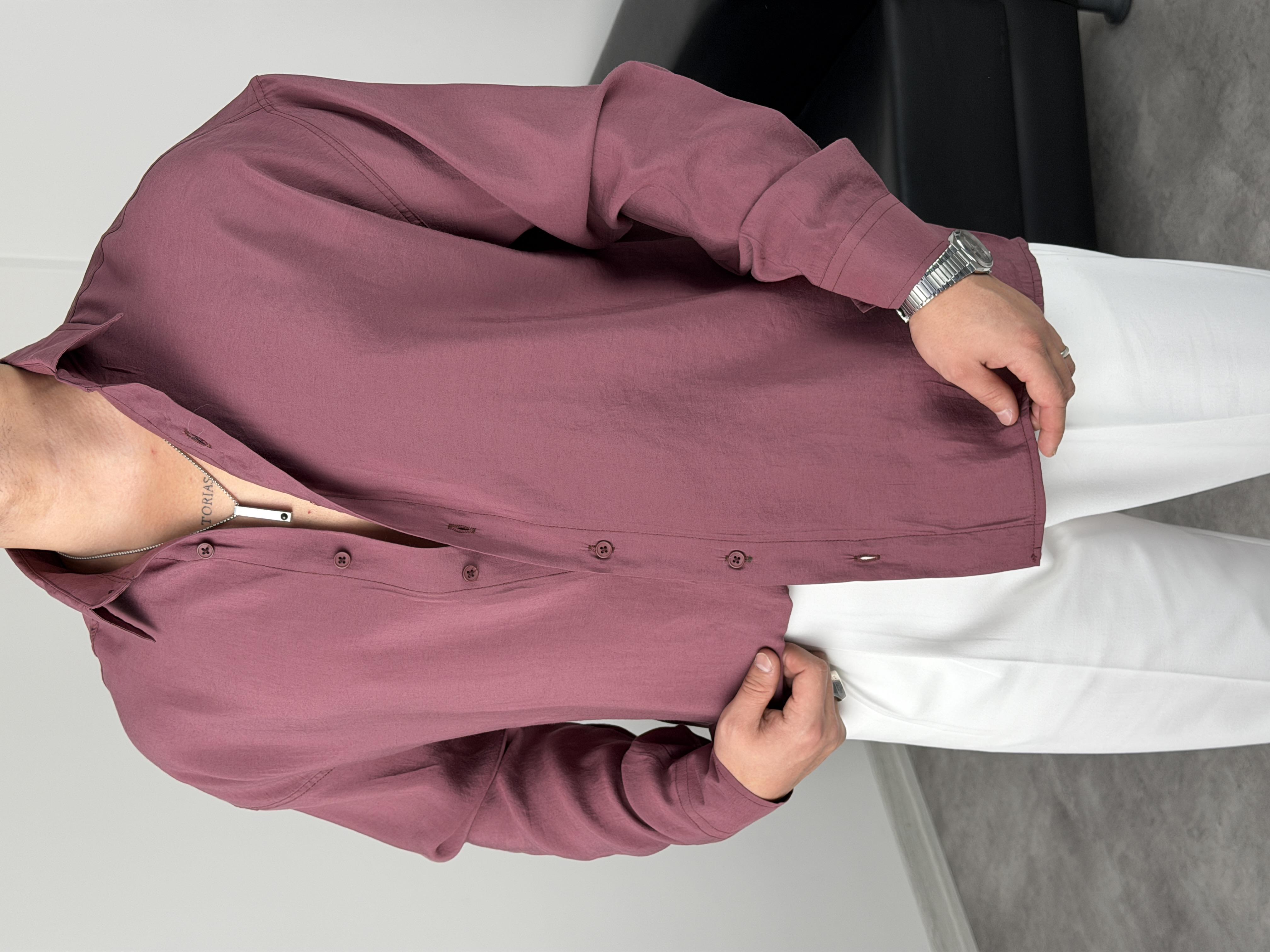 OVERSİZE PAMUK TENSEL KUMAŞ GÖMLEK MÜRDÜM