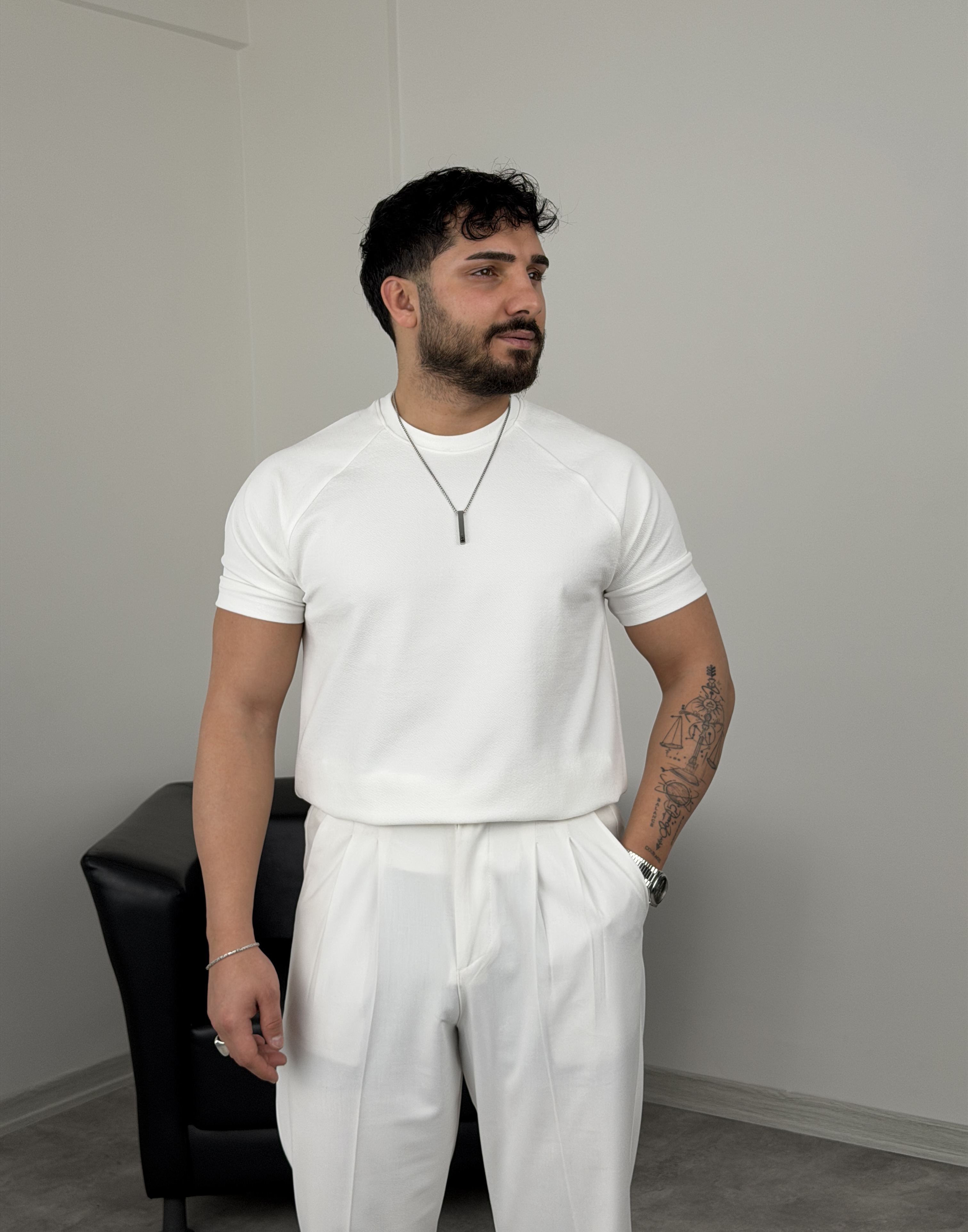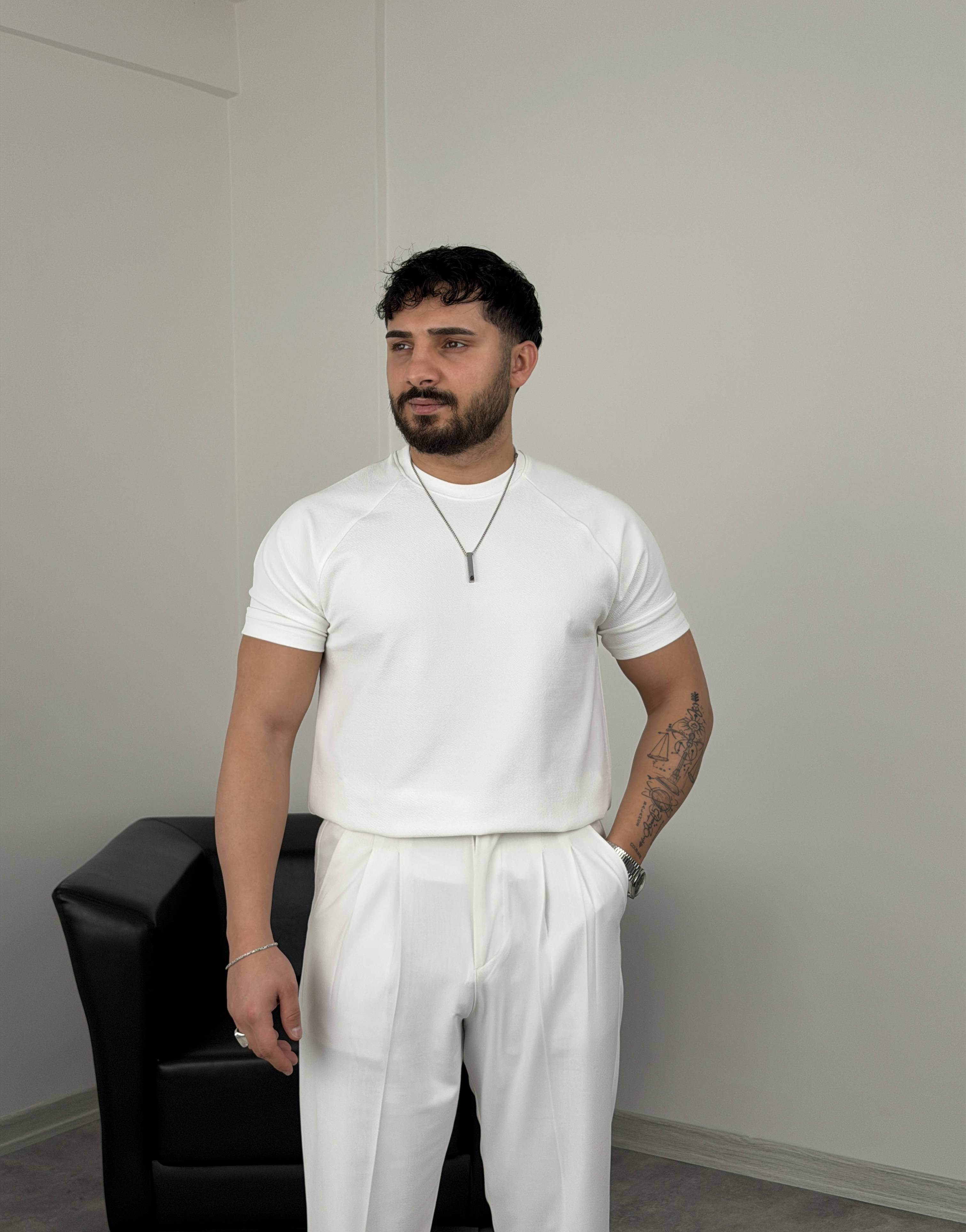 ÖZEL KALIP REGLAN KOL TİŞÖRT BEYAZ