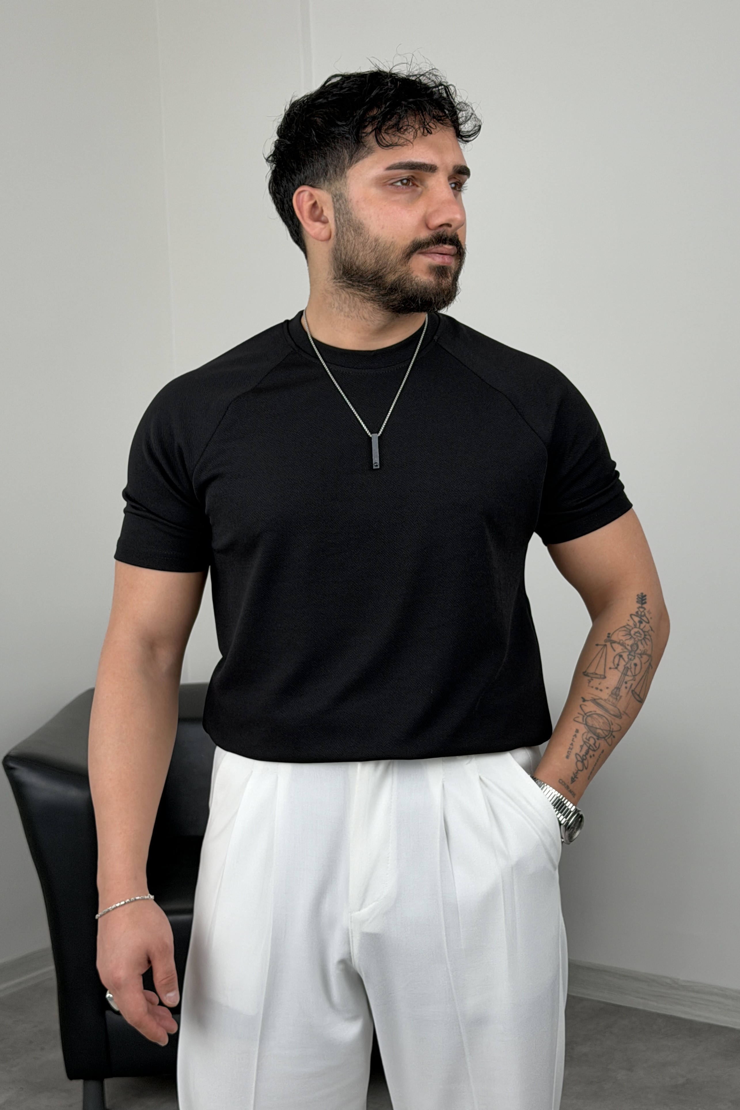 ÖZEL KALIP REGLAN KOL TİŞÖRT SİYAH