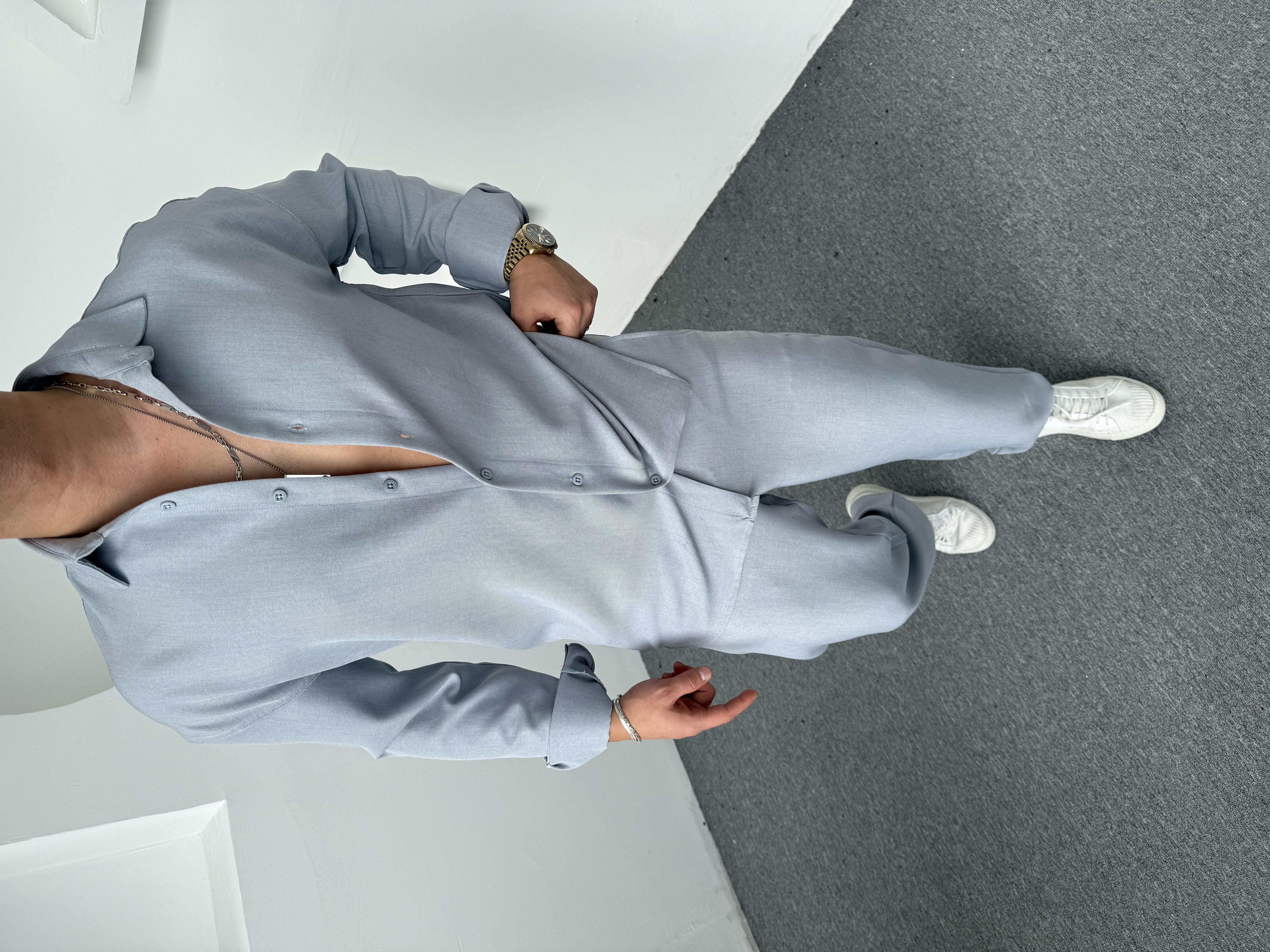 Pamuk Keten Takım Buz Mavi
