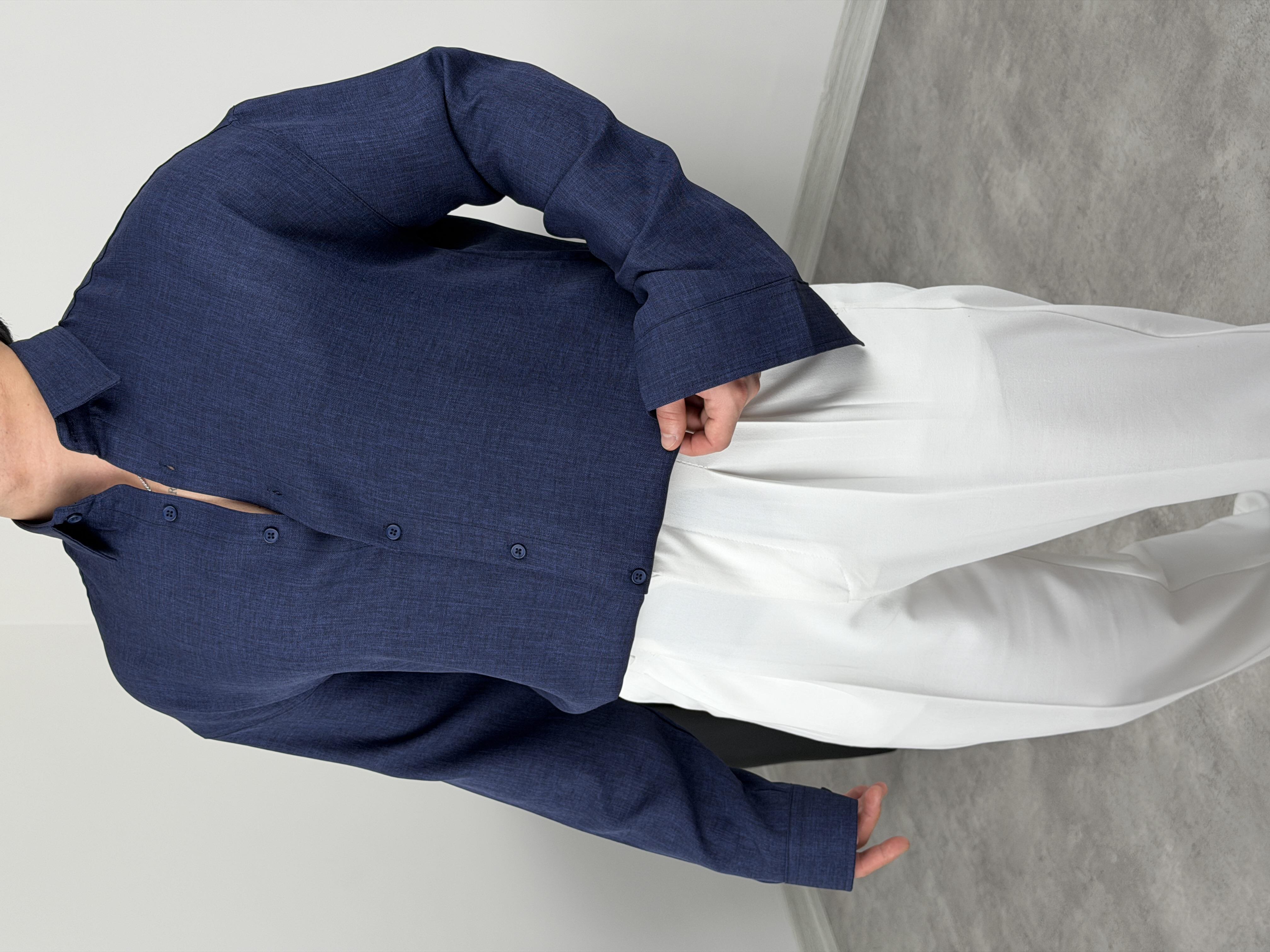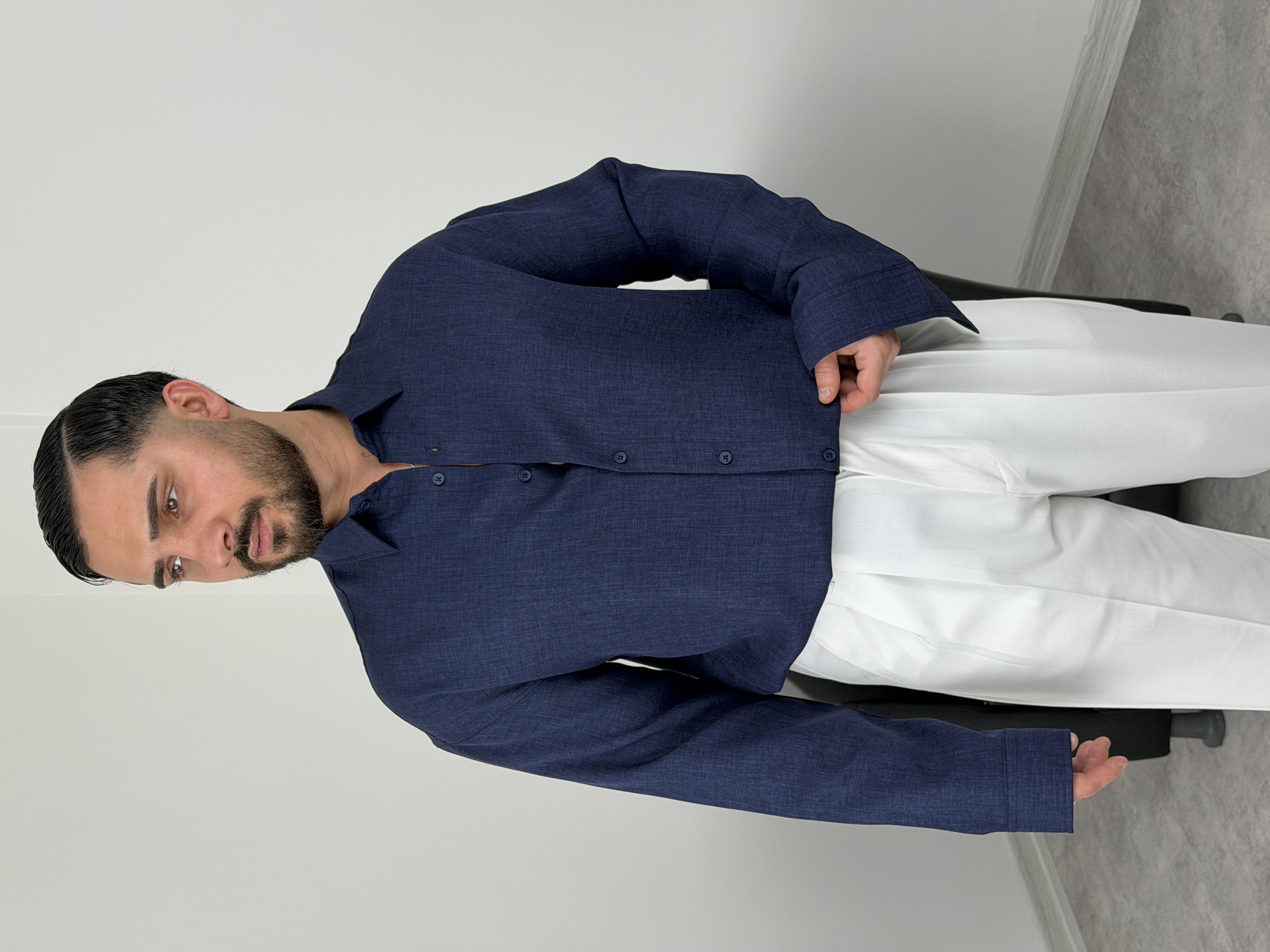 PAMUK KETEN UZUNKOL GÖMLEK LACİVERT