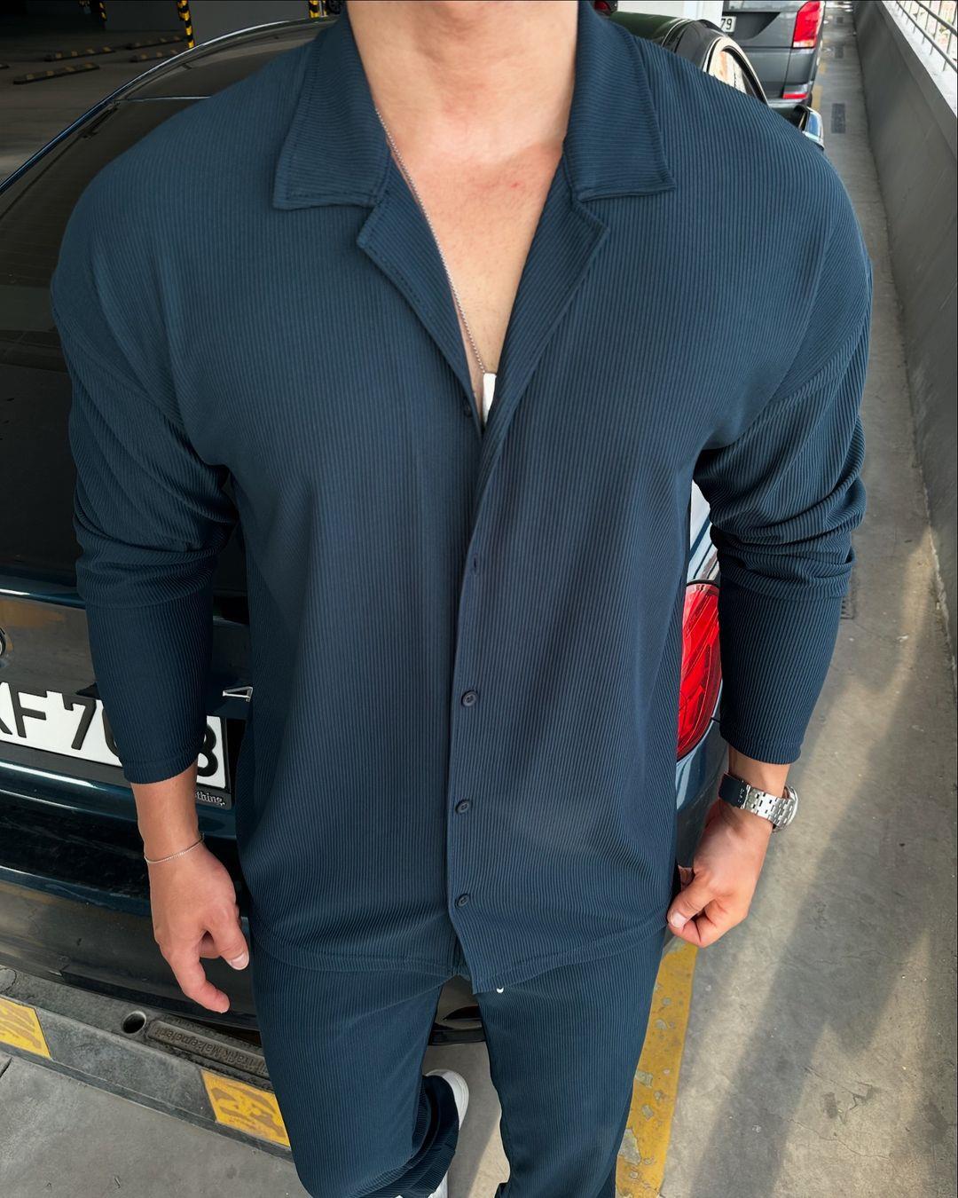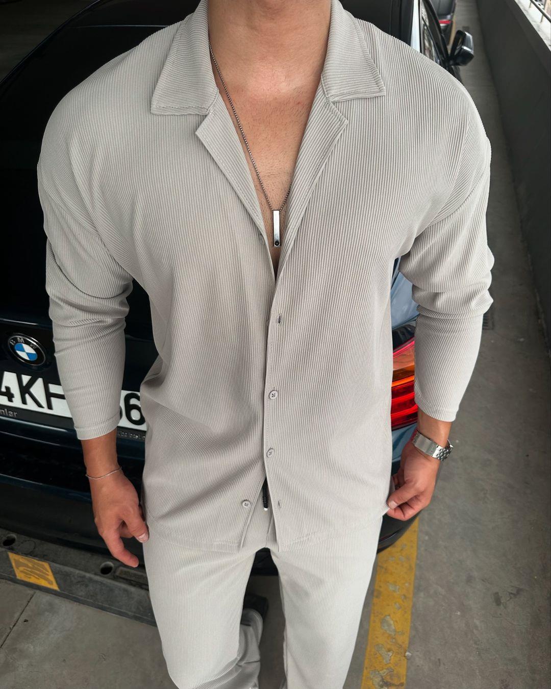 Pamuk Örme Kumaş Uzun Kol Fitilli Gömlek