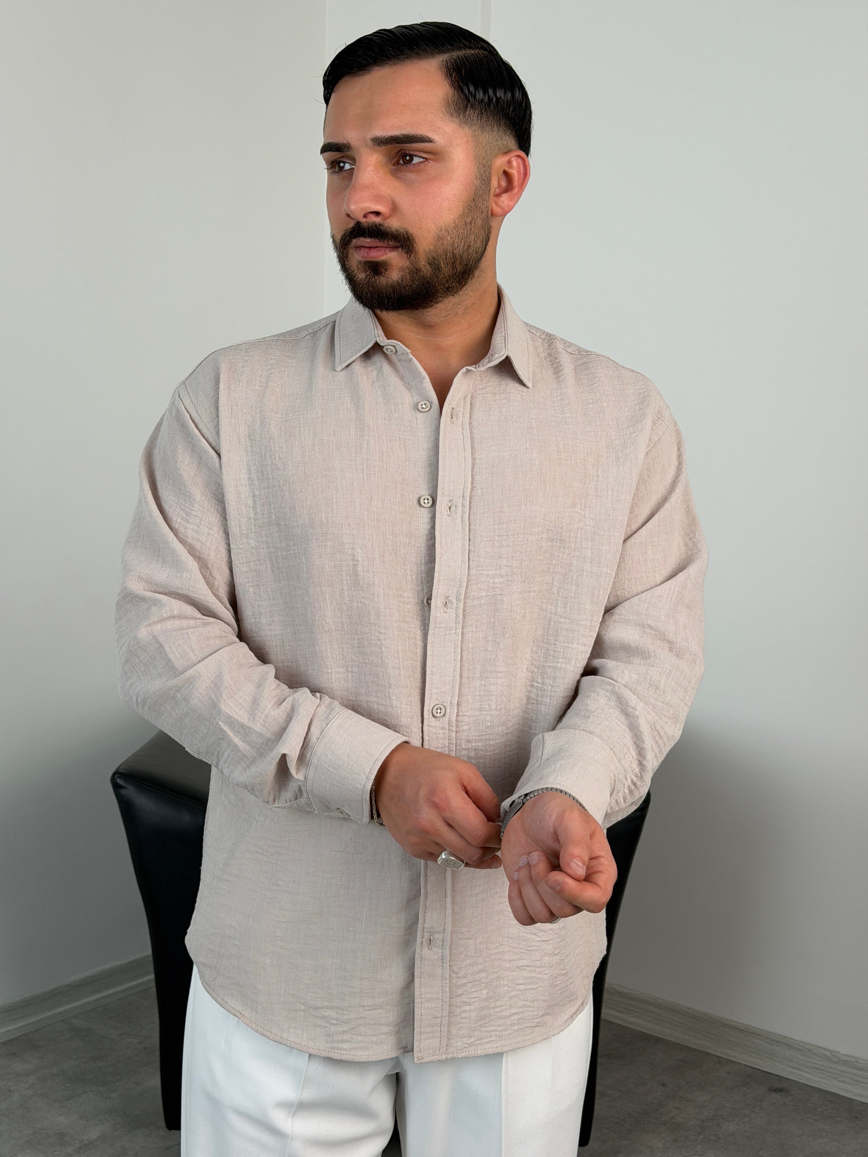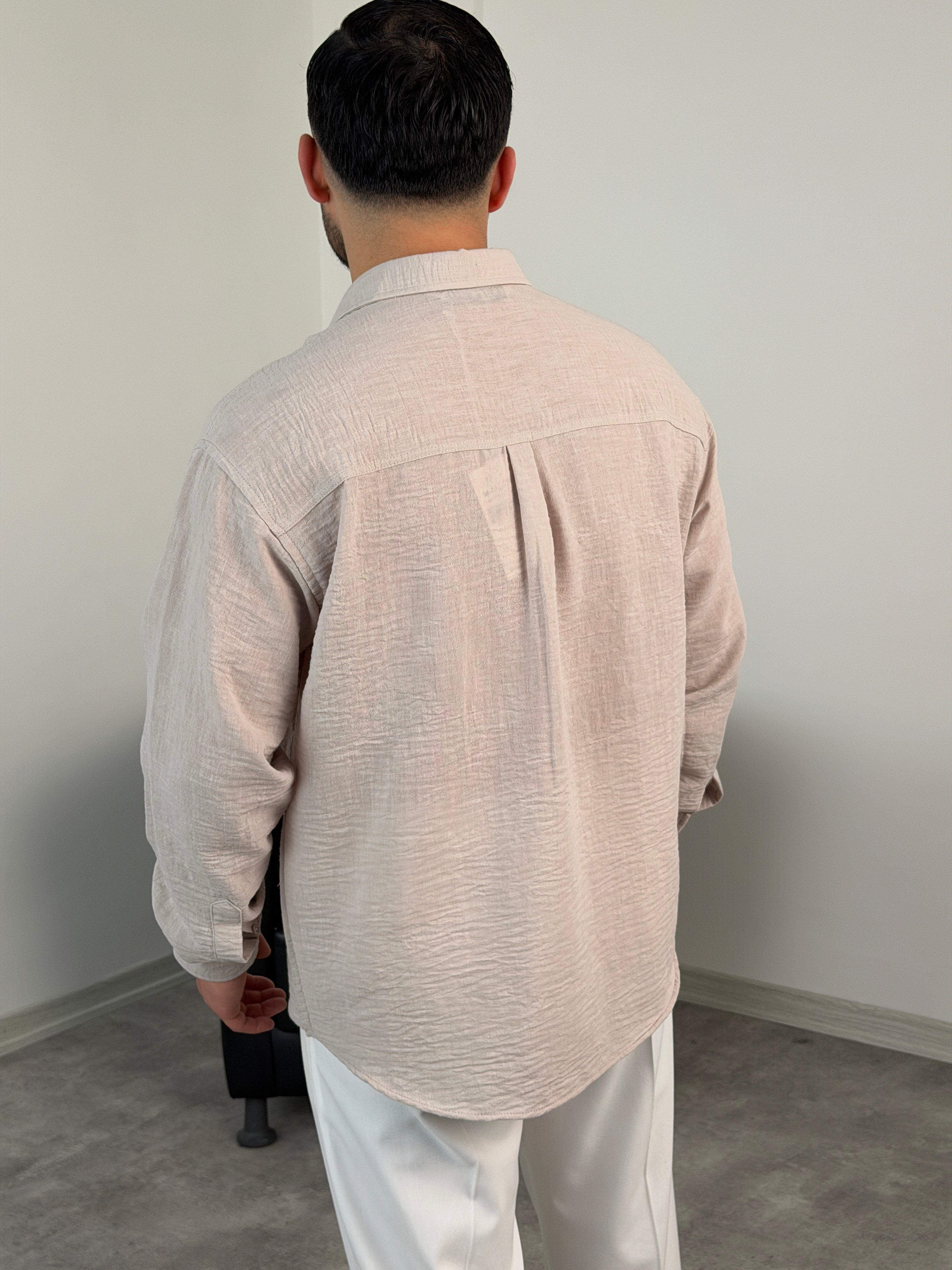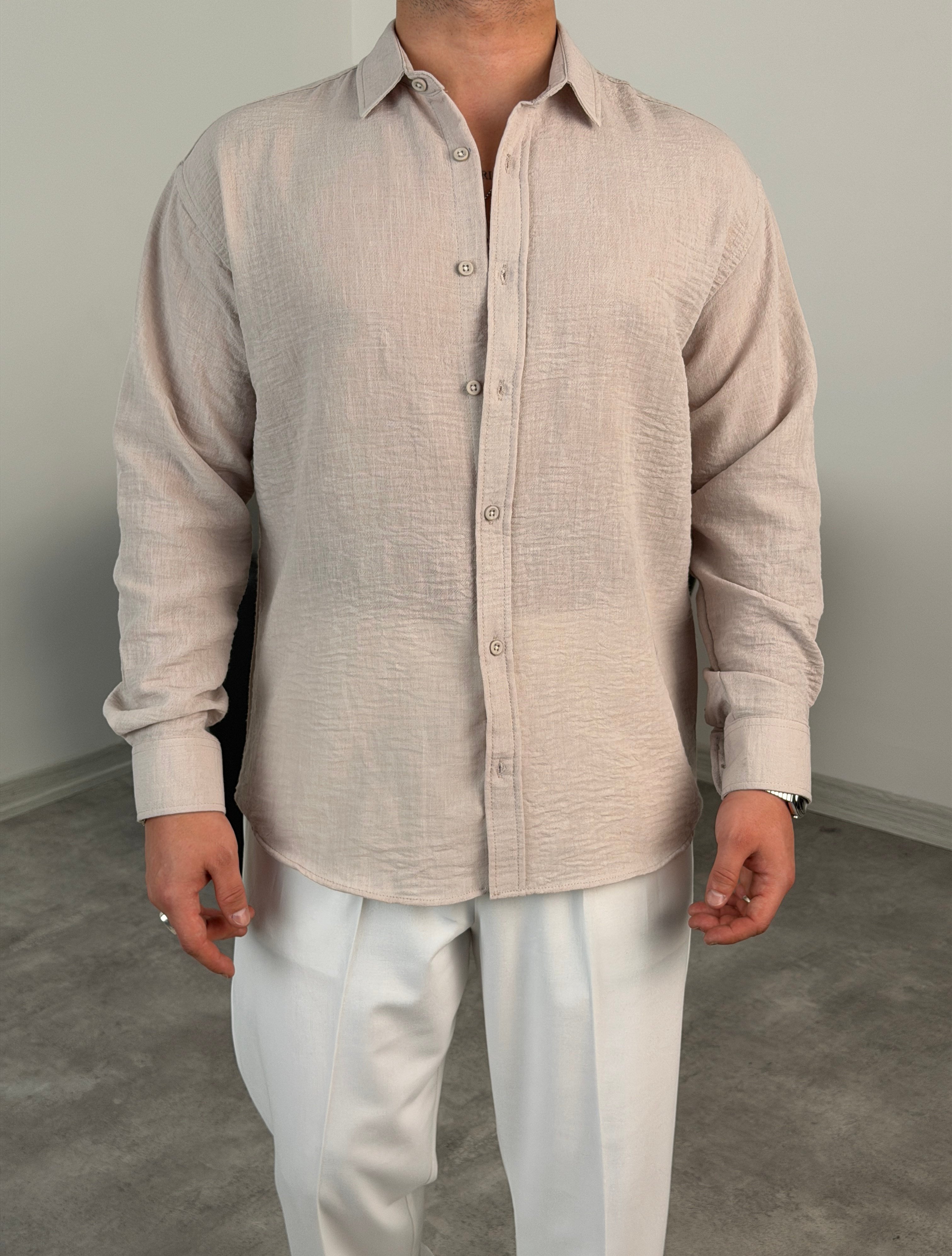 PERA KETEN UZUNKOL OVERSİZE GÖMLEK BEJ