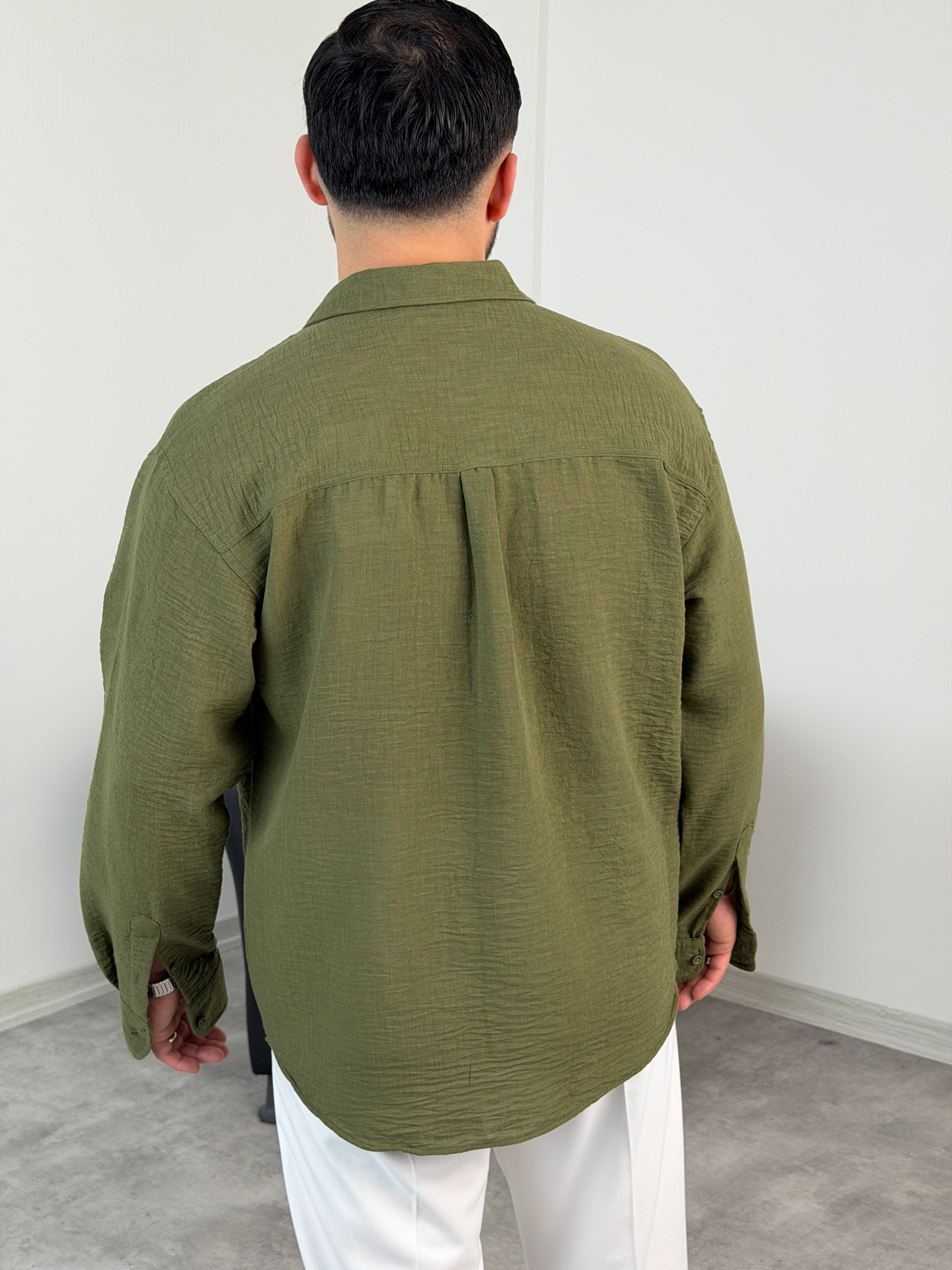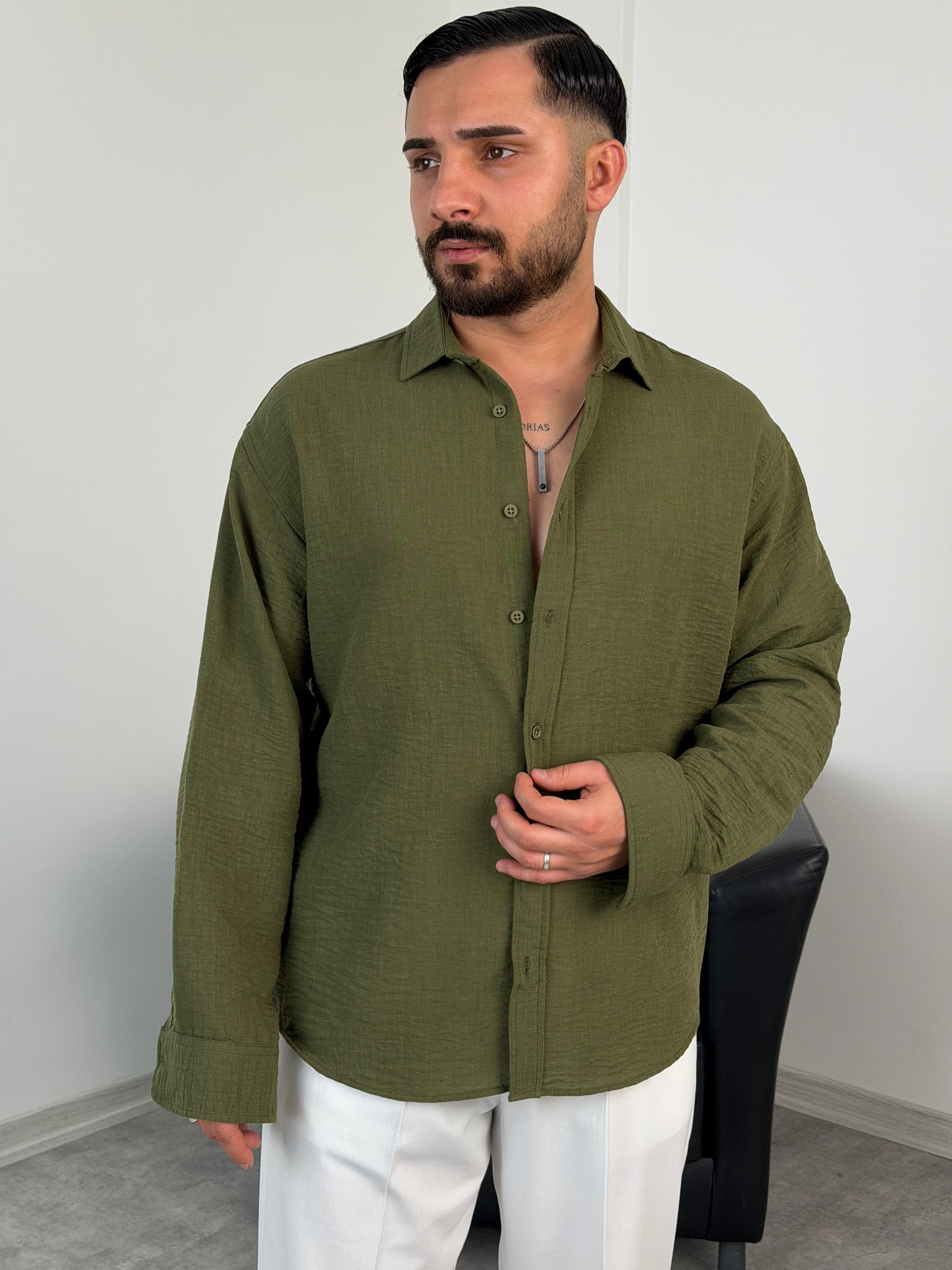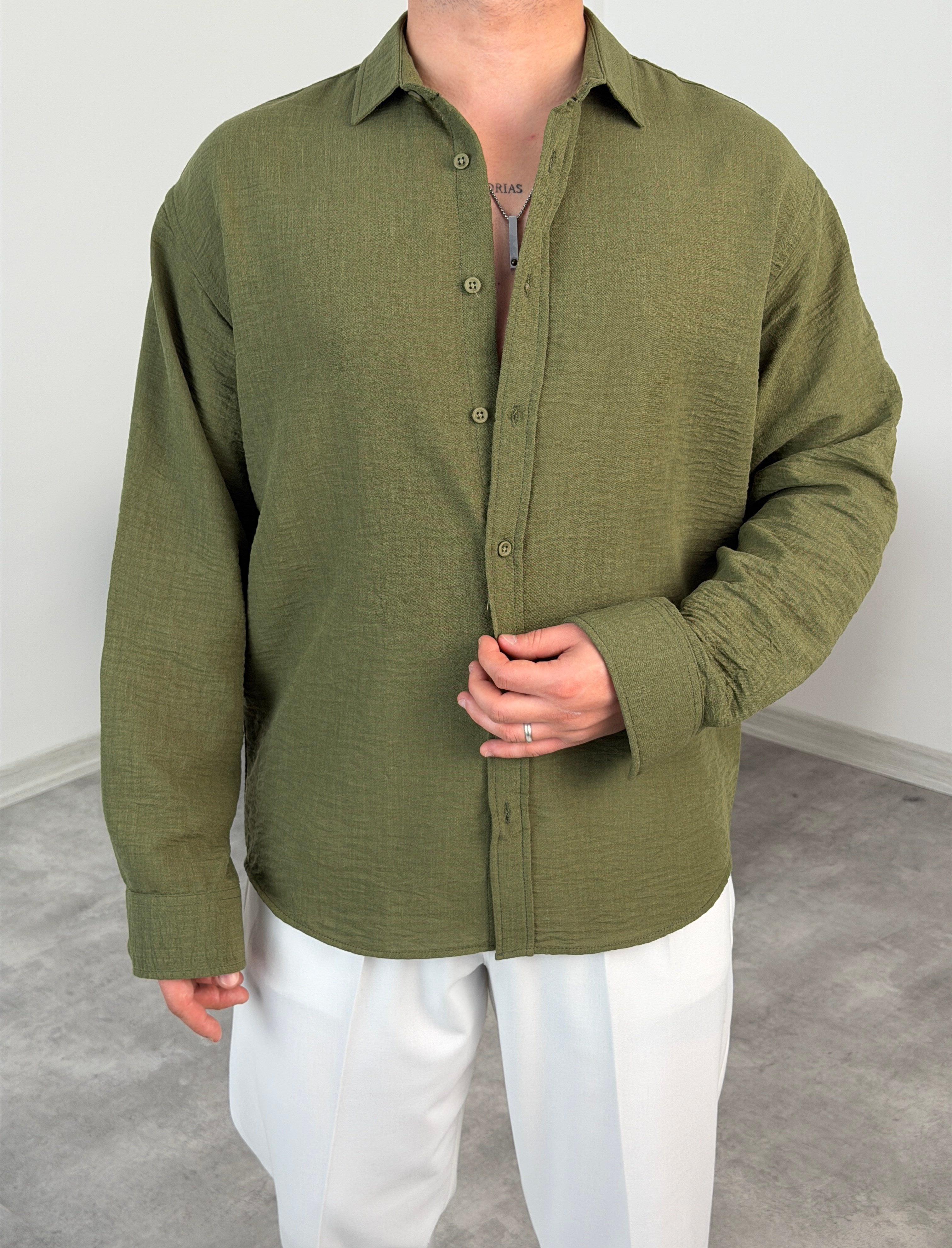 PERA KETEN UZUNKOL OVERSİZE GÖMLEK HAKİ YEŞİL