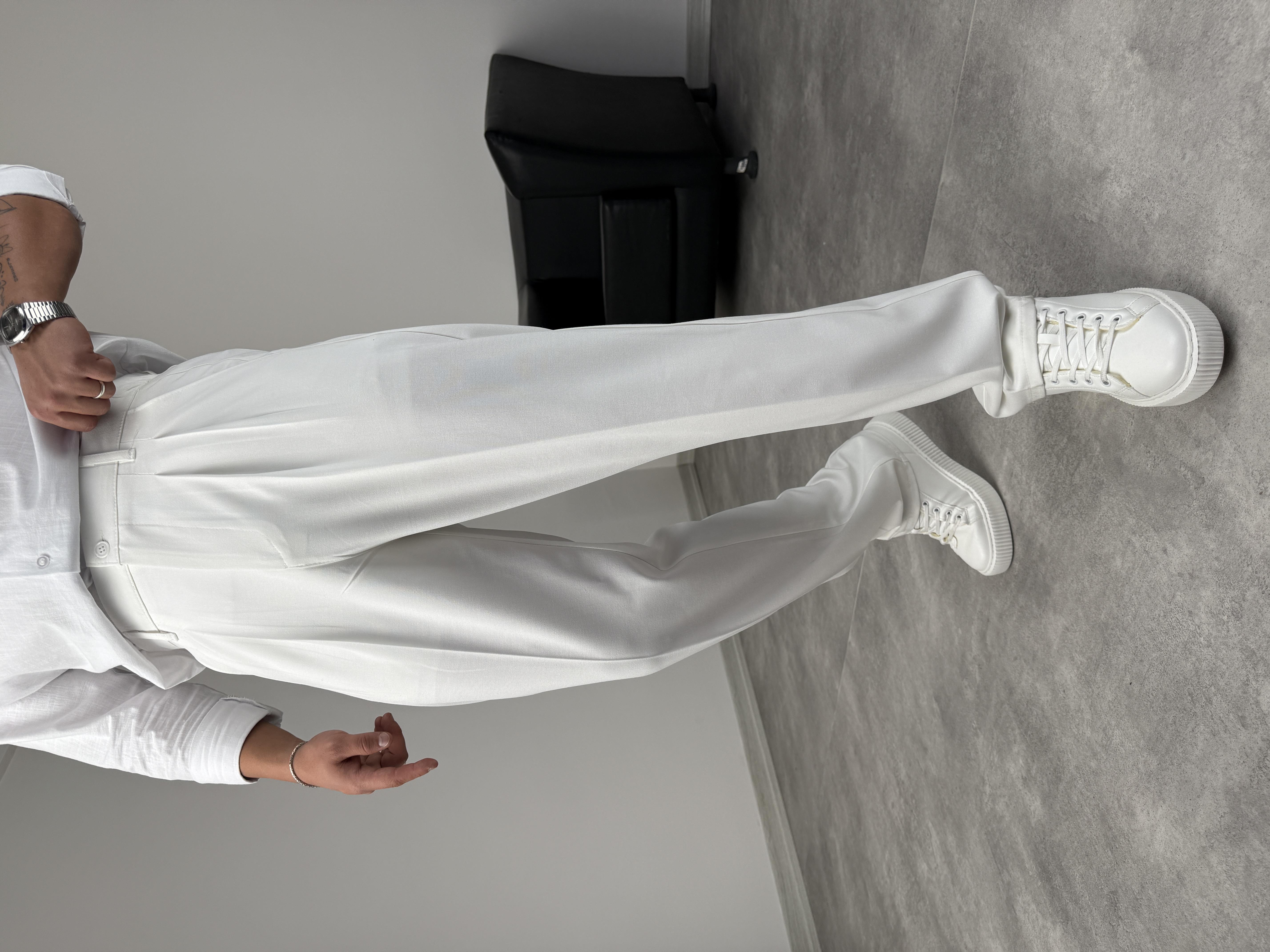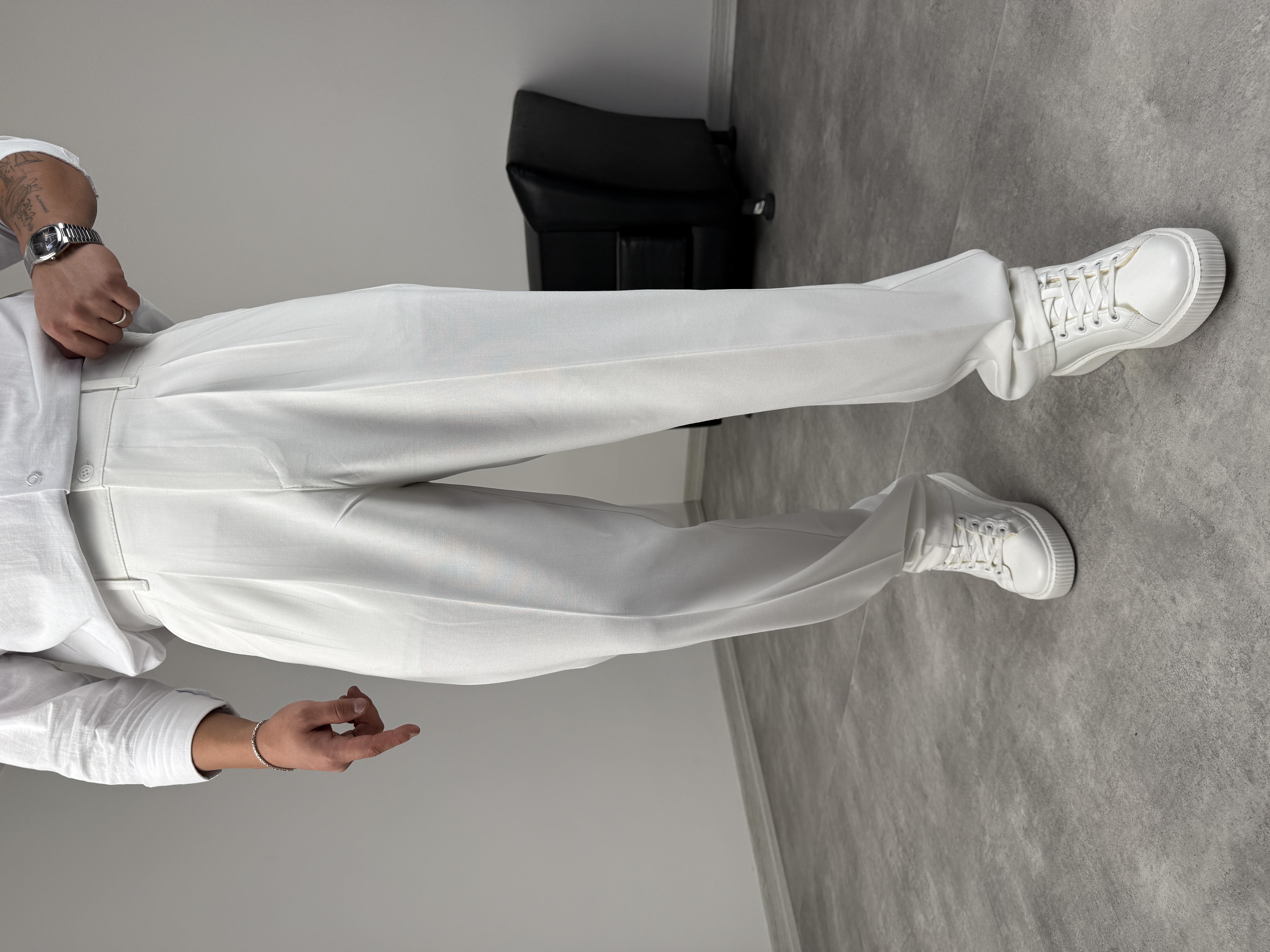 PİLELİ KUMAŞ BAGGY PREMİUM BEYAZ