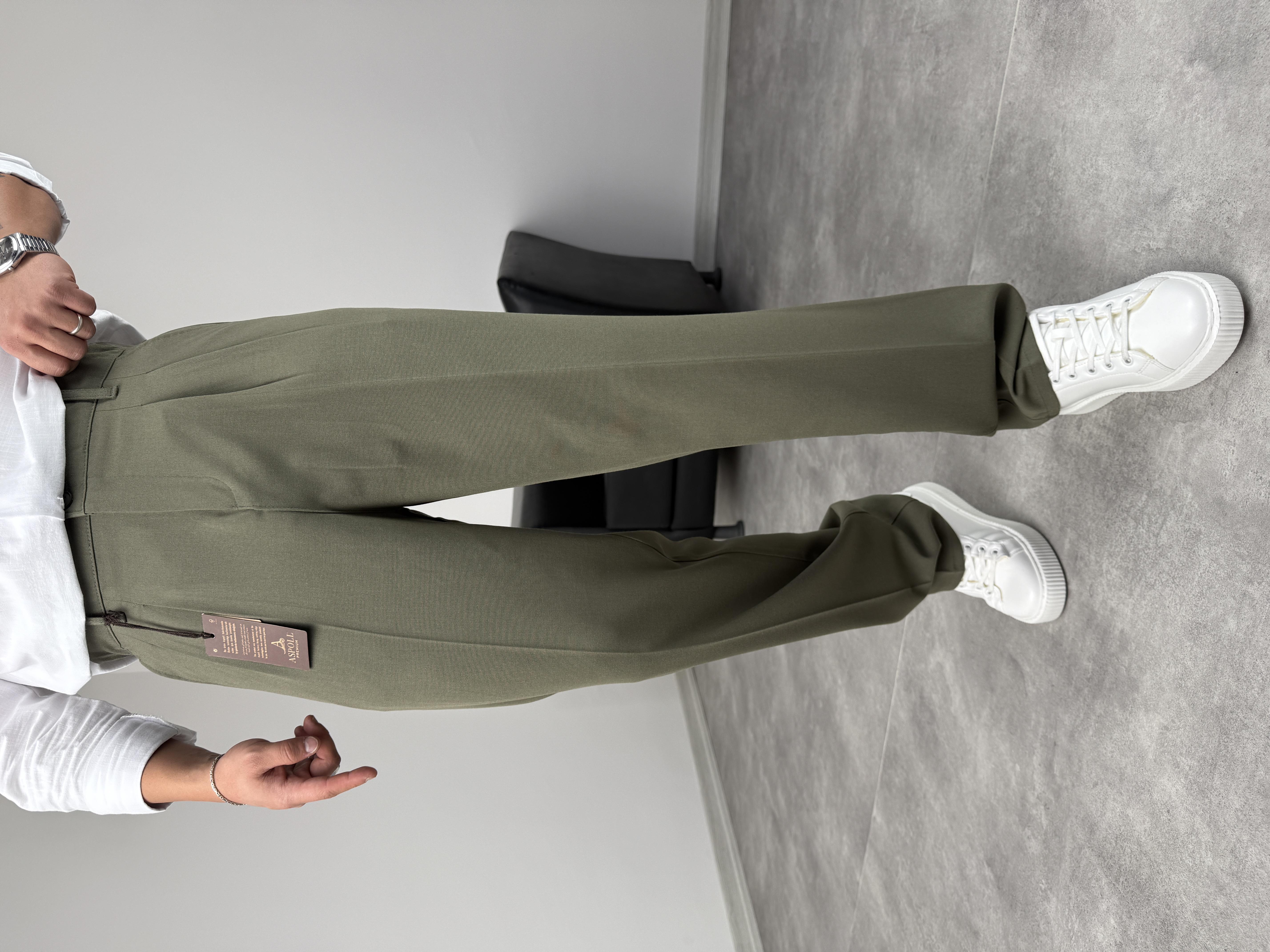 PİLELİ KUMAŞ BAGGY PREMİUM ÇAĞLA YEŞİLİ
