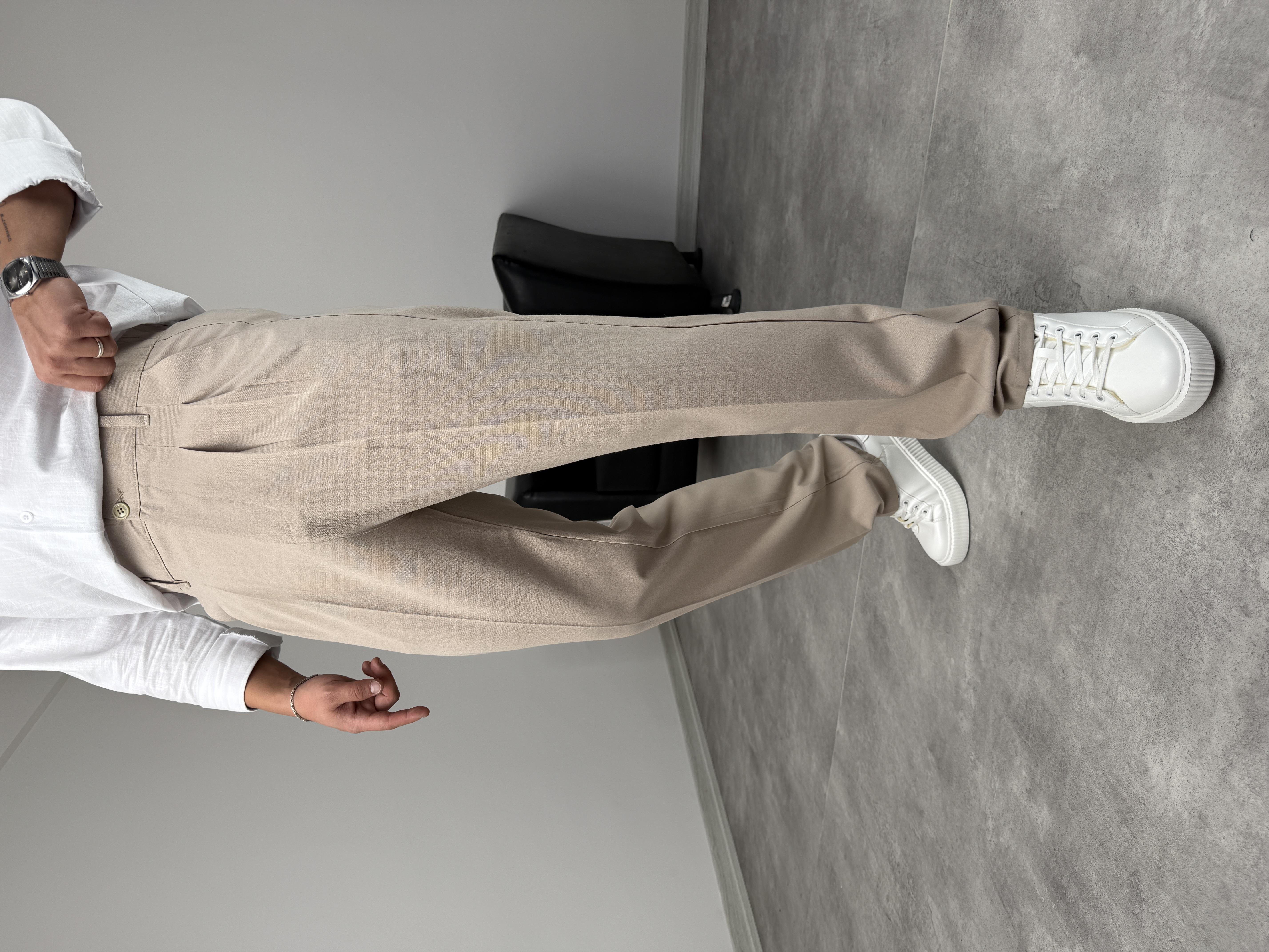 PİLELİ KUMAŞ BAGGY PREMİUM KREM