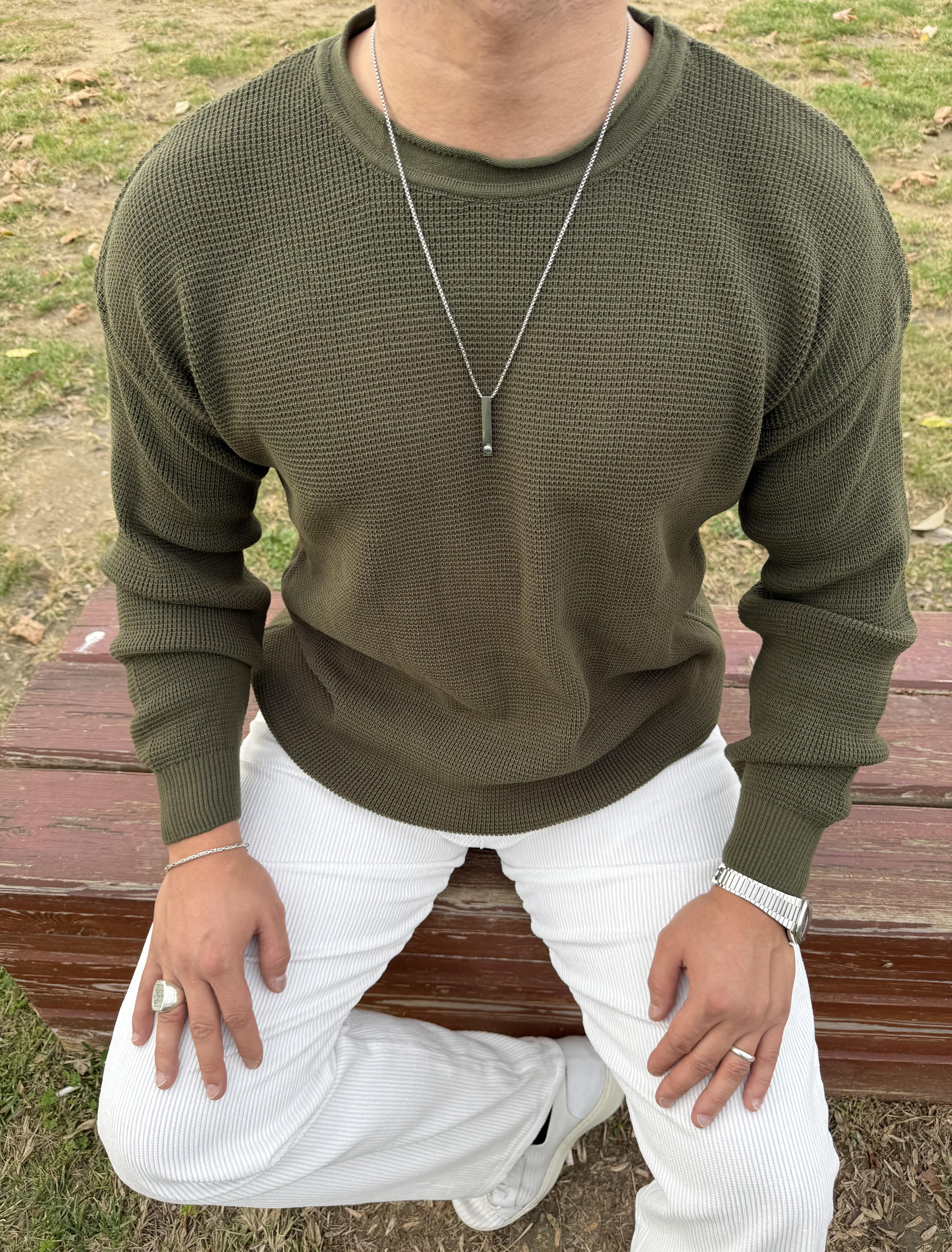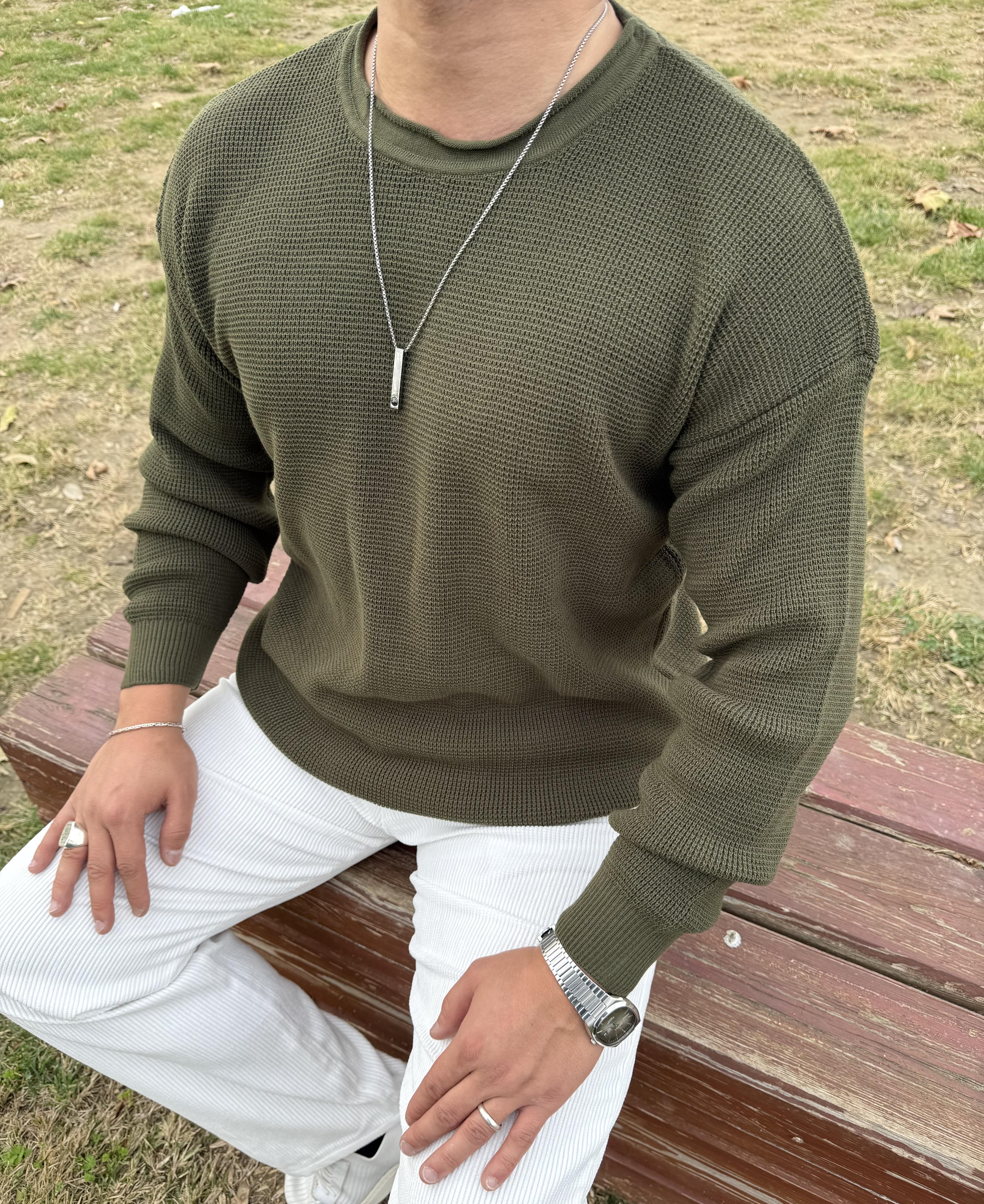 PİS YAKA %100 TRİKO OVERSİZE SWEATSHİRT HAKİ YEŞİL