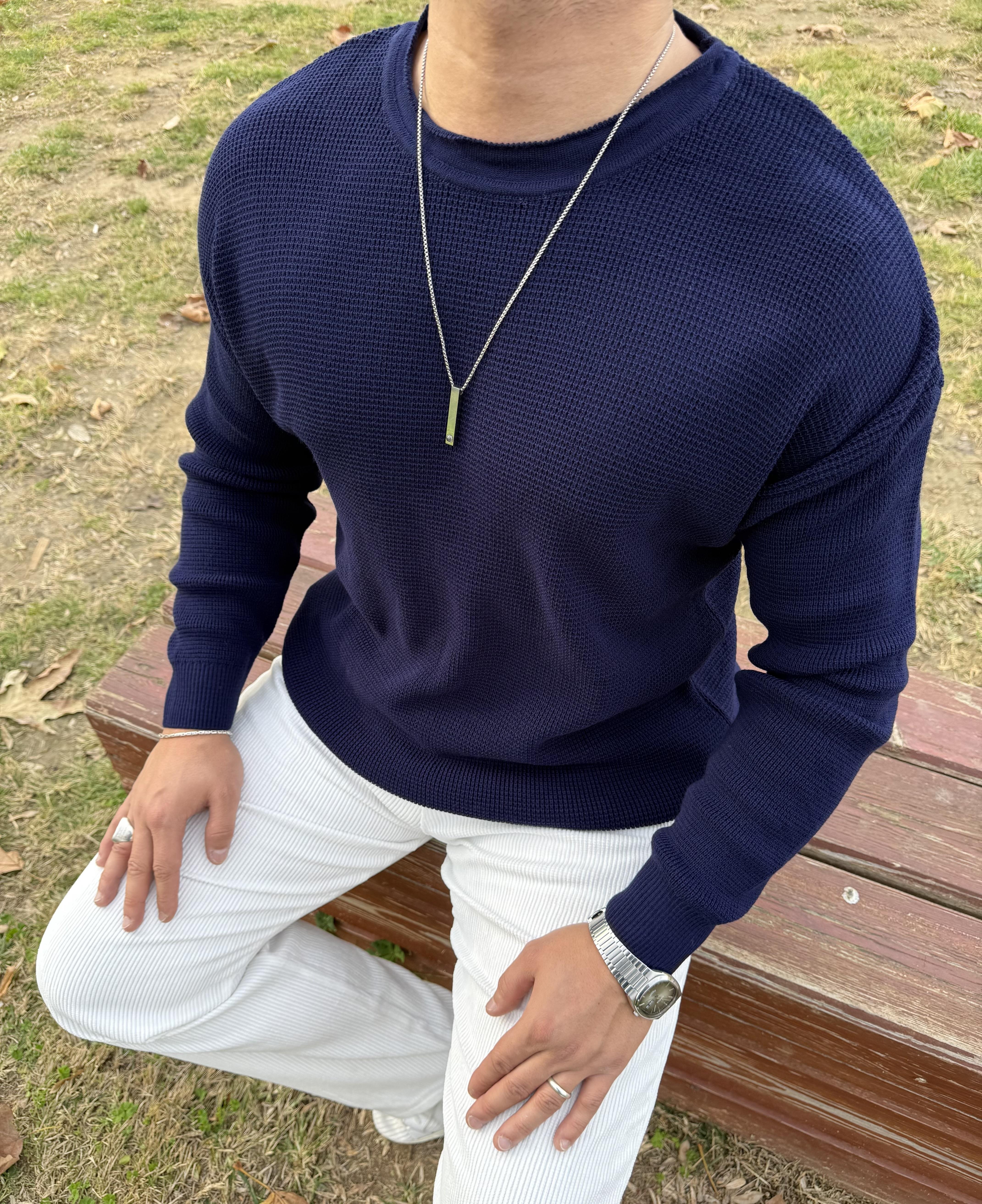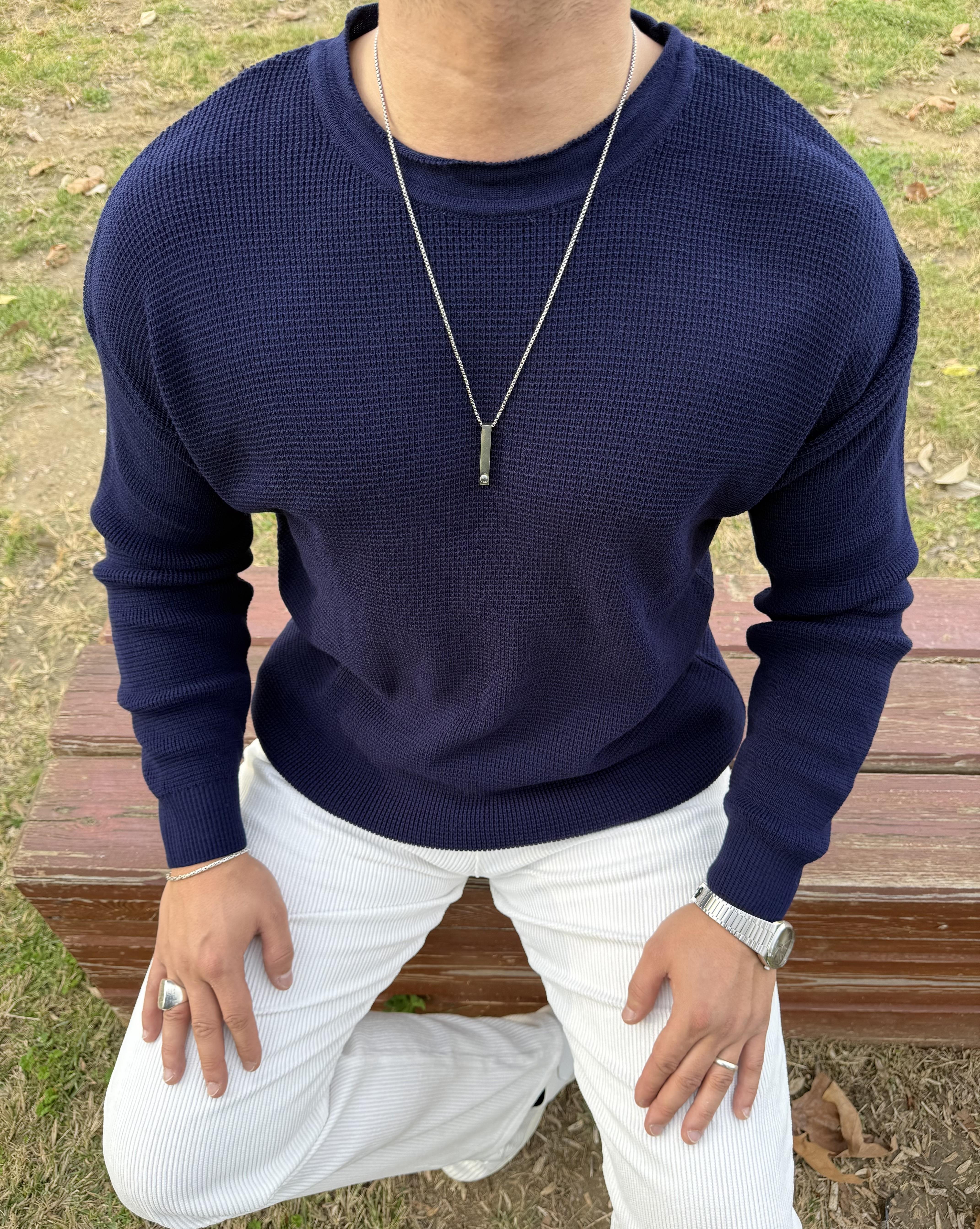 PİS YAKA %100 TRİKO OVERSİZE SWEATSHİRT LACİVERT