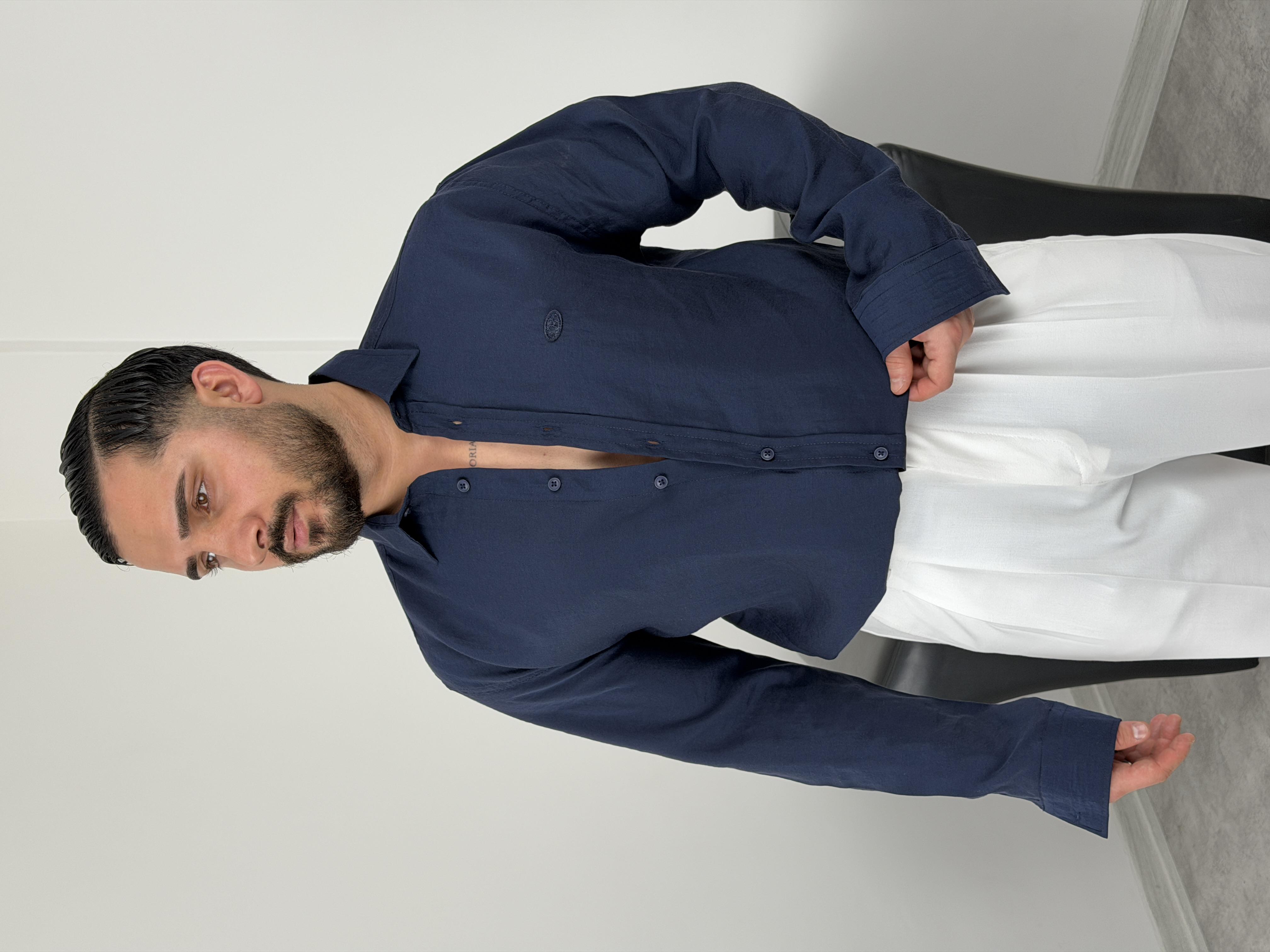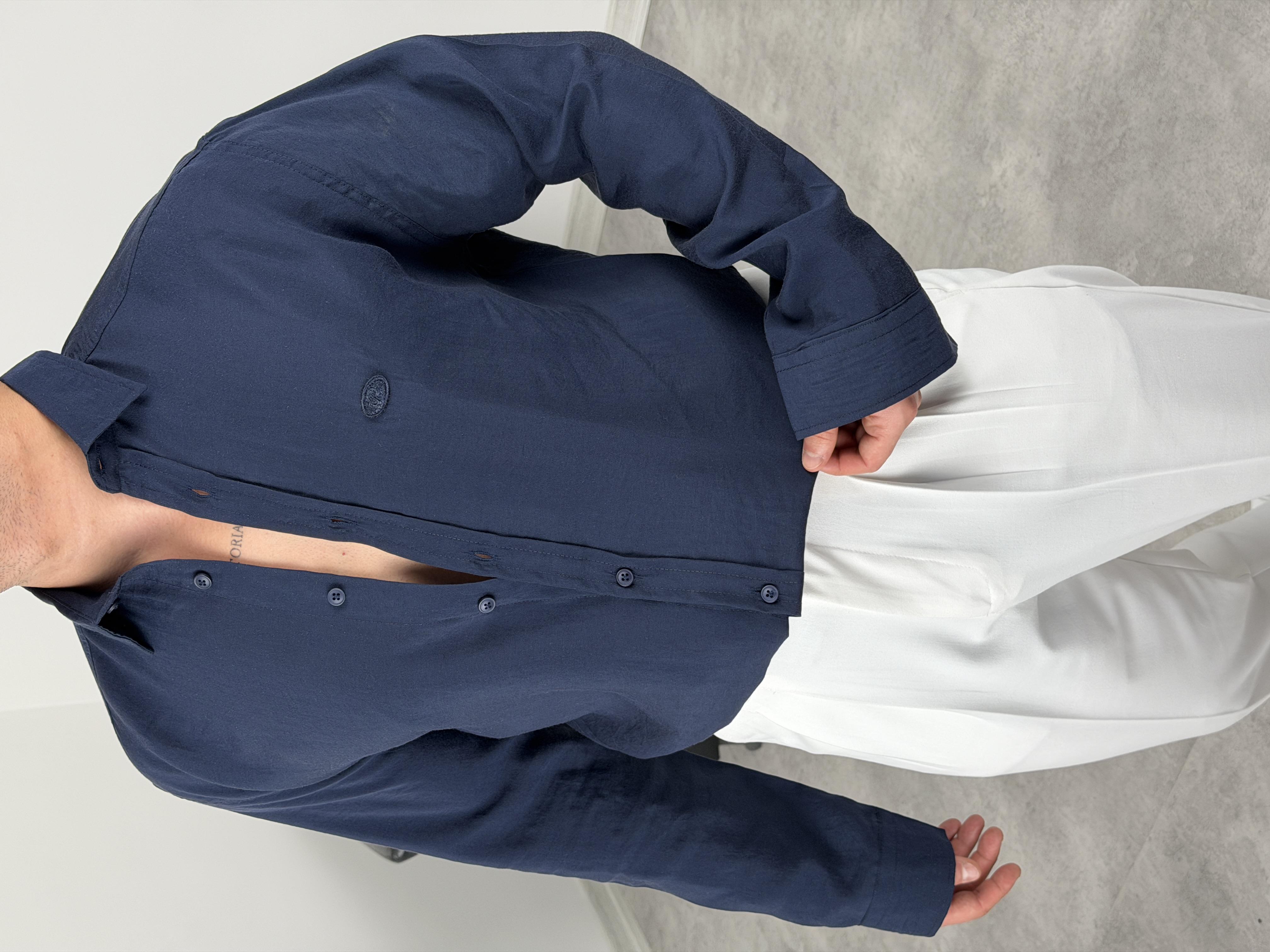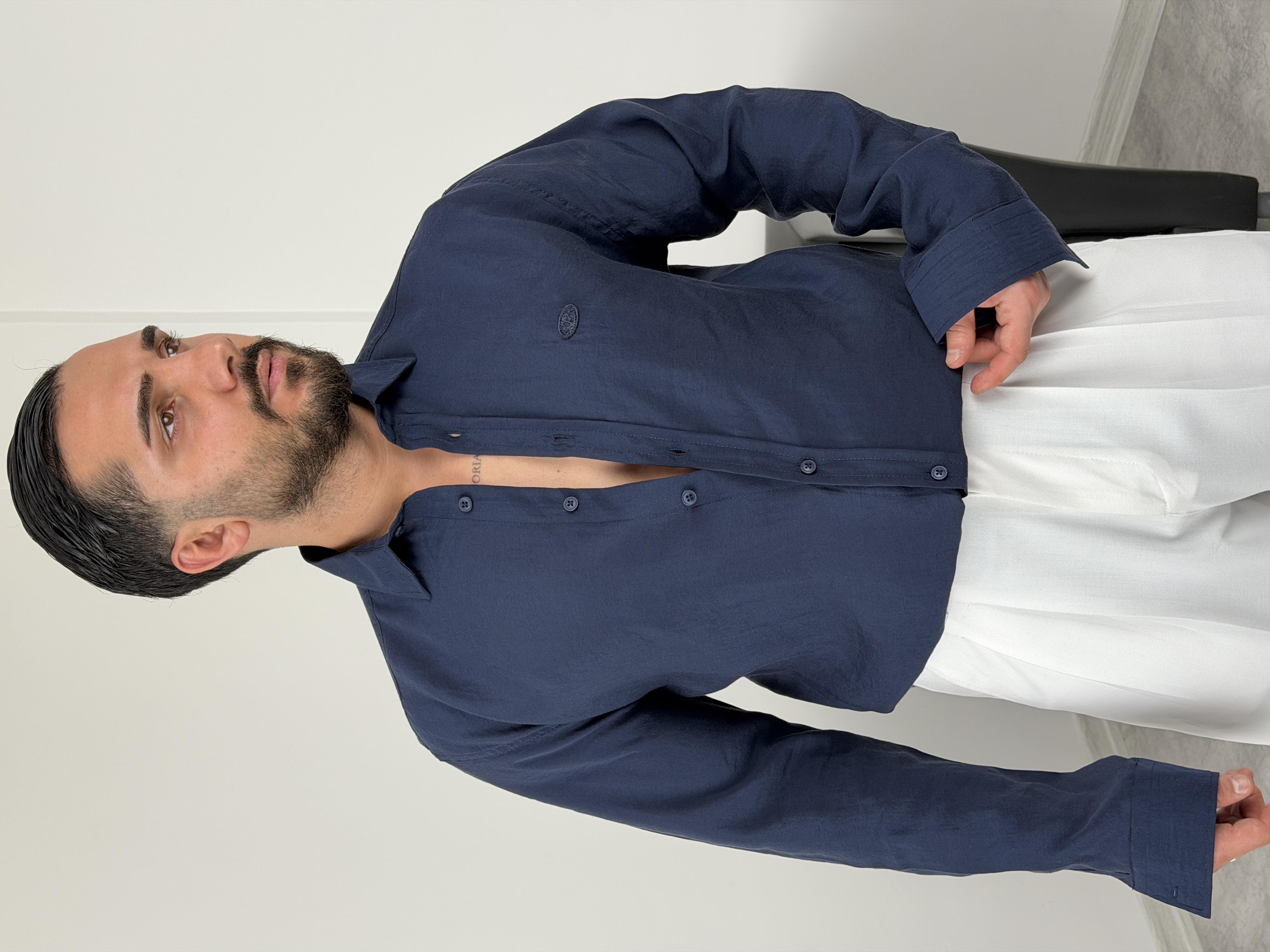 PREMİUM P NAKIŞ MODAL KUMAŞ UZUNKOL GÖMLEK LACİVERT