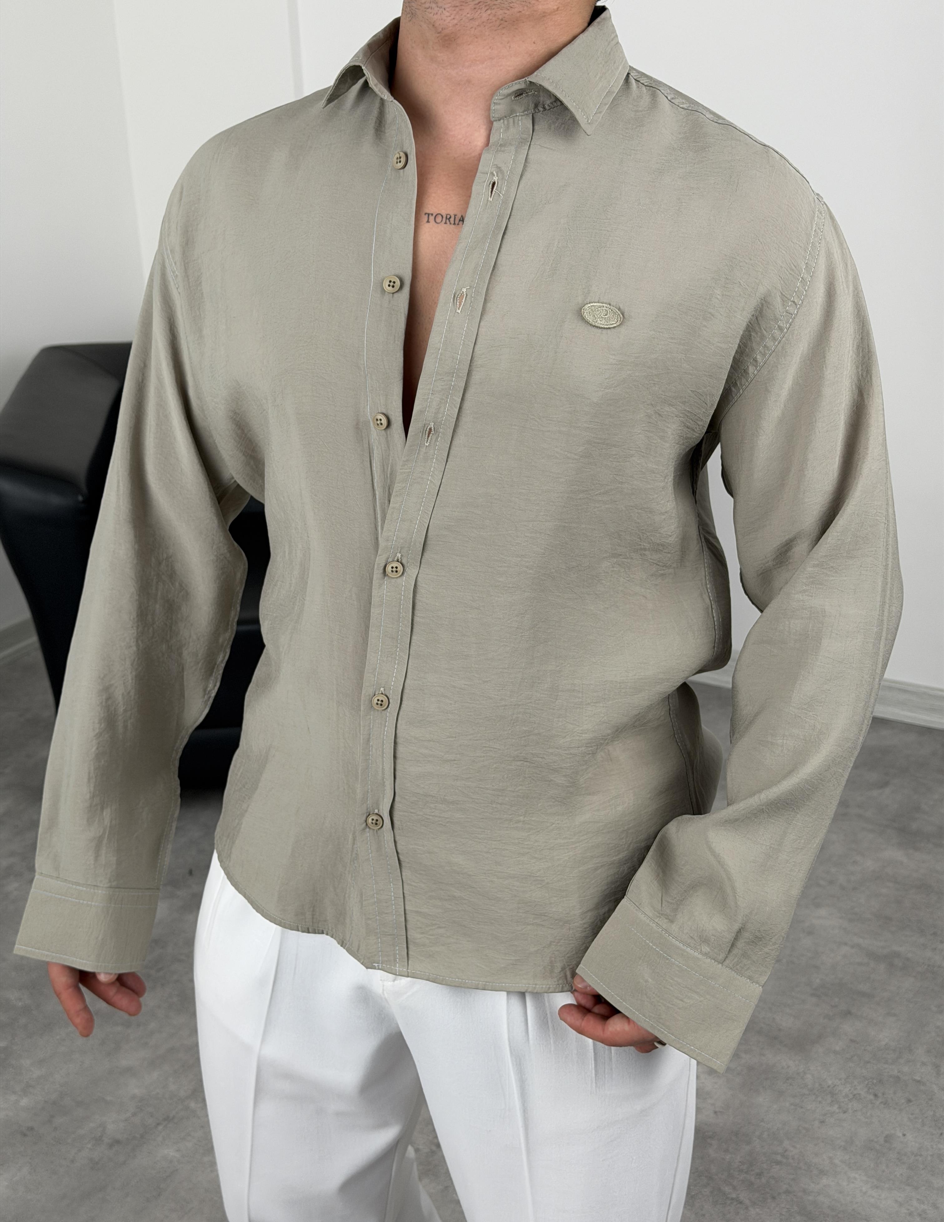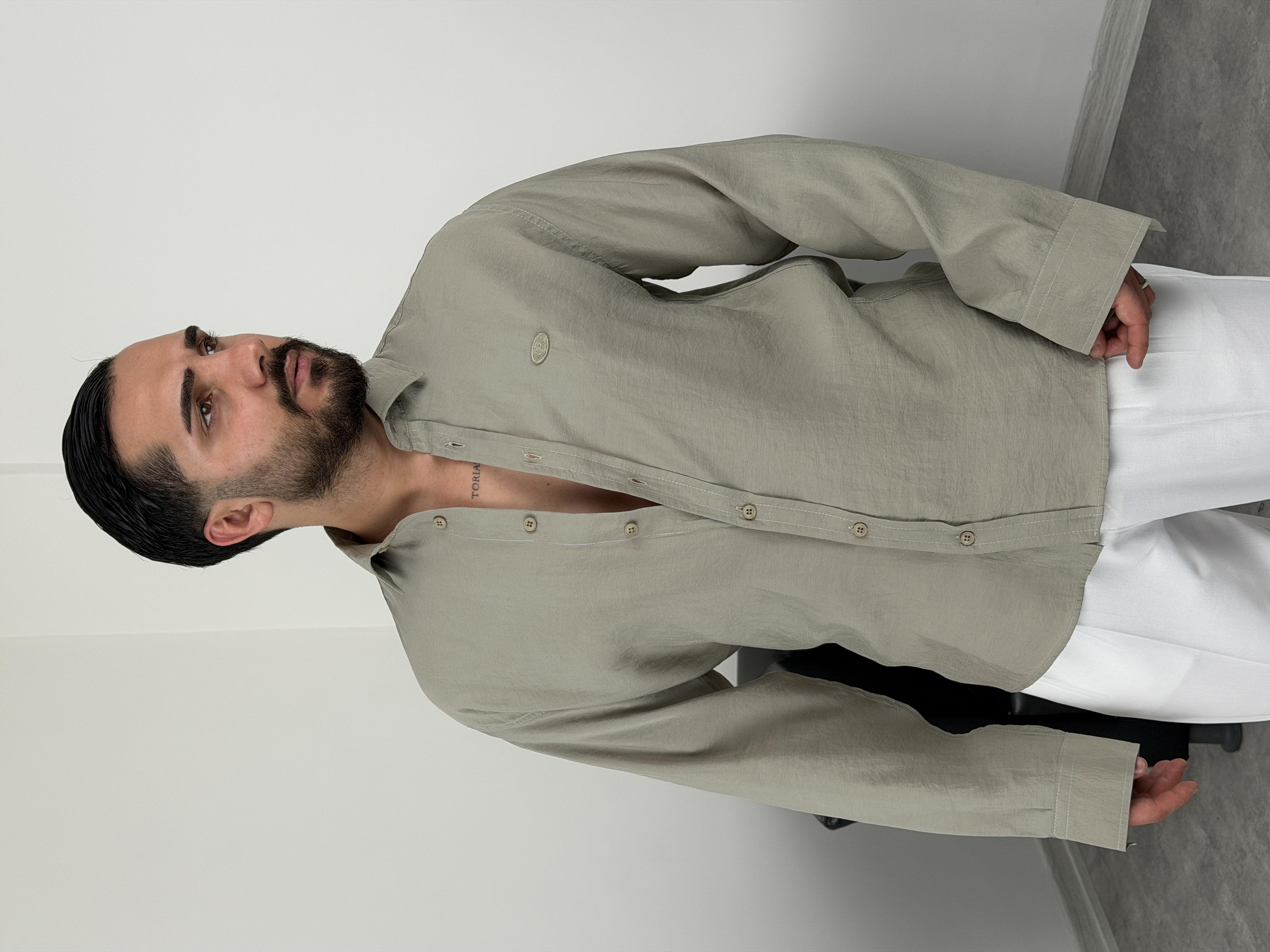 PREMİUM P NAKIŞ MODAL KUMAŞ UZUNKOL GÖMLEK SU YEŞİLİ
