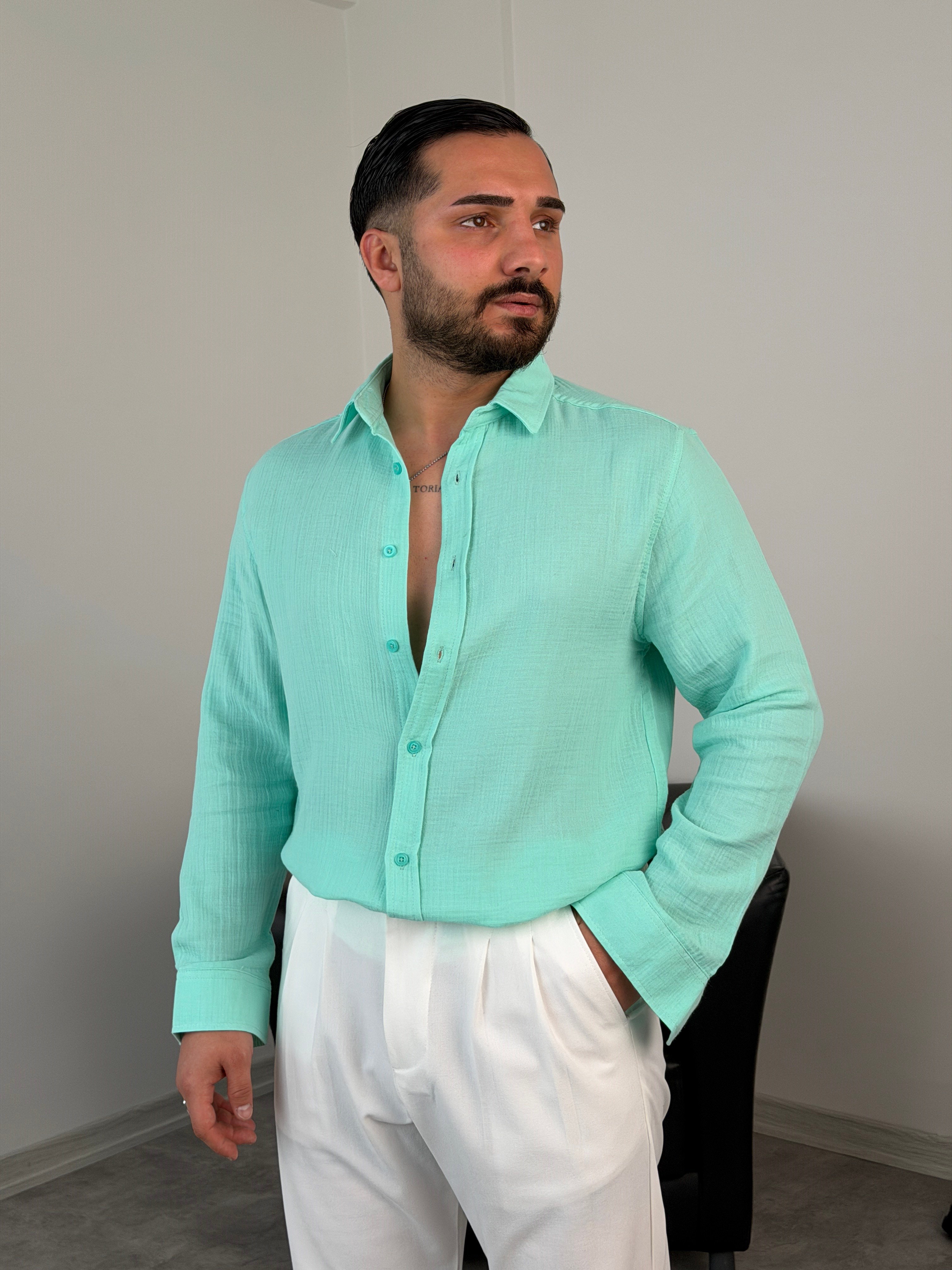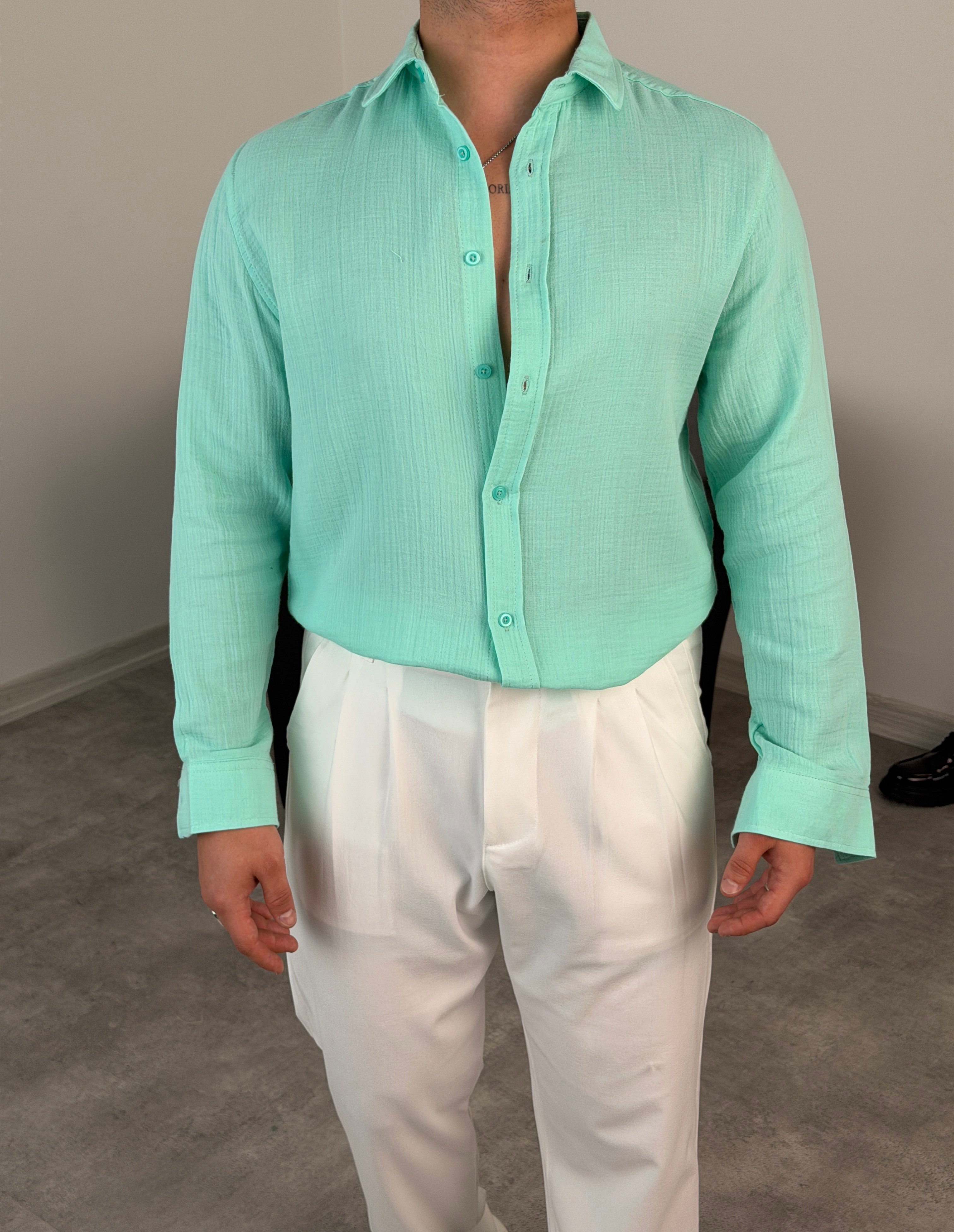 RAHAT KALIP %100 PAMUK MÜSLİN GÖMLEK MİNT YEŞİLİ