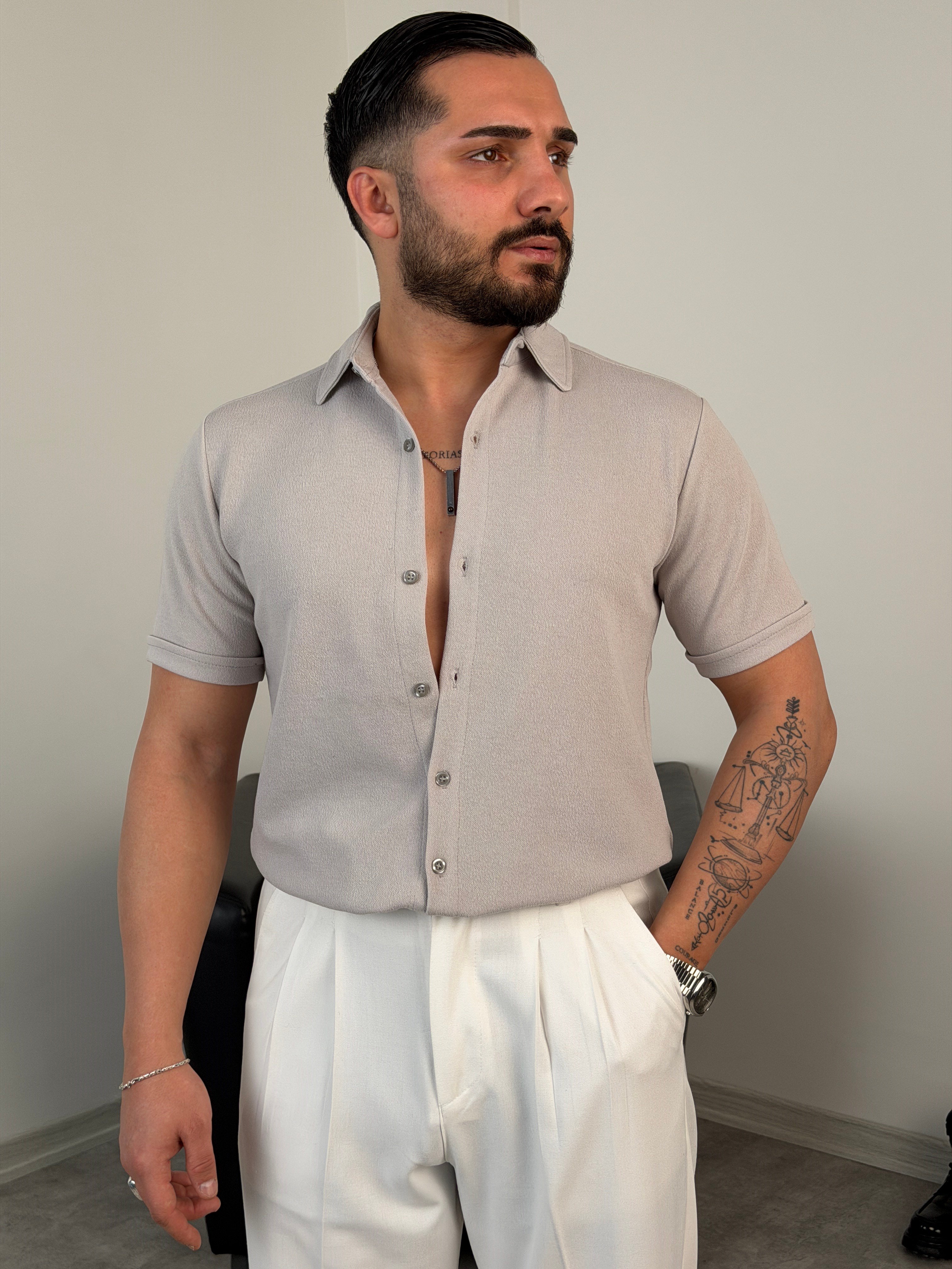REGULAR FİT DUBLE KOL PAMUK ÖRME KISAKOL GÖMLEK GRİ