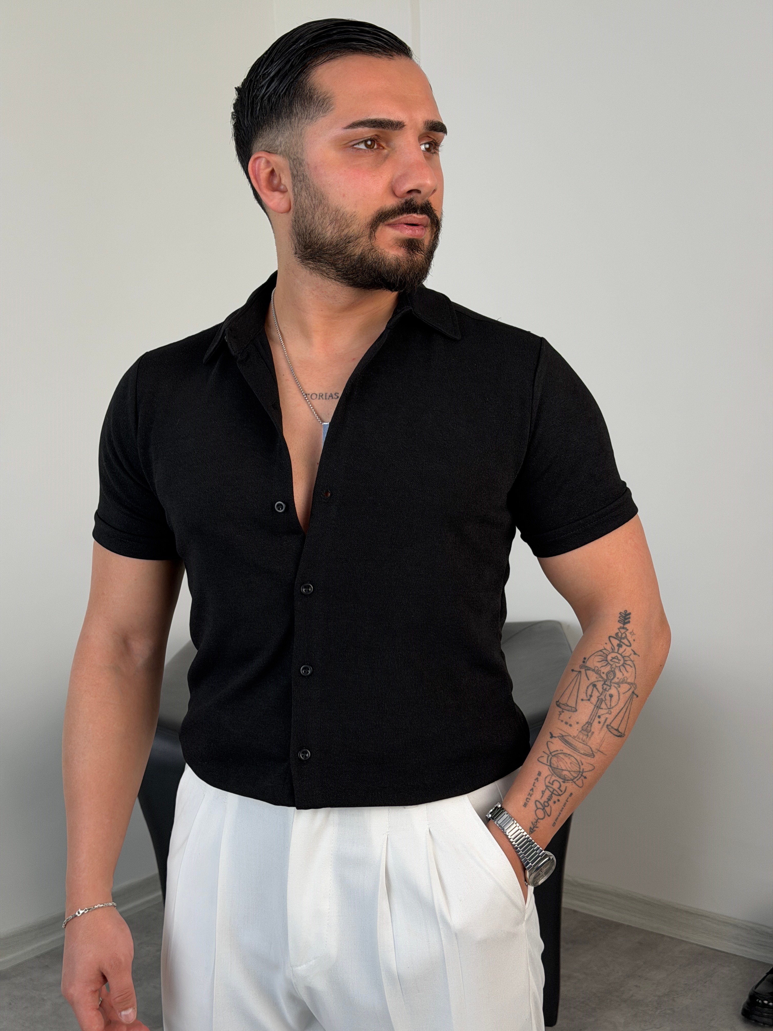 REGULAR FİT DUBLE KOL PAMUK ÖRME KISAKOL GÖMLEK SİYAH