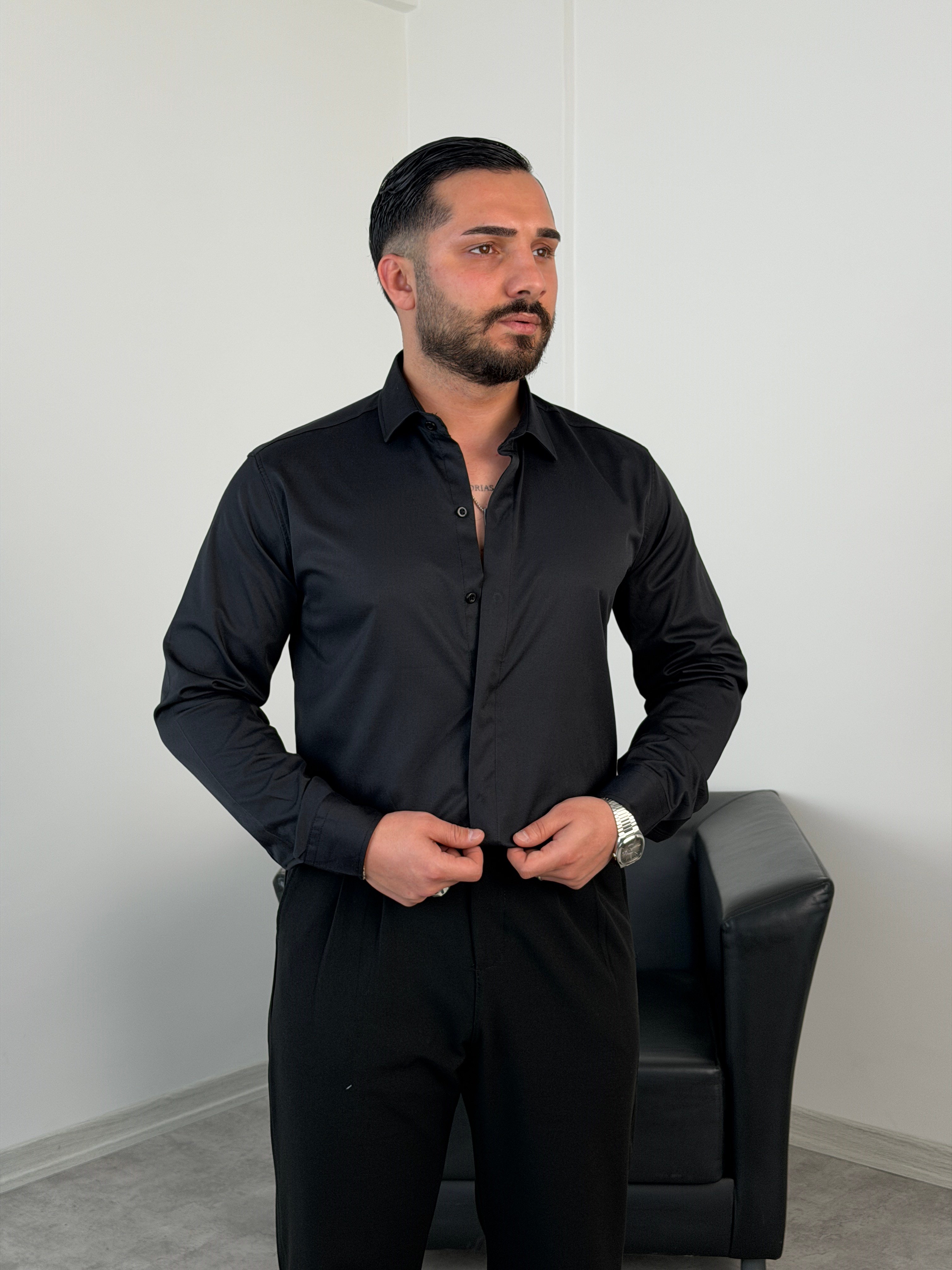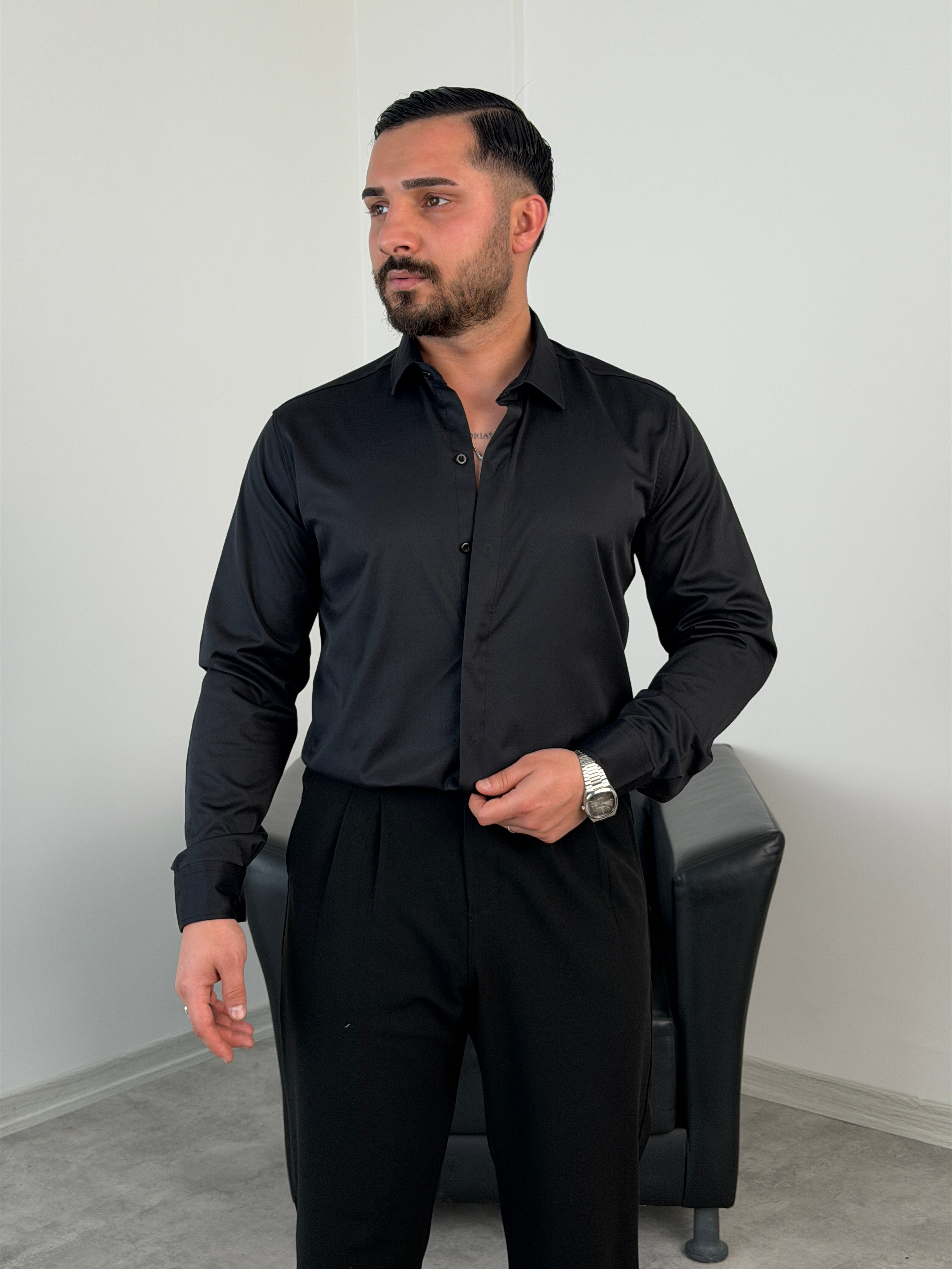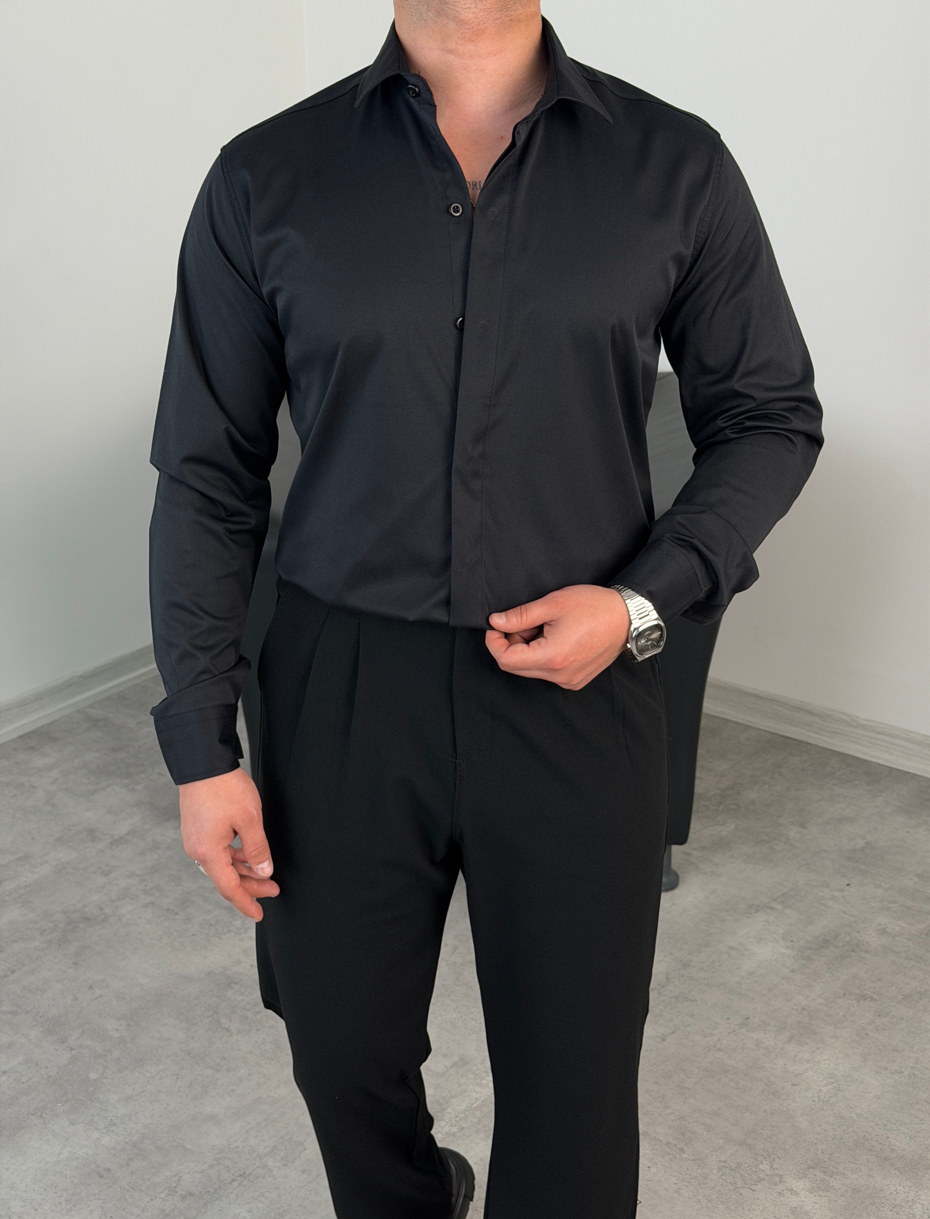 REGULAR FİT KLASİK POPLİN GÖMLEK SİYAH