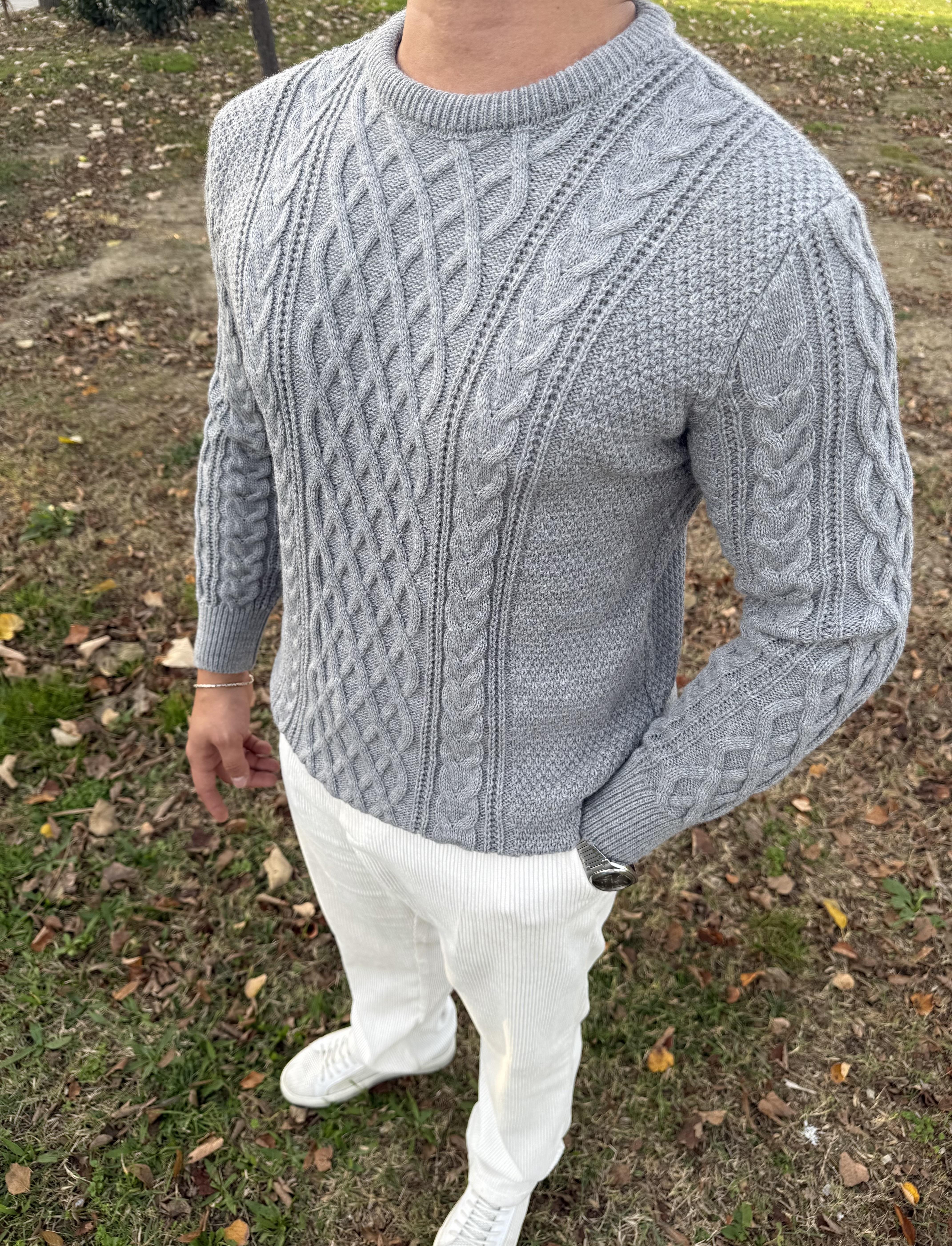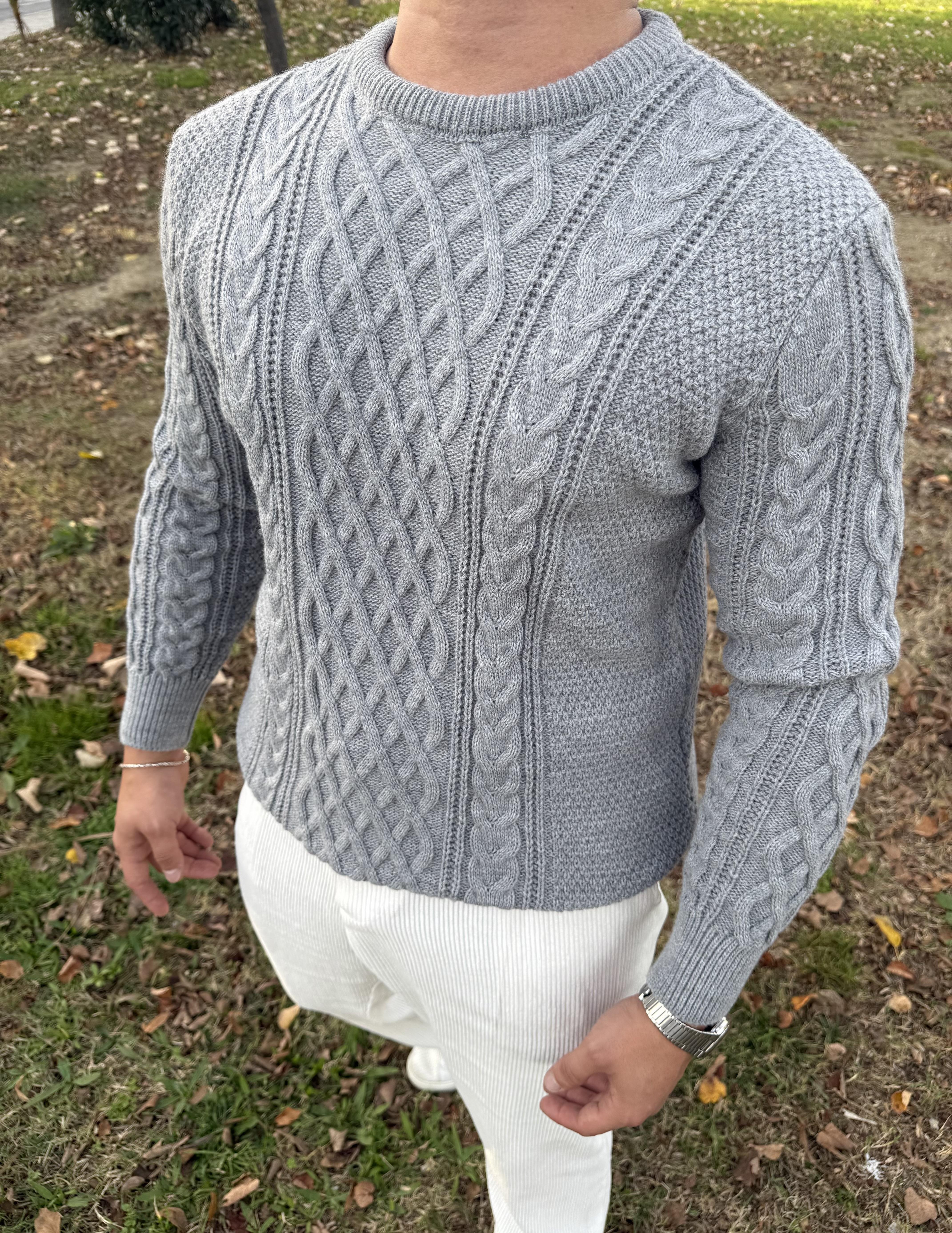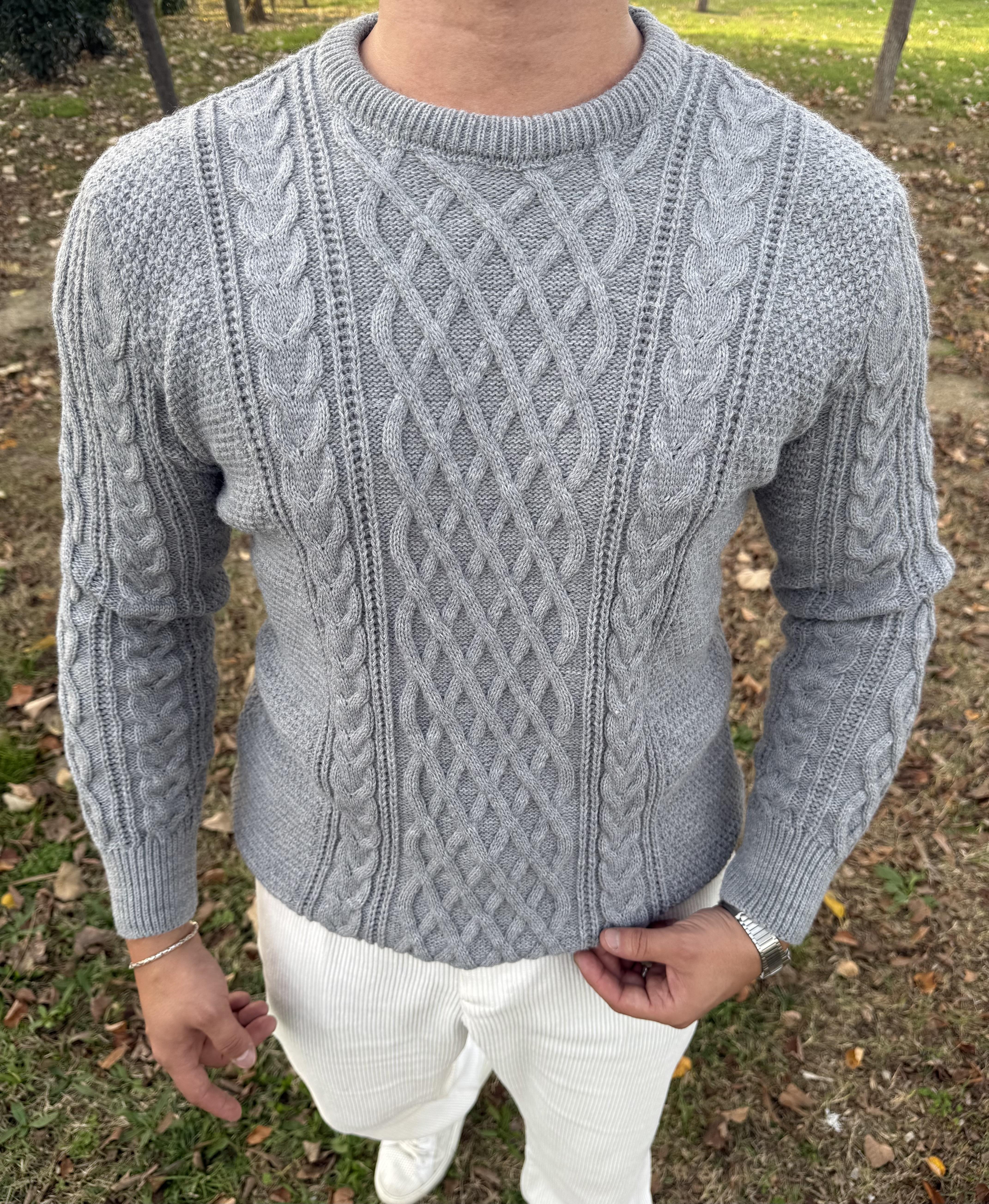 SAÇ ÖRGÜ BİSİKLET YAKA KALIN TRİKO GRİ