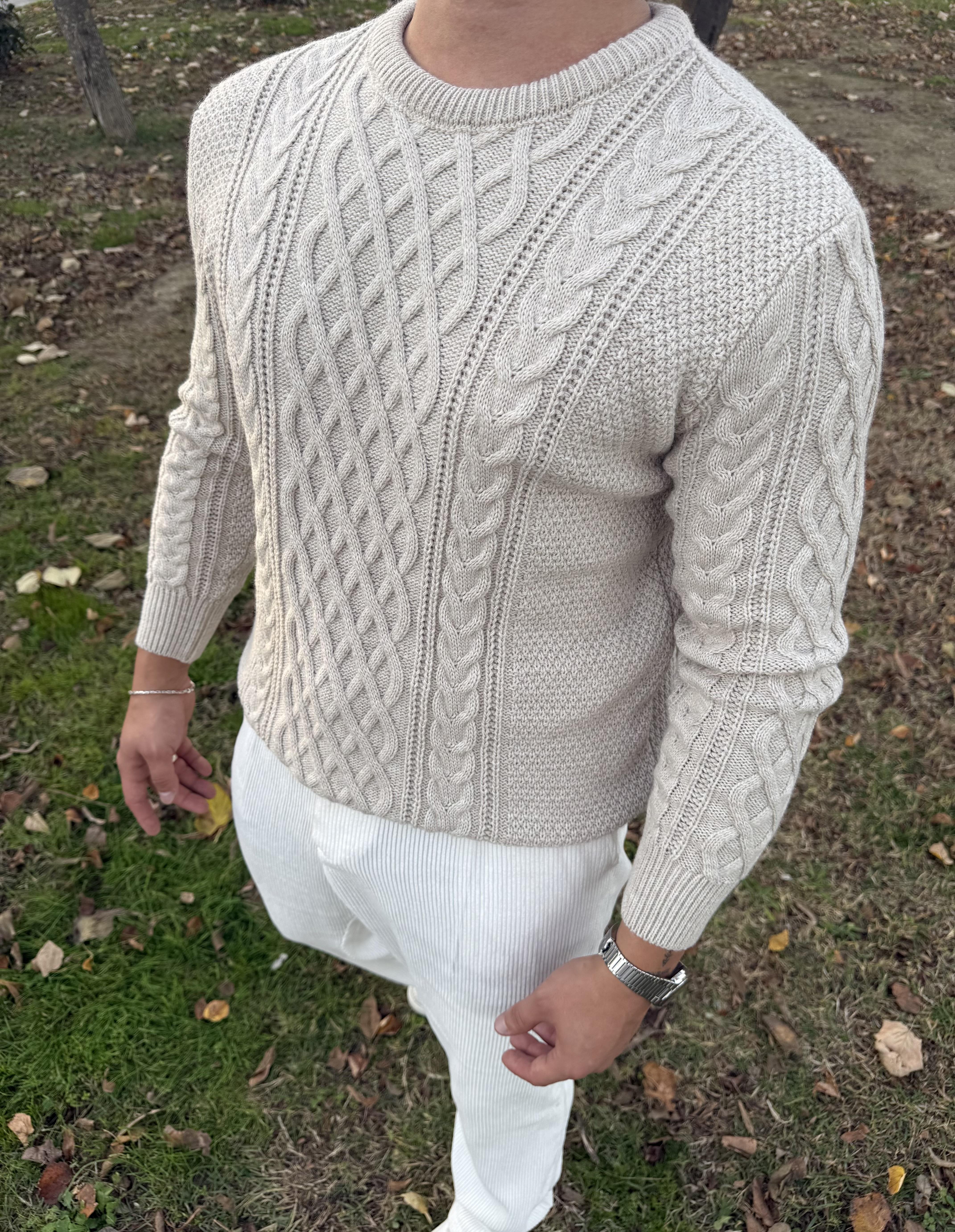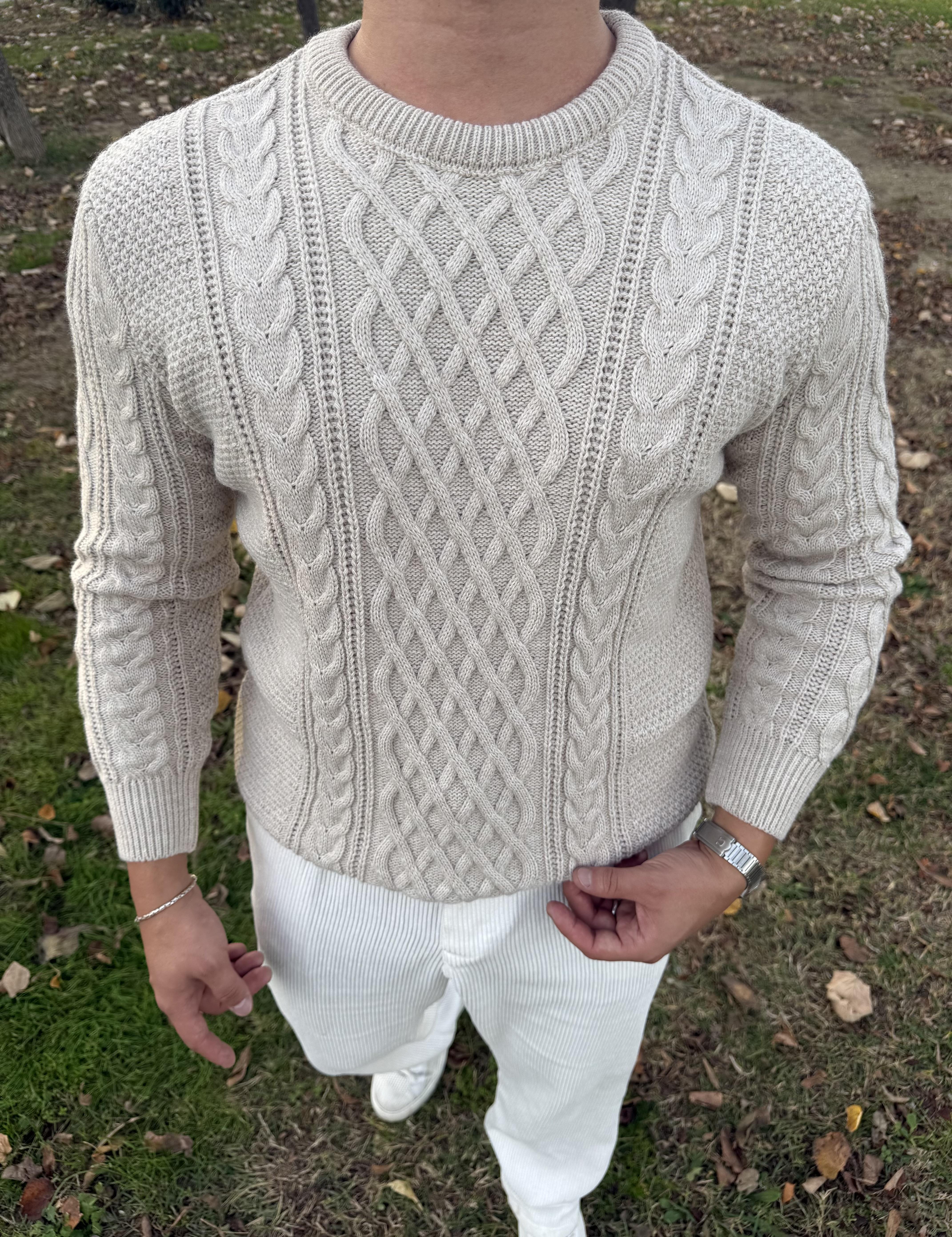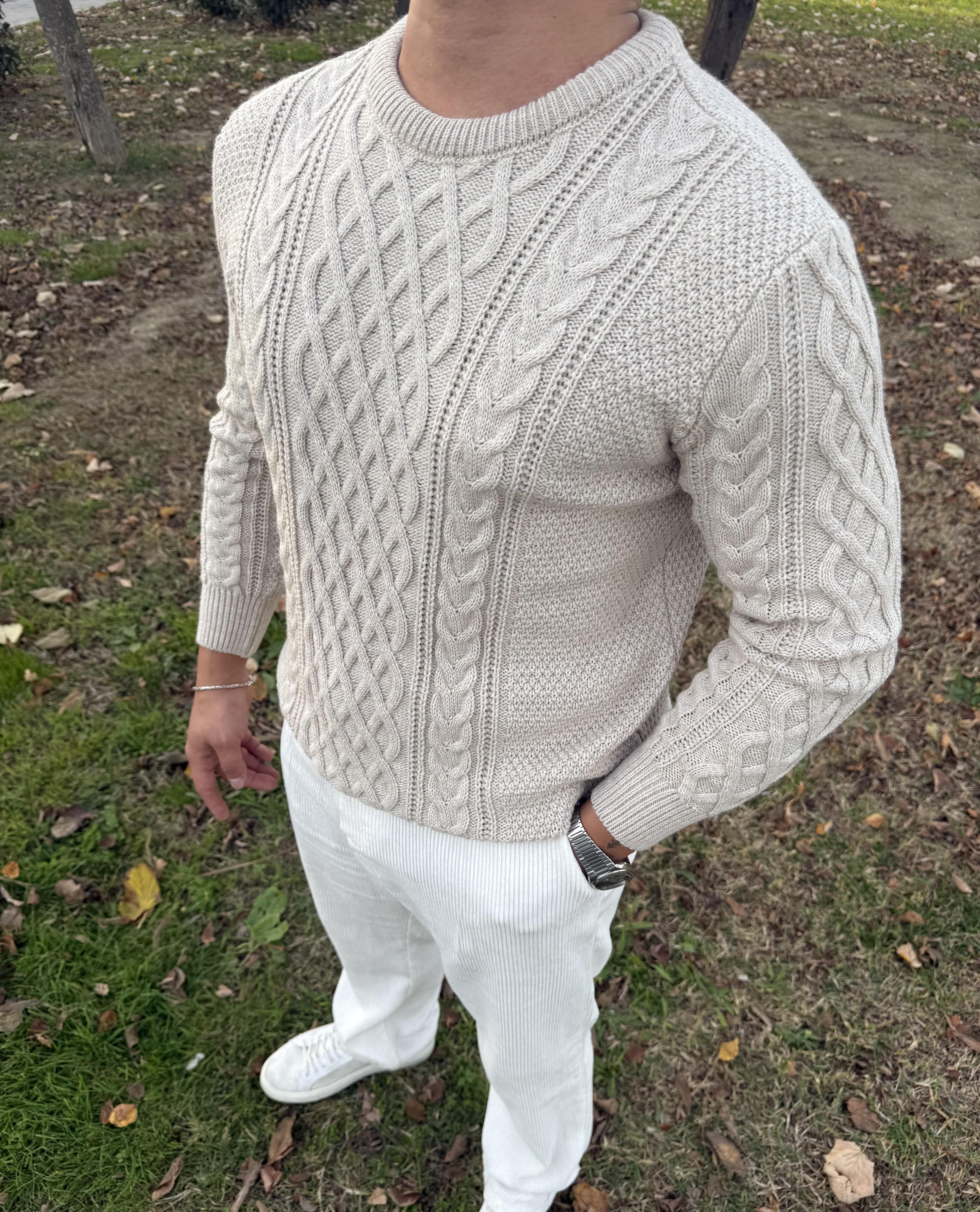 SAÇ ÖRGÜ BİSİKLET YAKA KALIN TRİKO KREM
