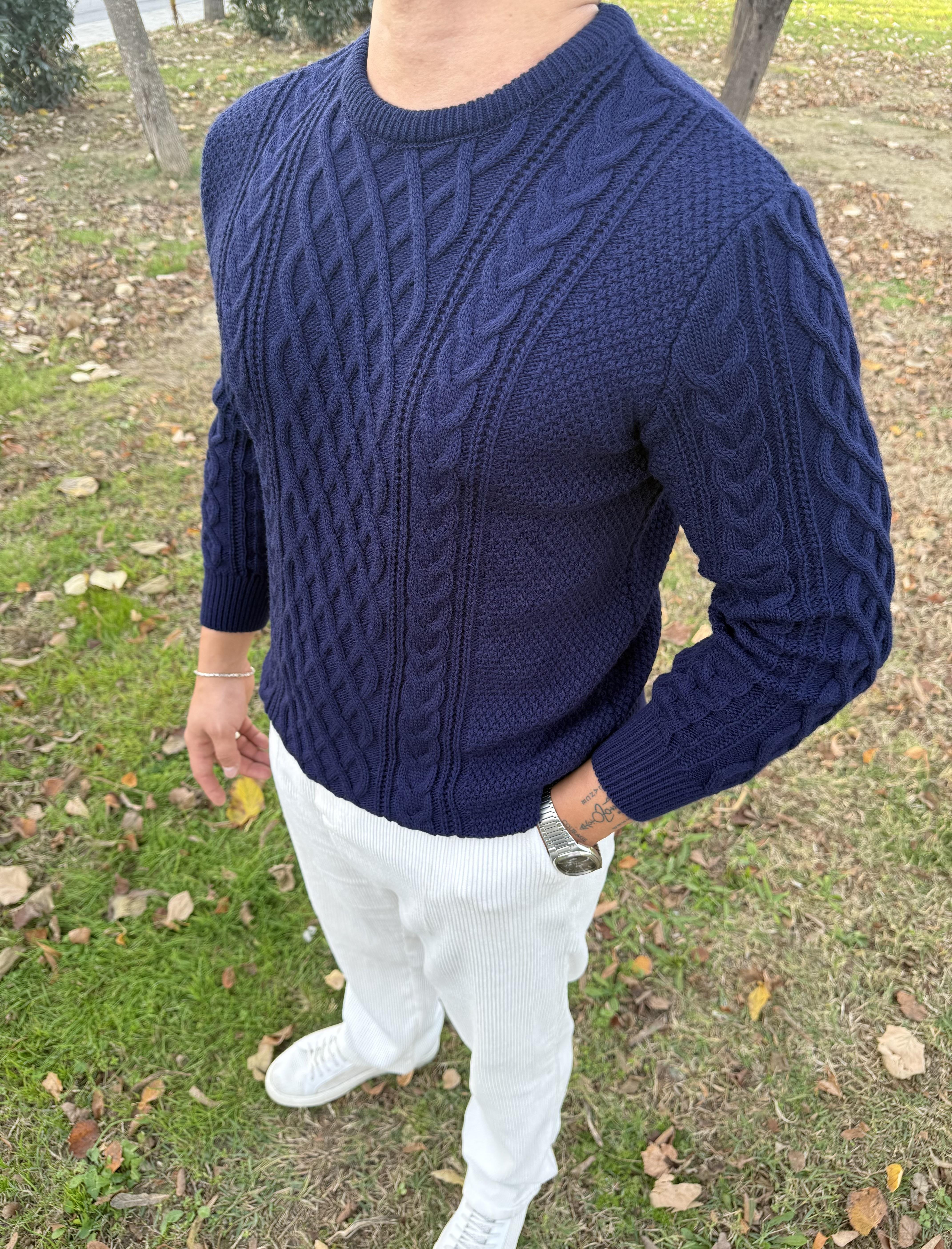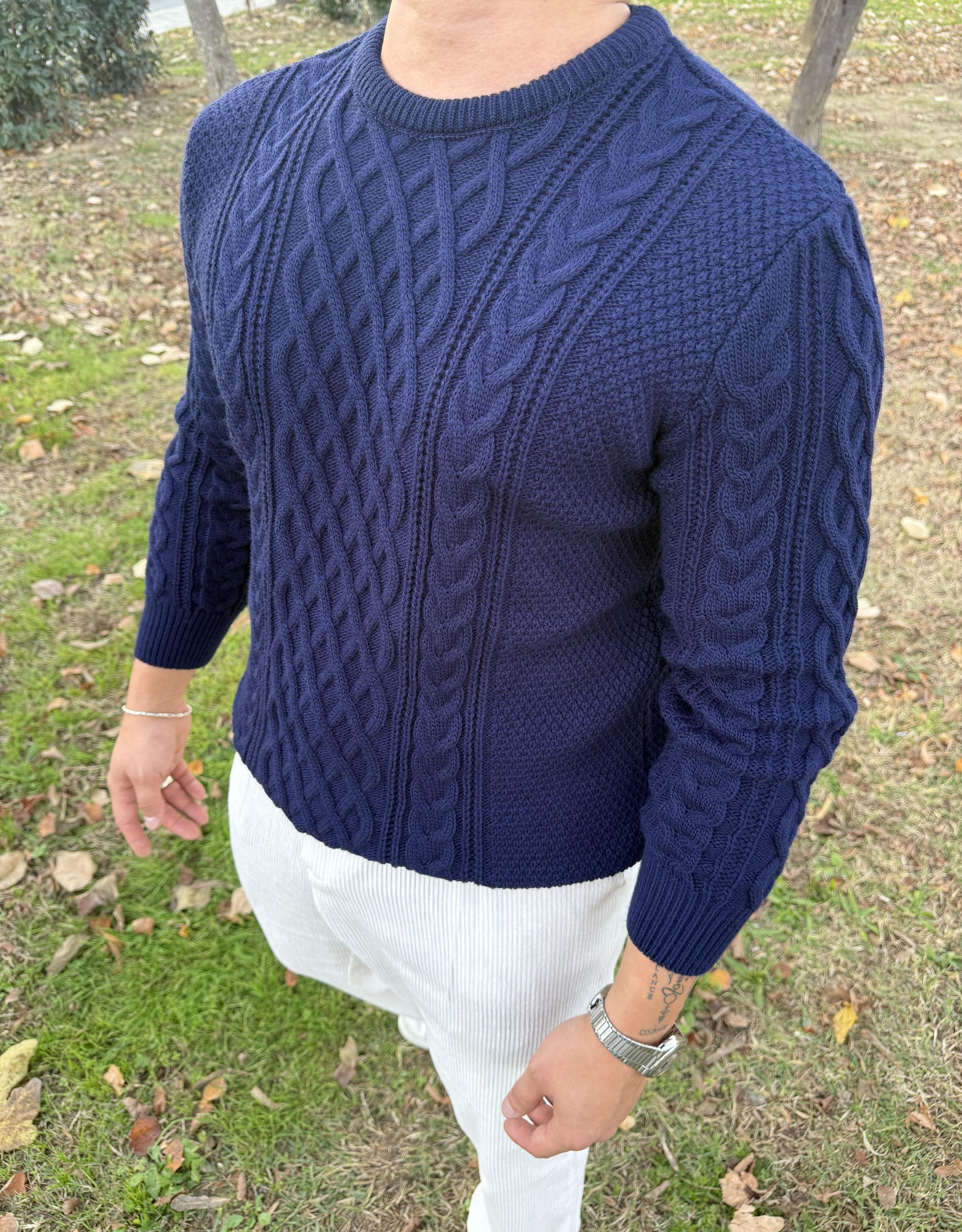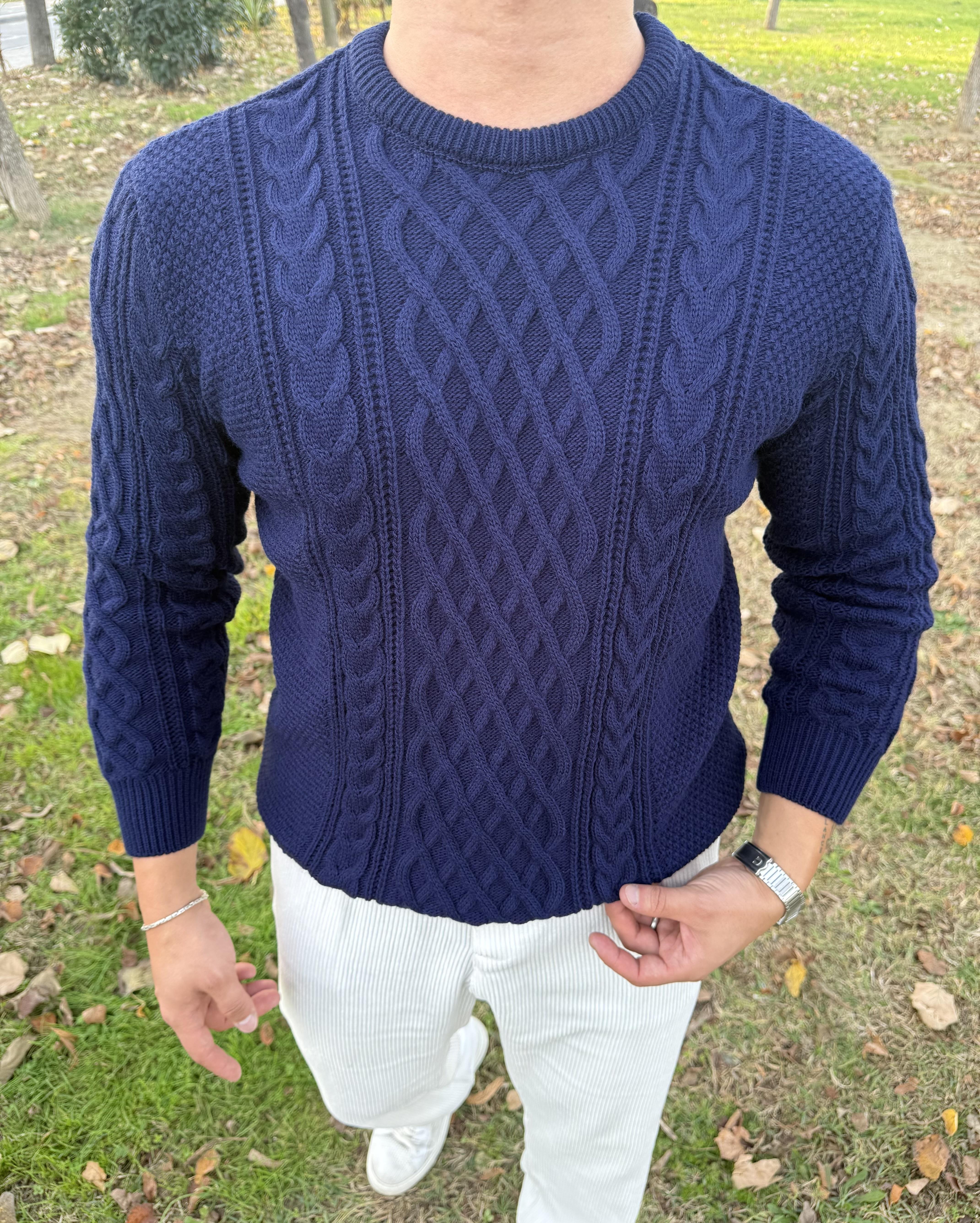 SAÇ ÖRGÜ BİSİKLET YAKA KALIN TRİKO LACİVERT