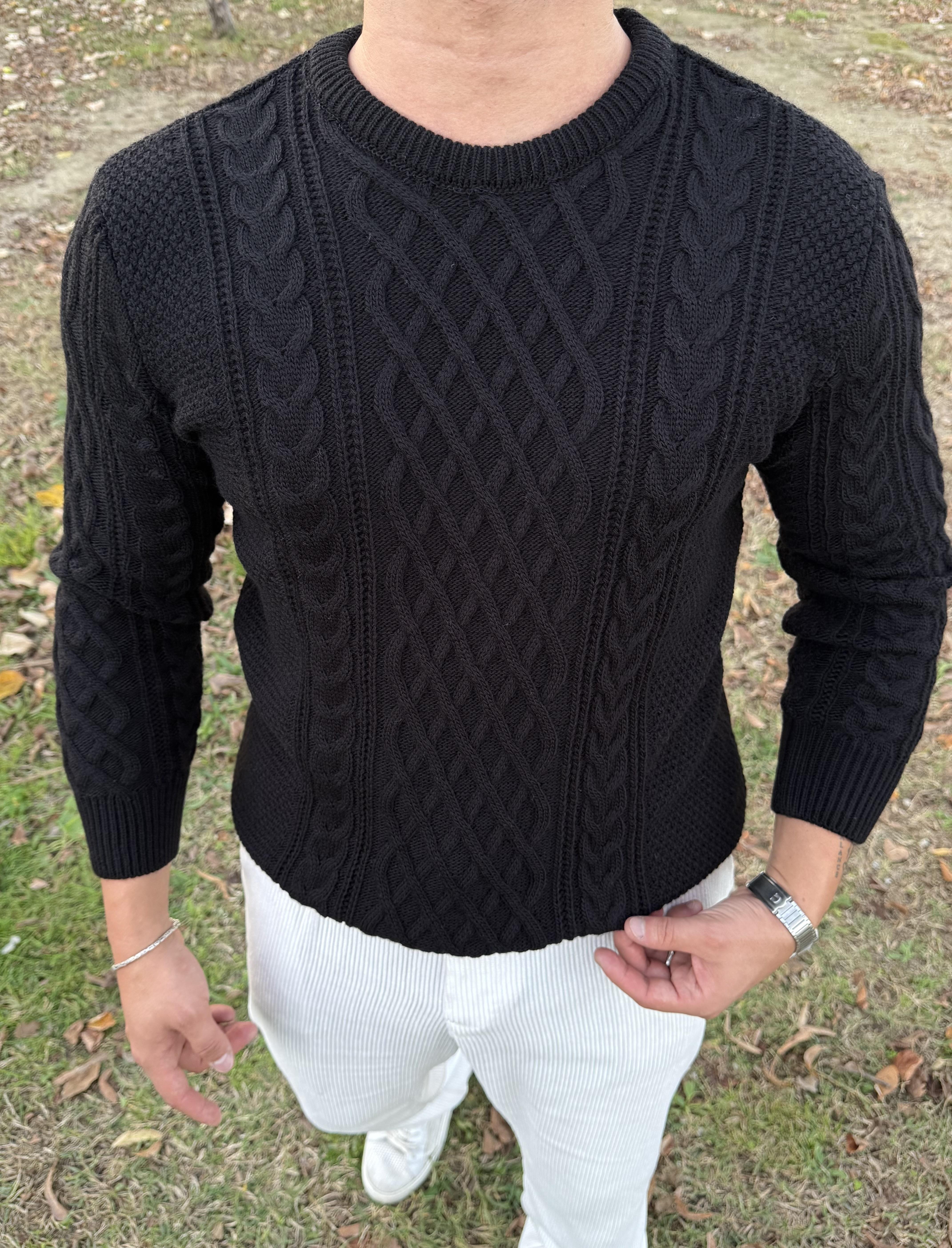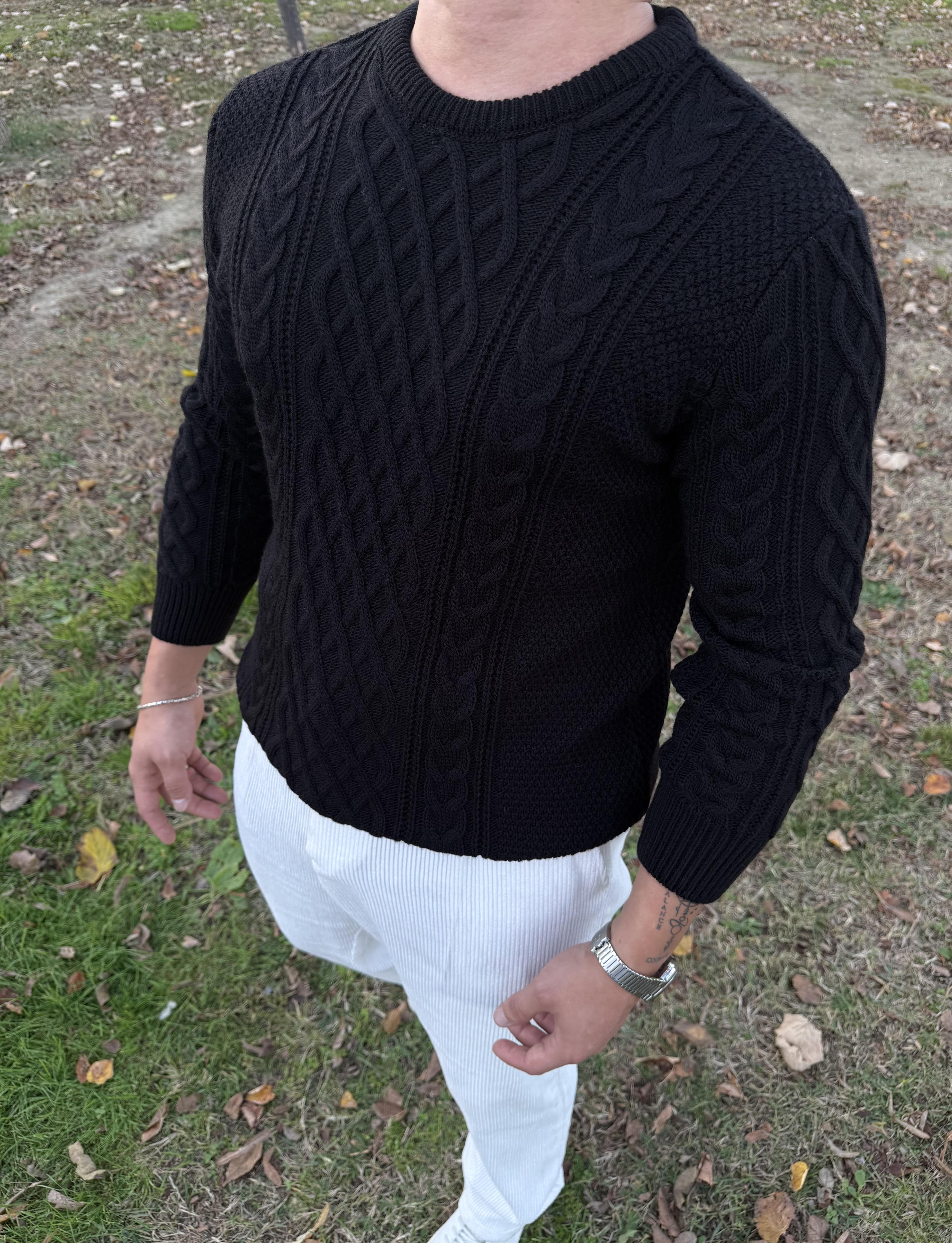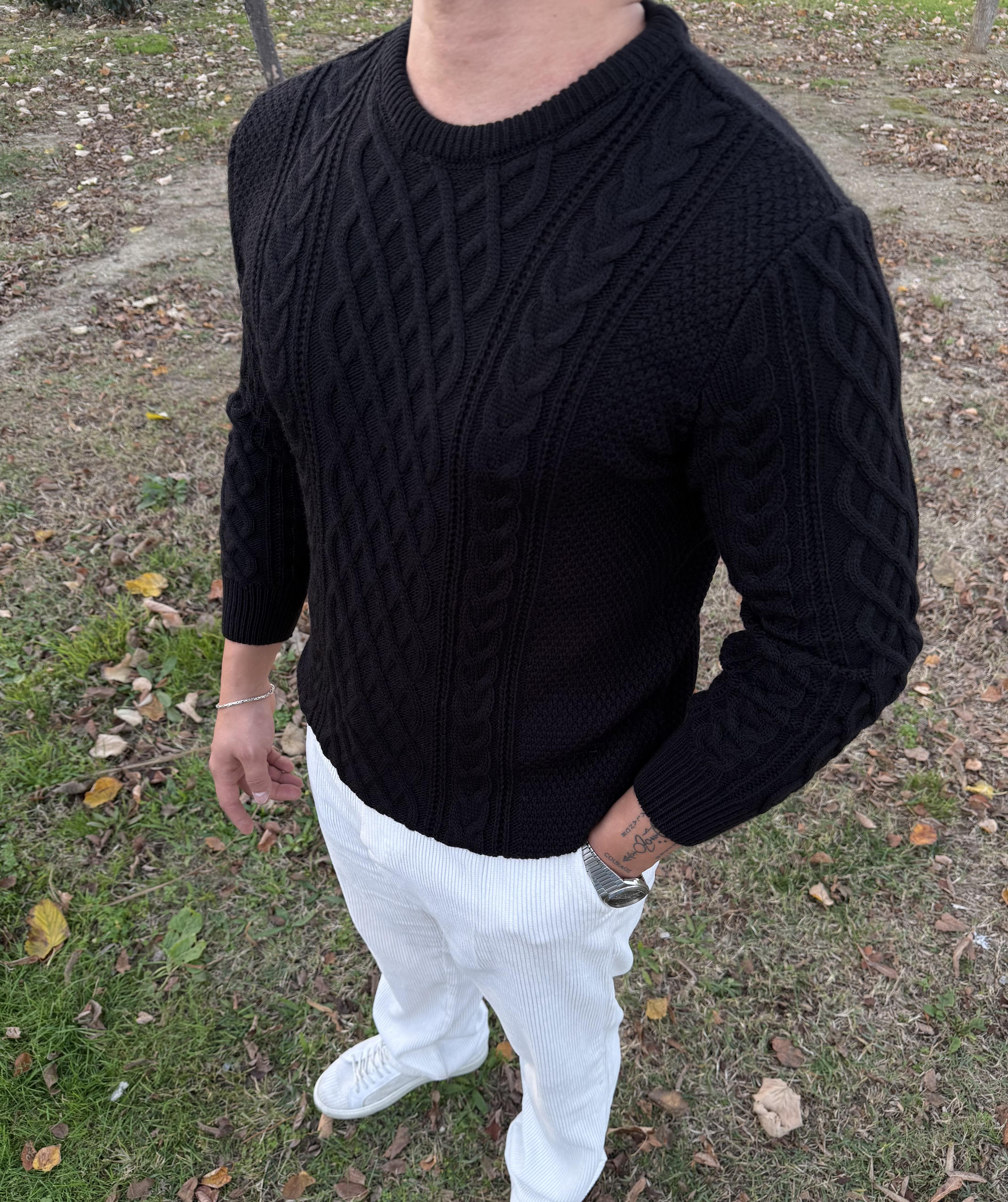 SAÇ ÖRGÜ BİSİKLET YAKA KALIN TRİKO SİYAH