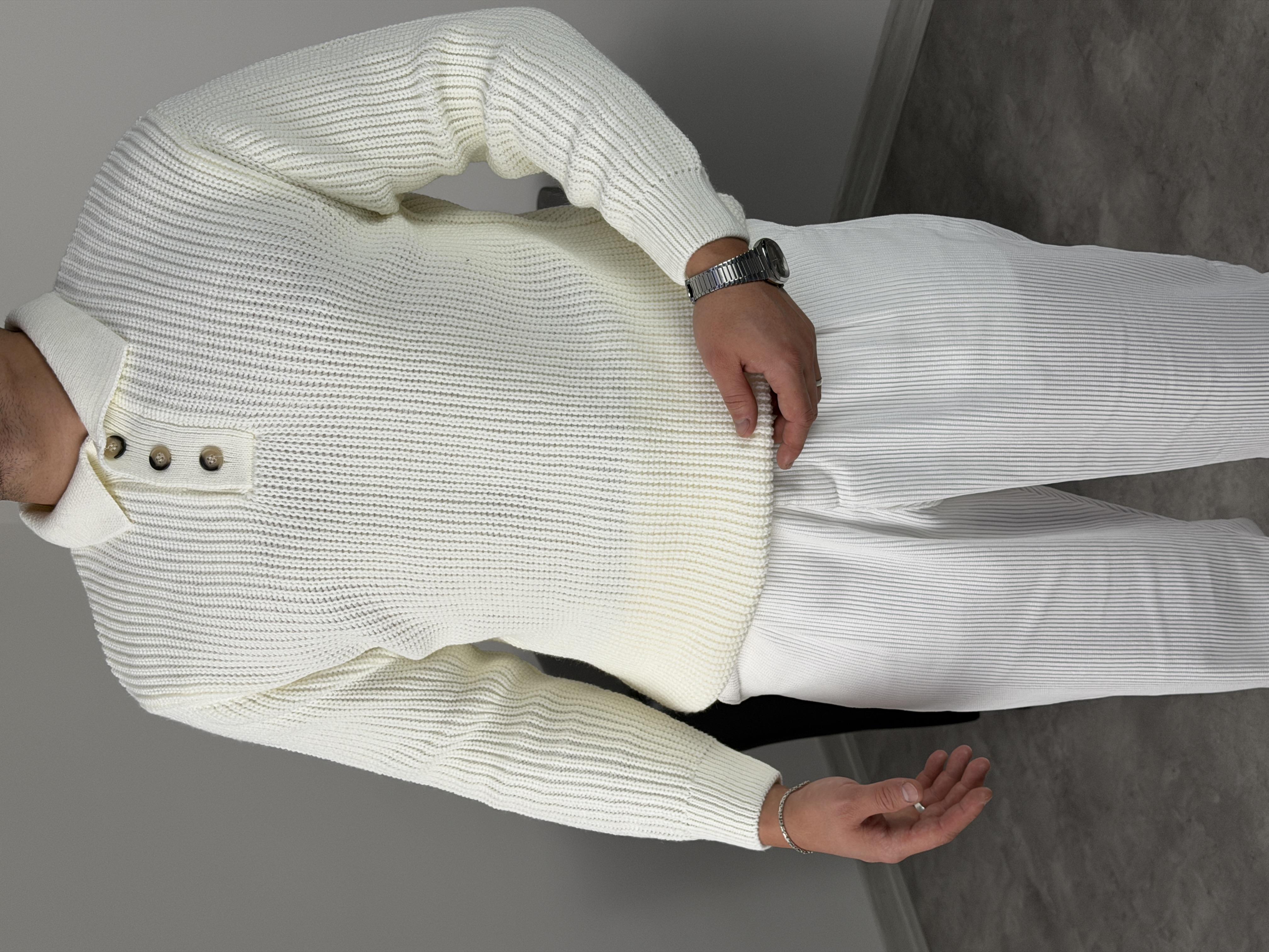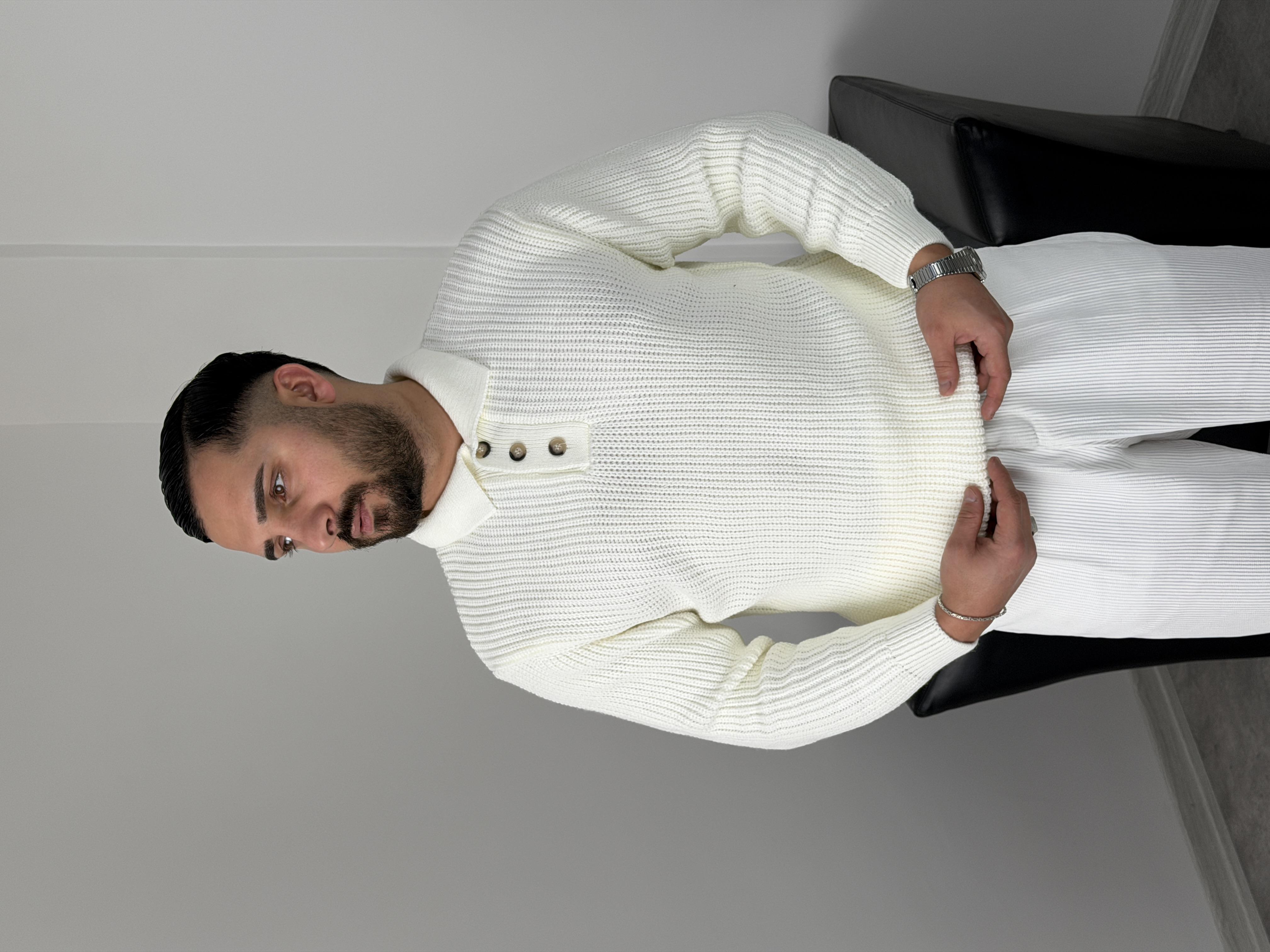SELANİK KALIN ÖRGÜ DÜĞMELİ TRİKO POLO YAKA BEYAZ