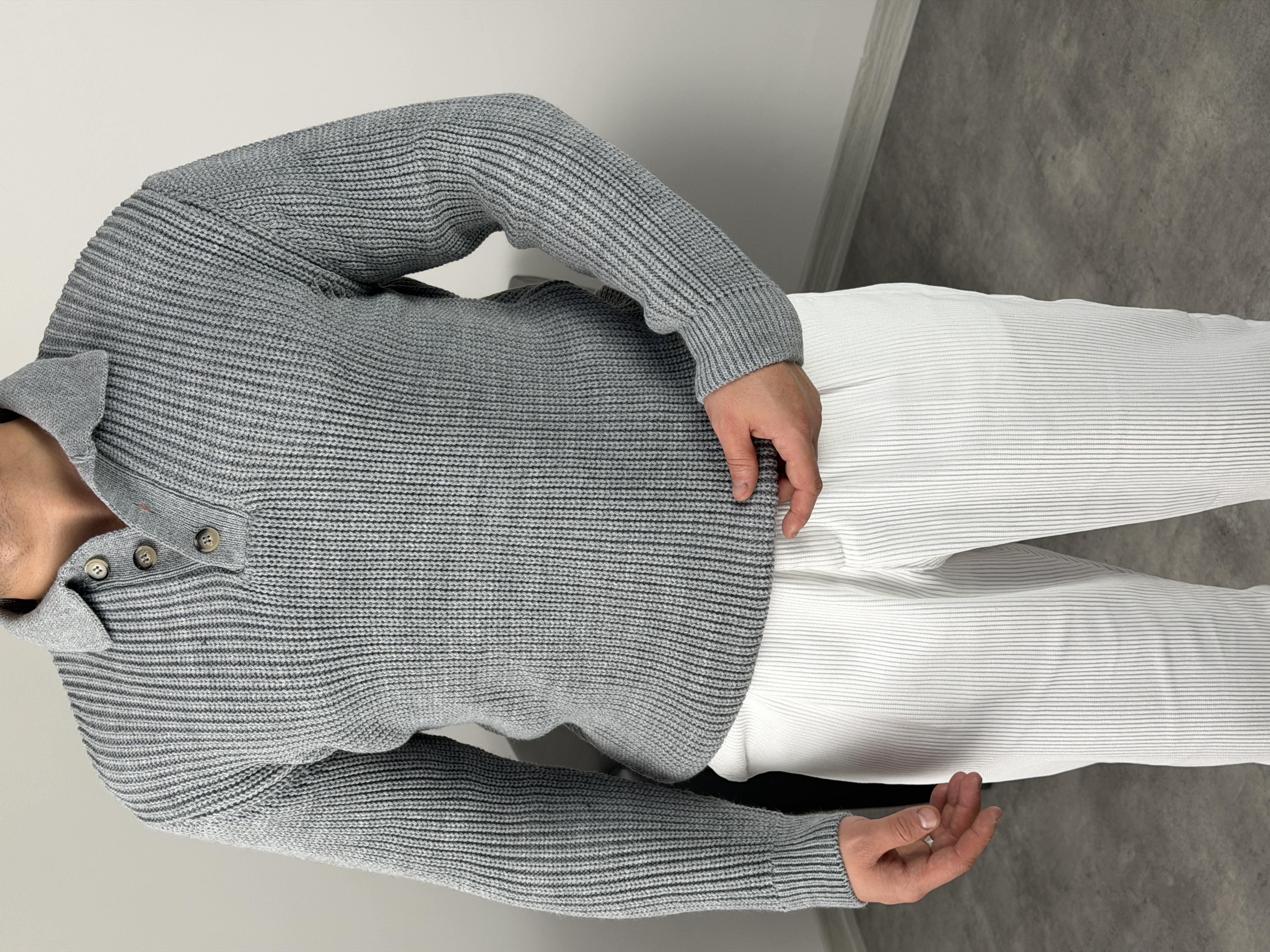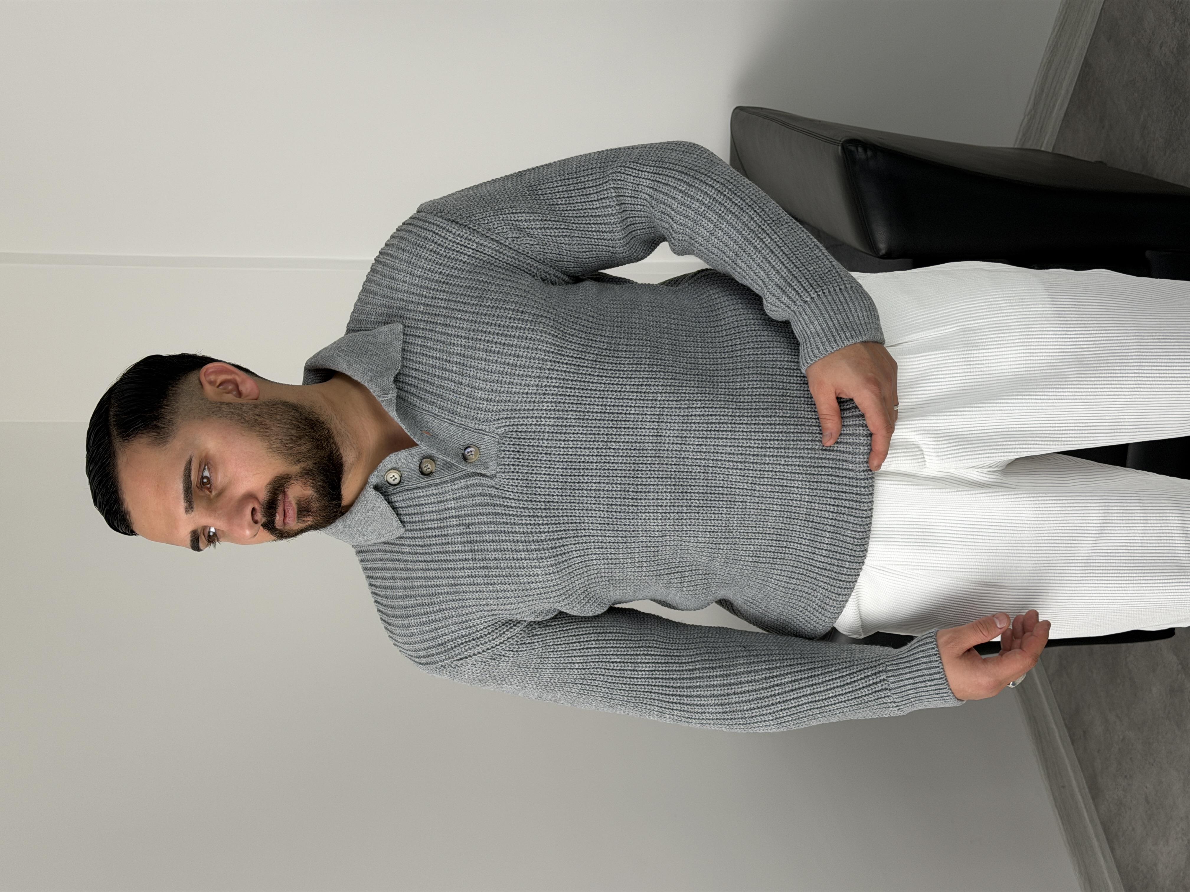 SELANİK KALIN ÖRGÜ DÜĞMELİ TRİKO POLO YAKA GRİ