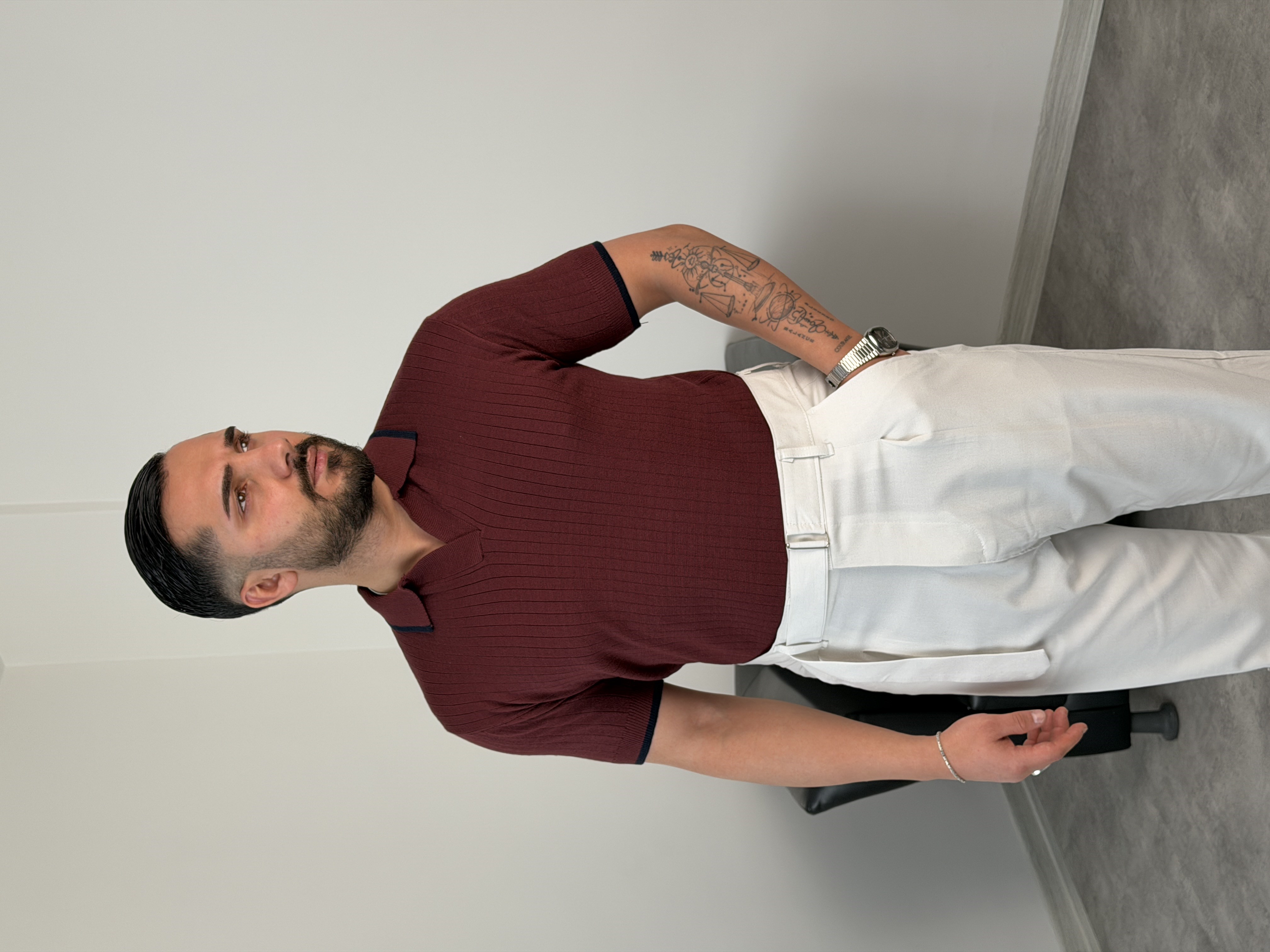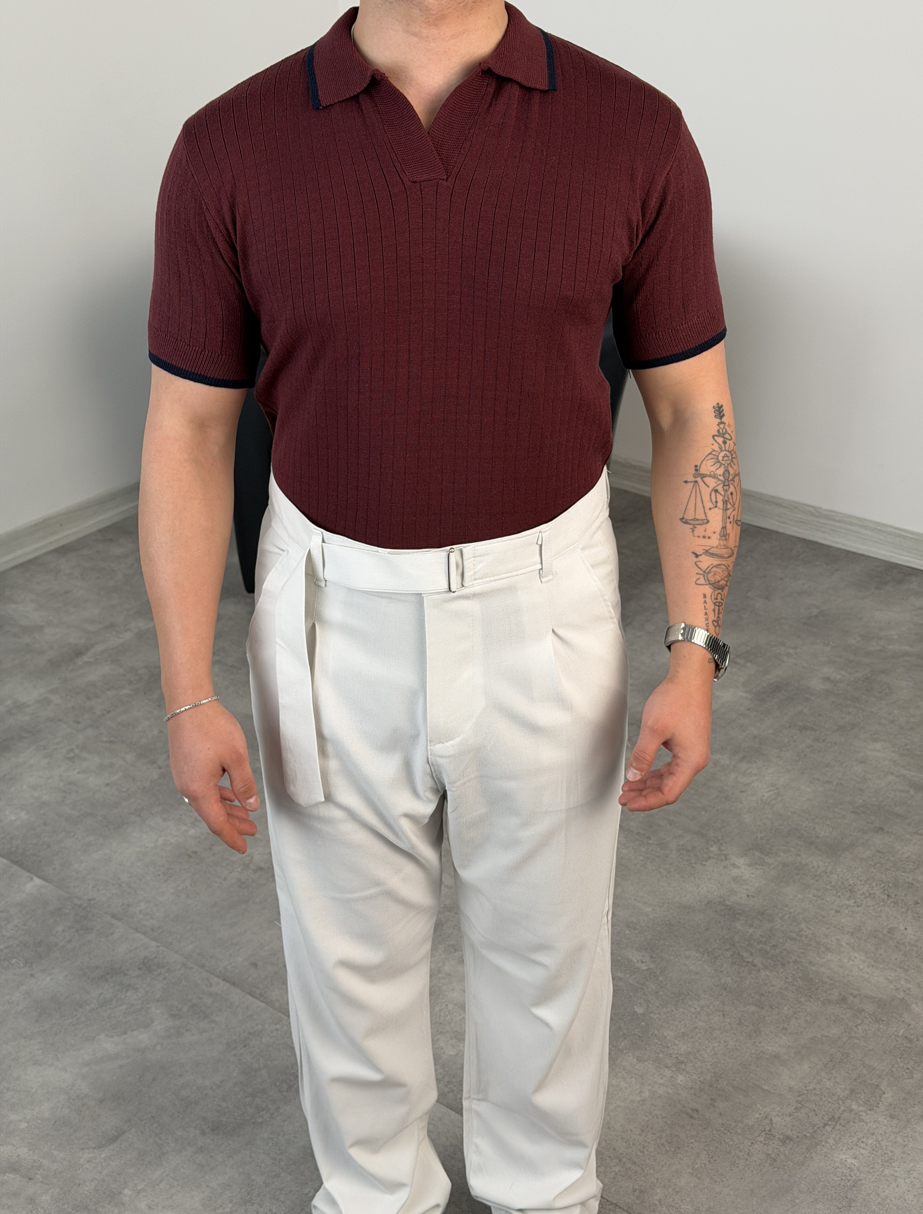 ŞERİT NAKIŞ DETAYLI TRİKO POLO YAKA TİŞÖRT MÜRDÜM