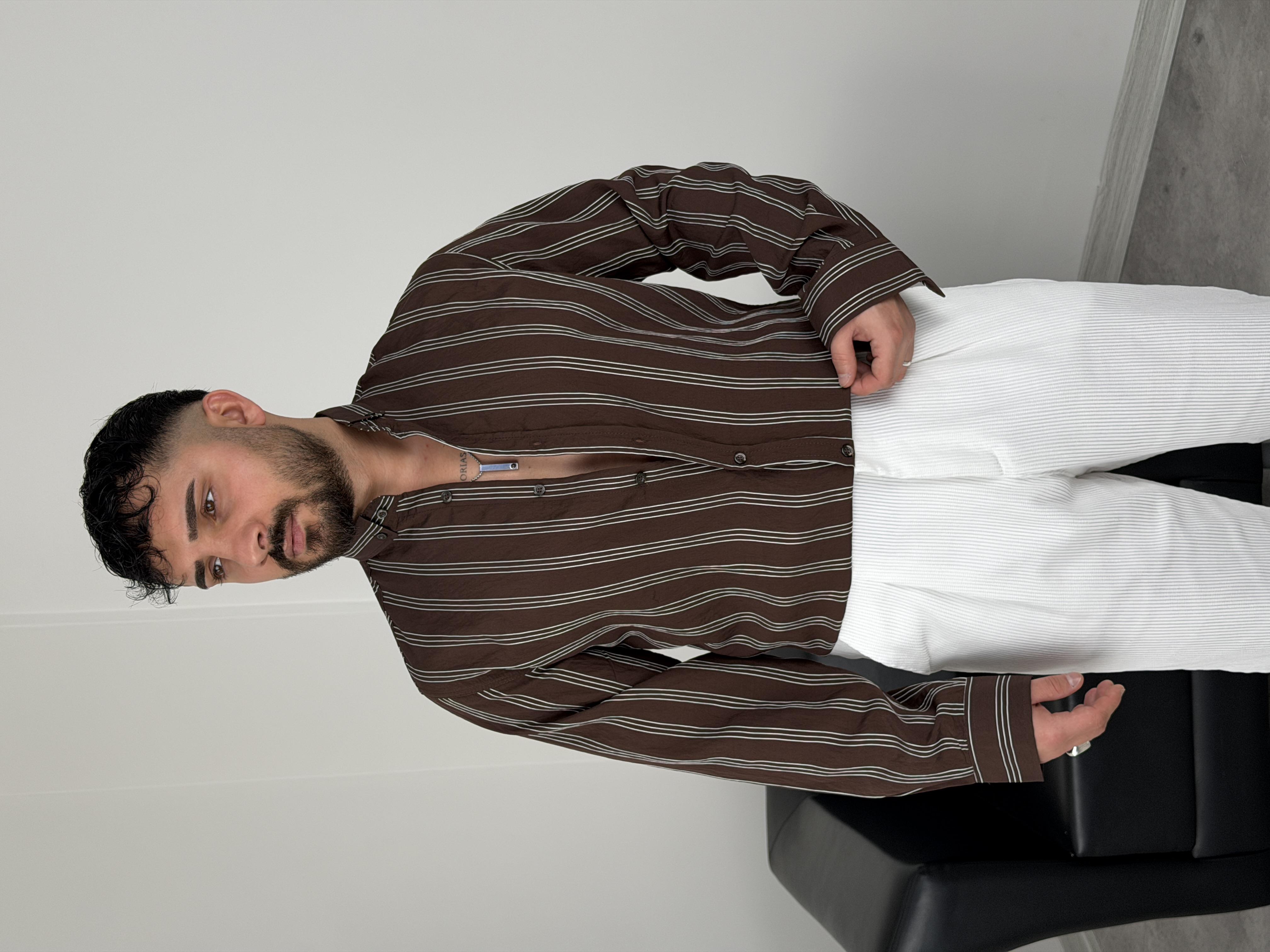 TENSEL KUMAŞ ÇİZGİLİ UZUNKOL GÖMLEK ACI KAHVE