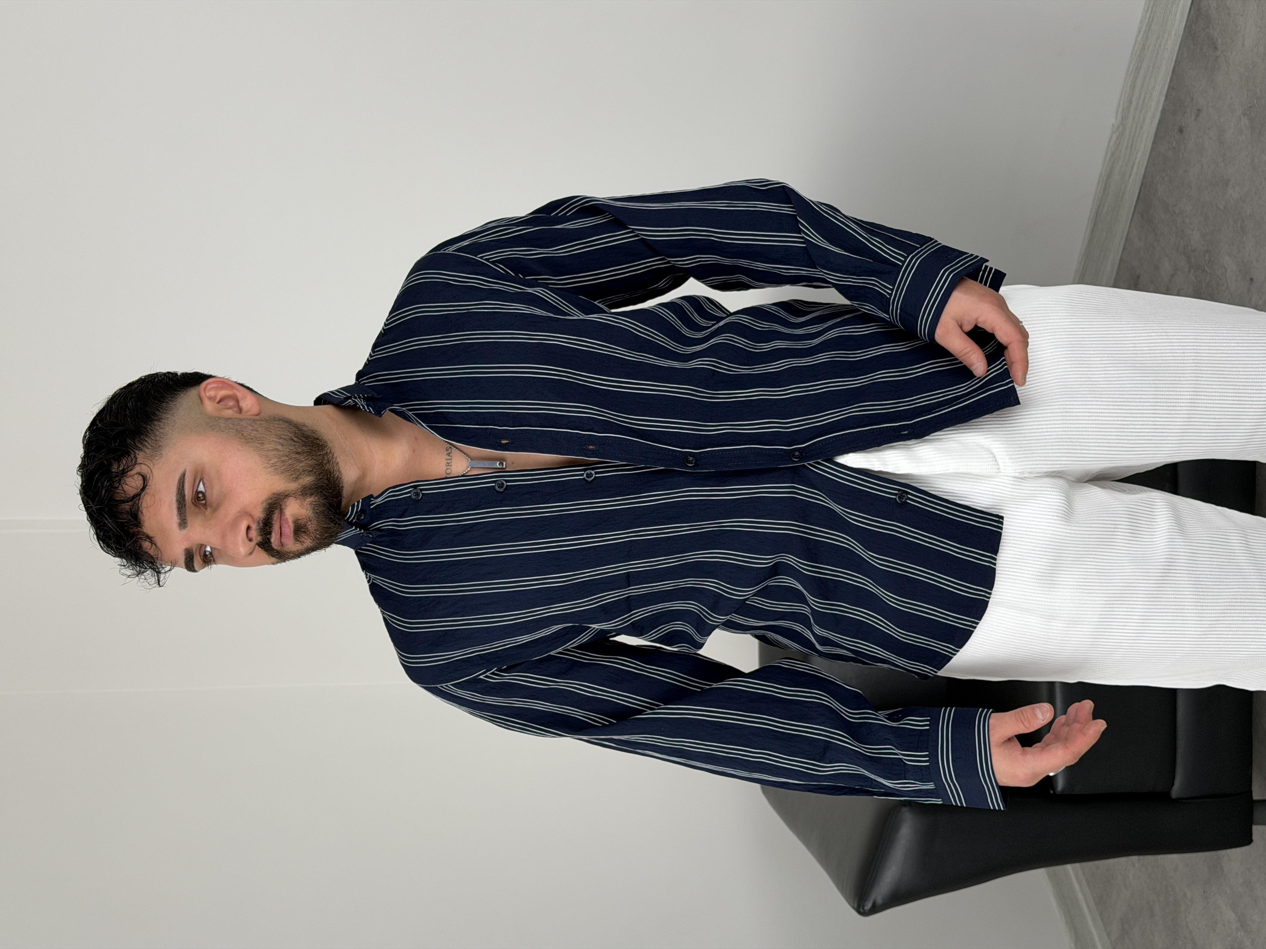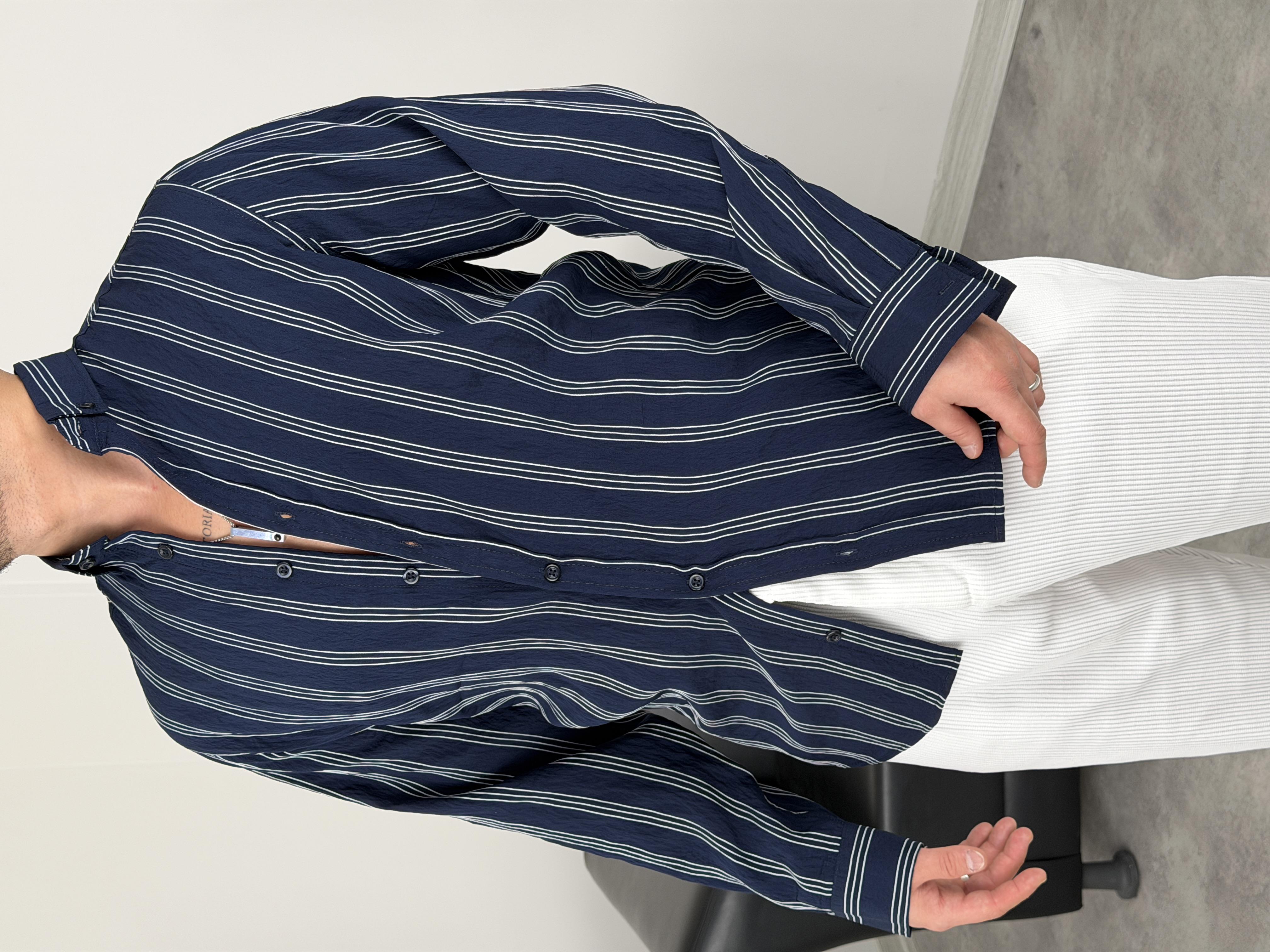 TENSEL KUMAŞ ÇİZGİLİ UZUNKOL GÖMLEK LACİVERT