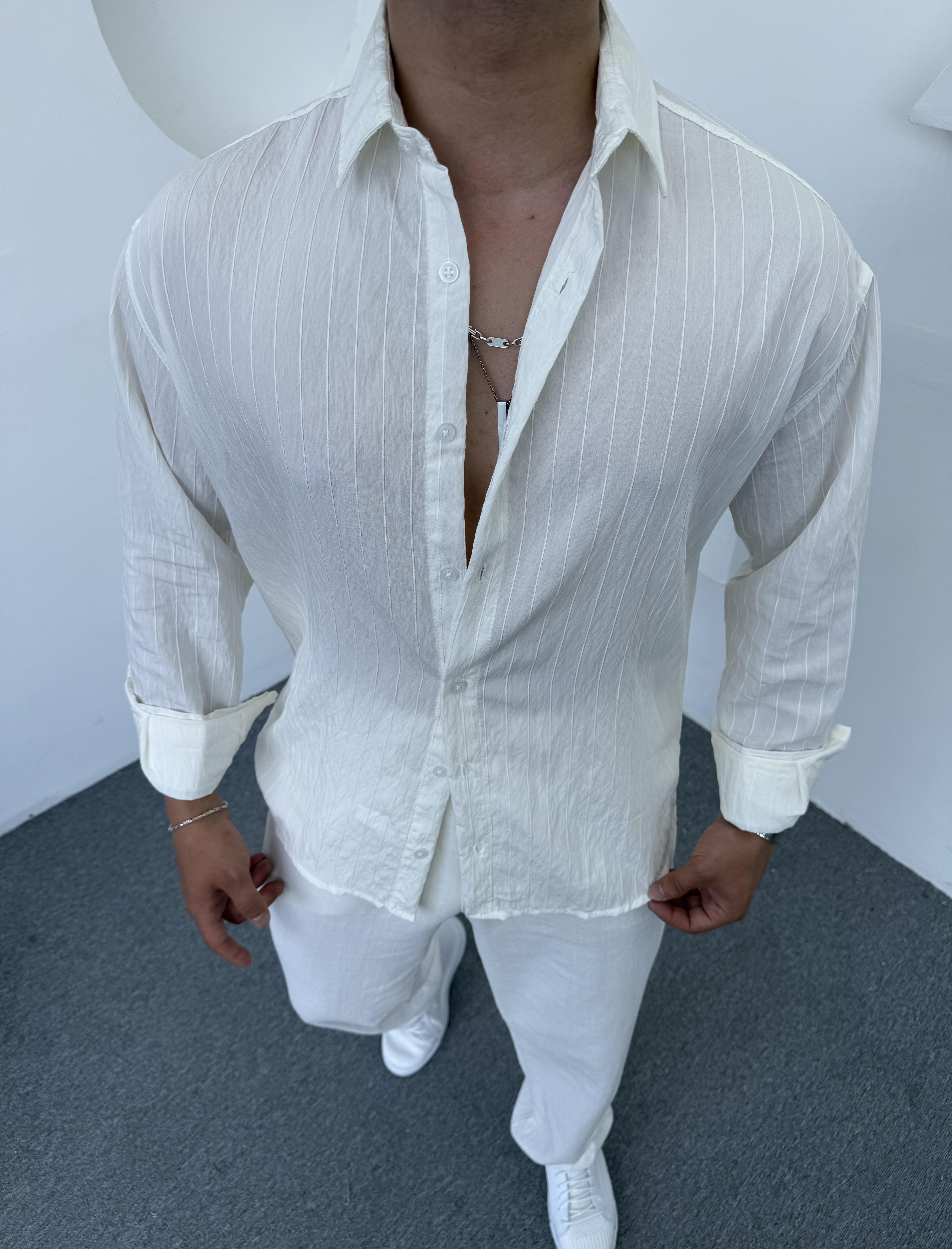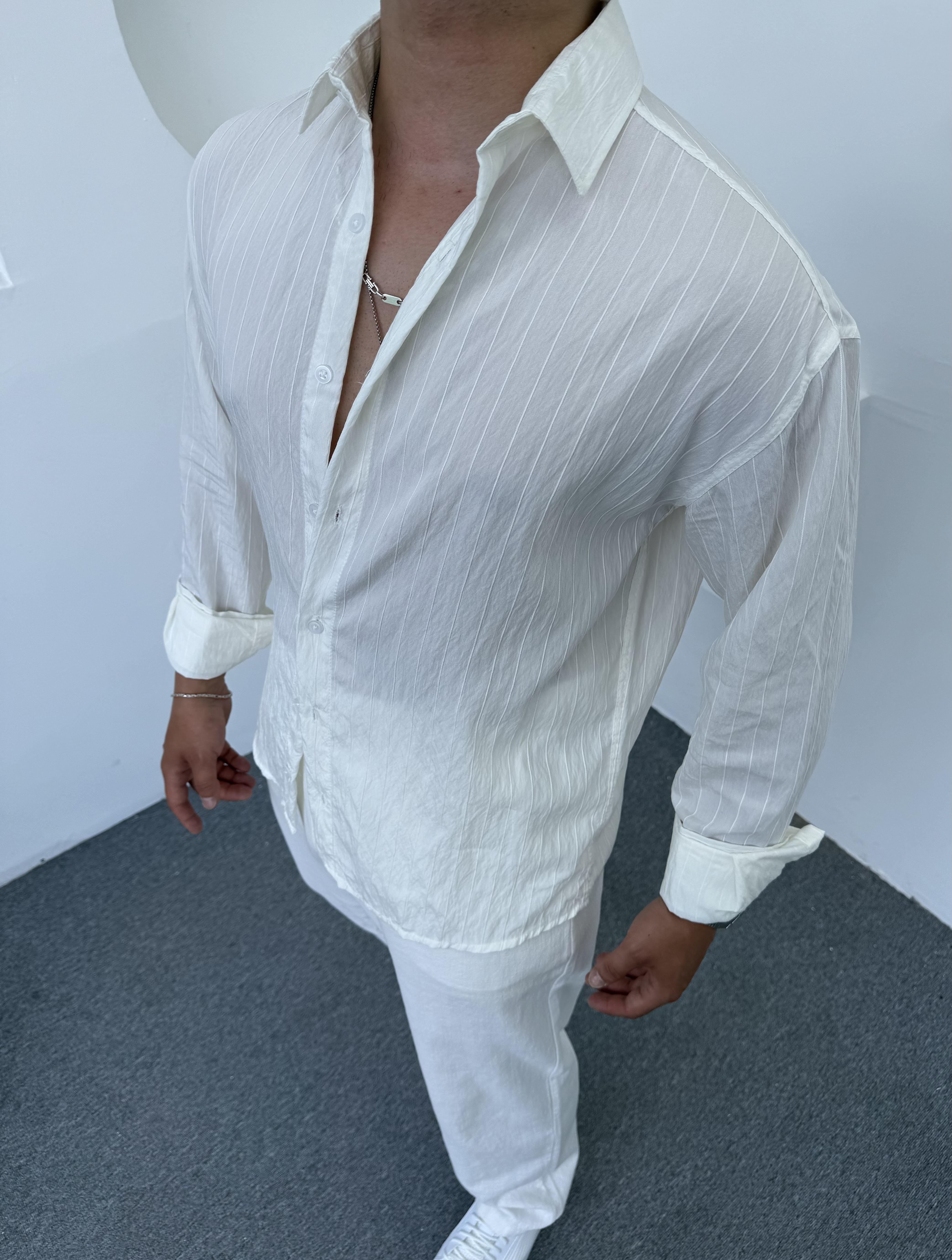 Yıkamalı Keten Gömlek Beyaz