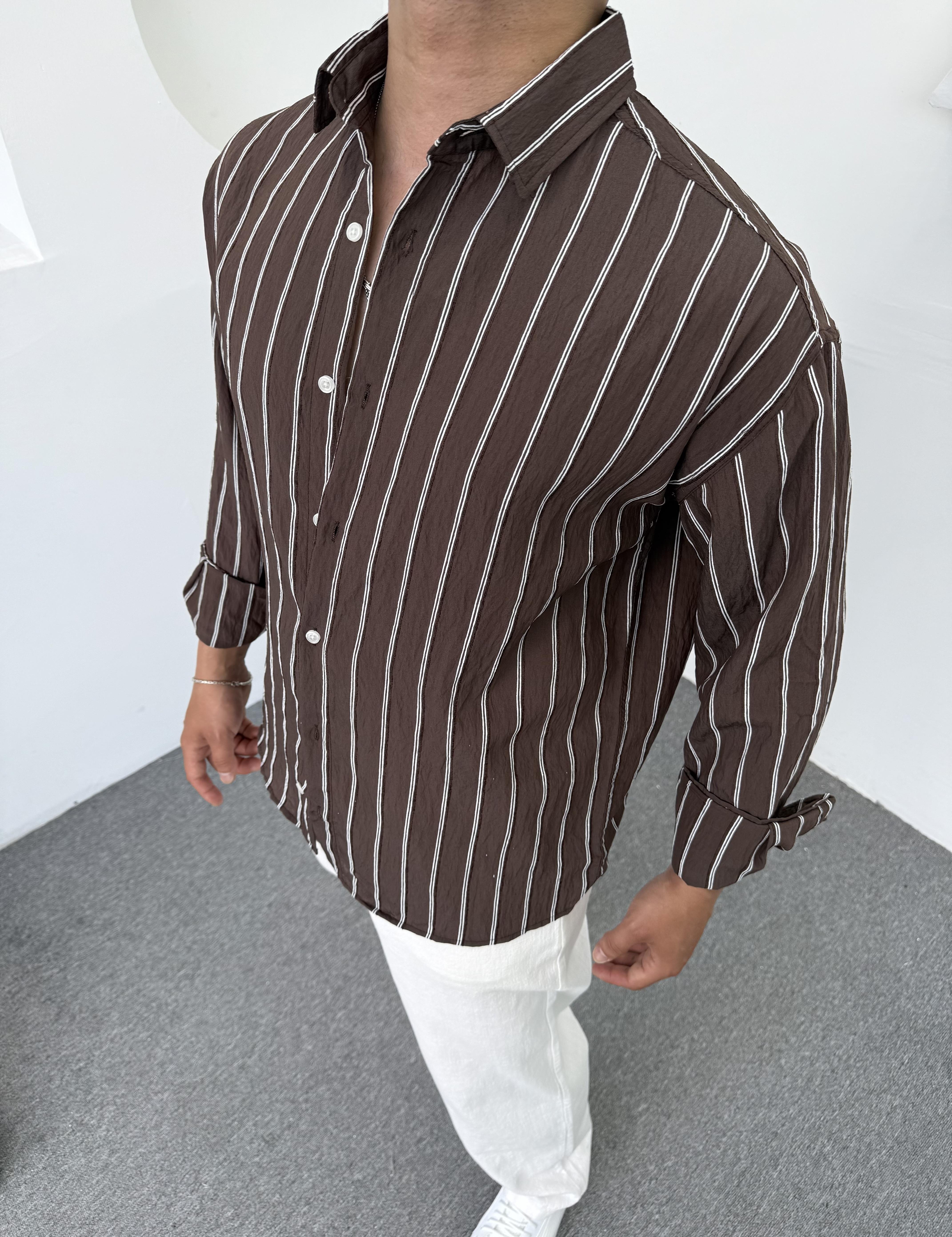 Yıkamalı Keten Gömlek Kahverengi