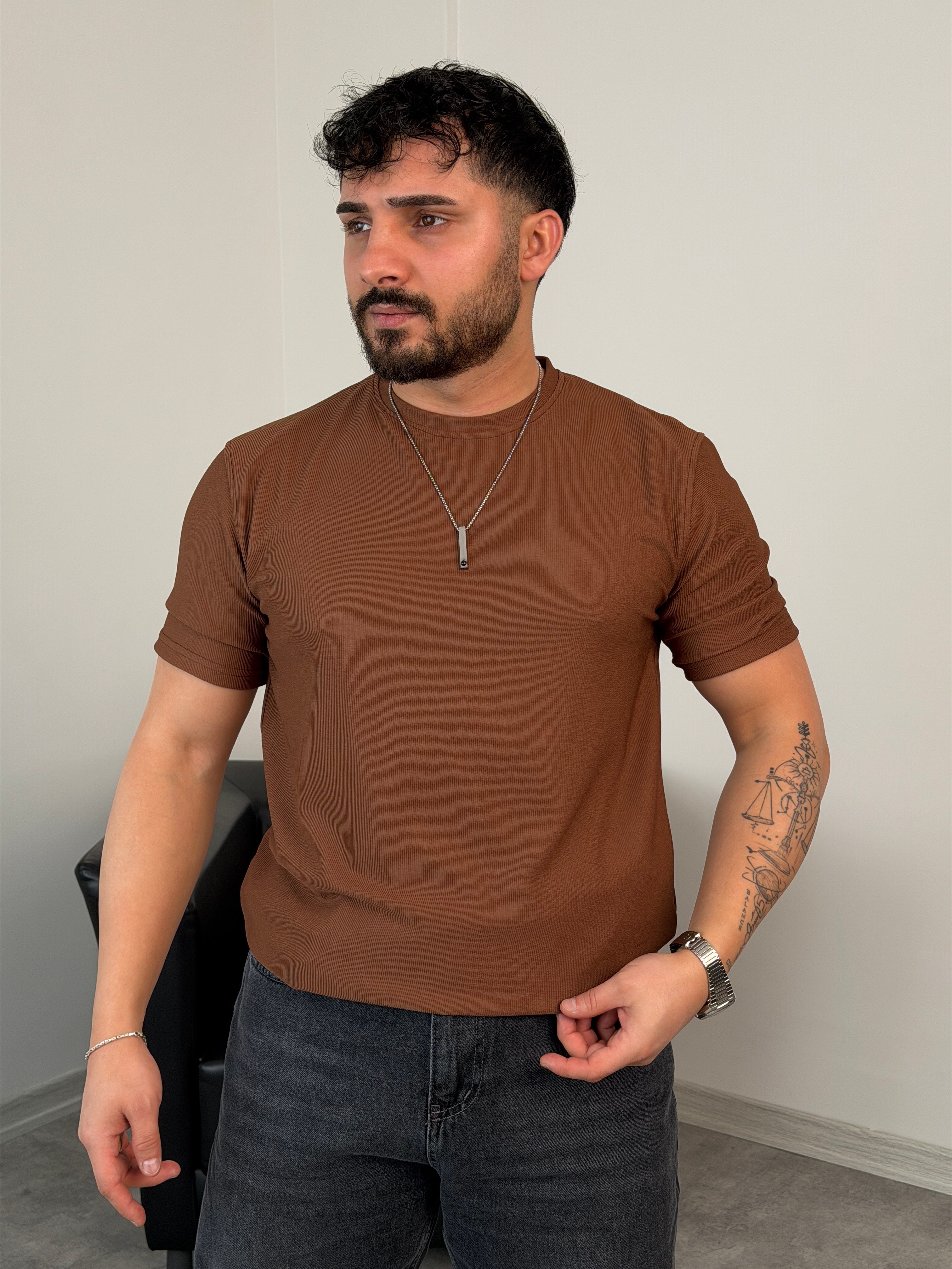 YIRTMAÇ DETAY BASİC TİŞÖRT ACI KAHVE