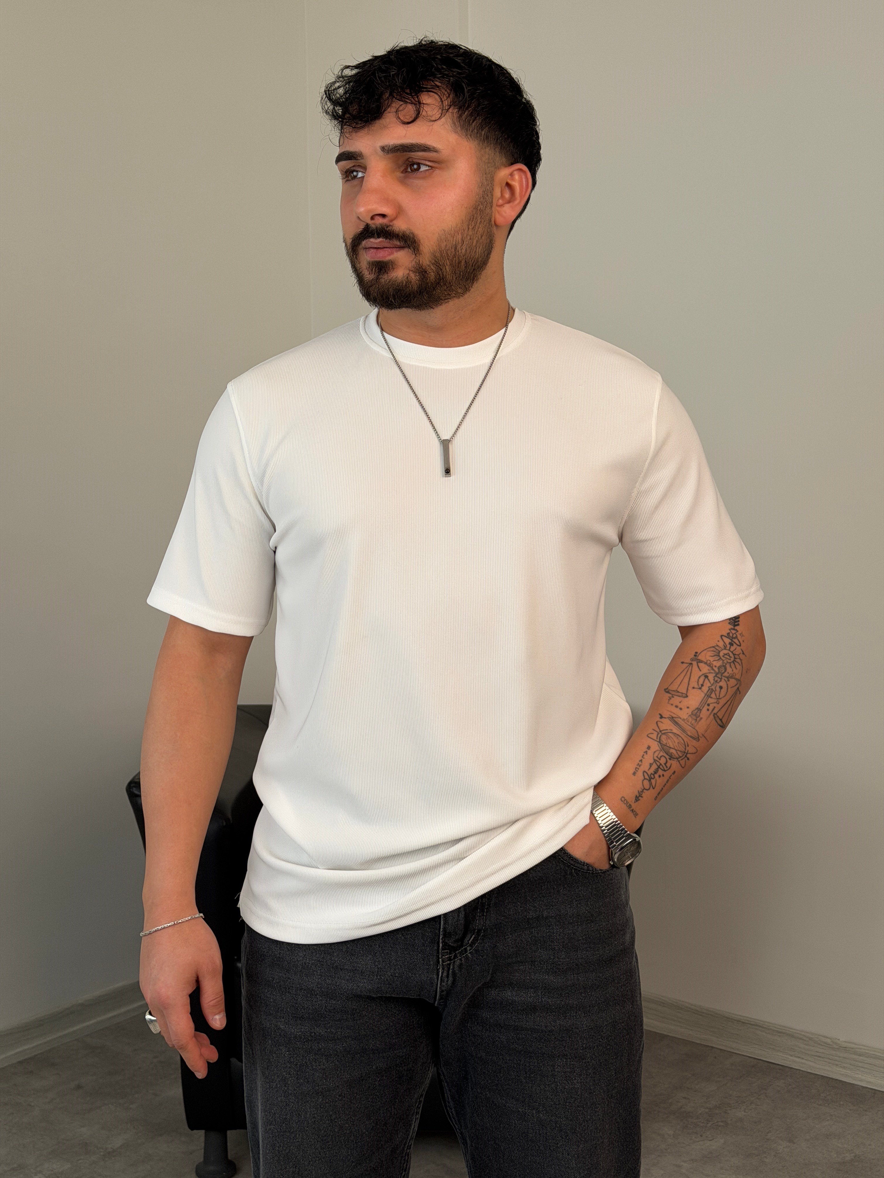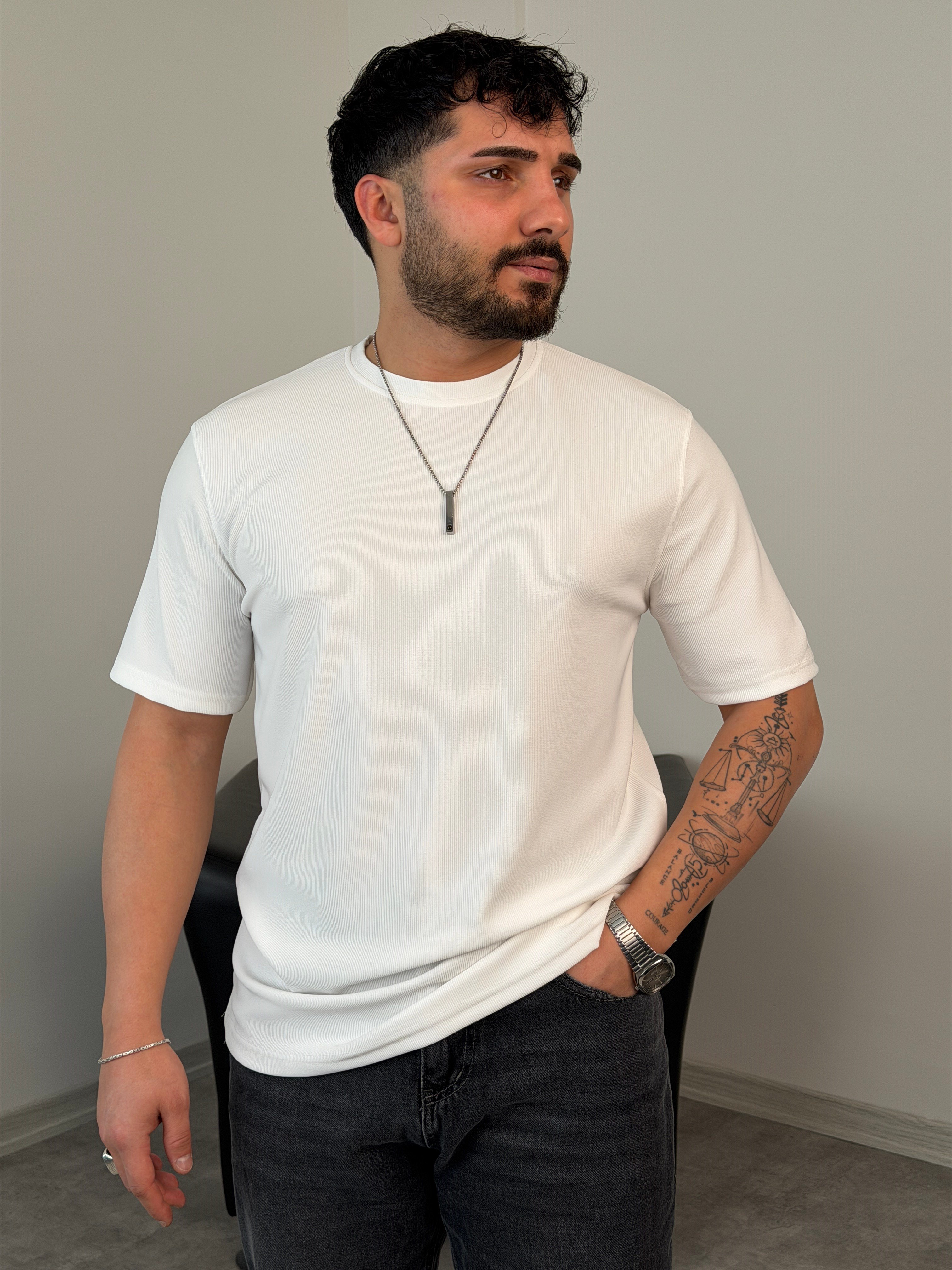 YIRTMAÇ DETAY BASİC TİŞÖRT BEYAZ