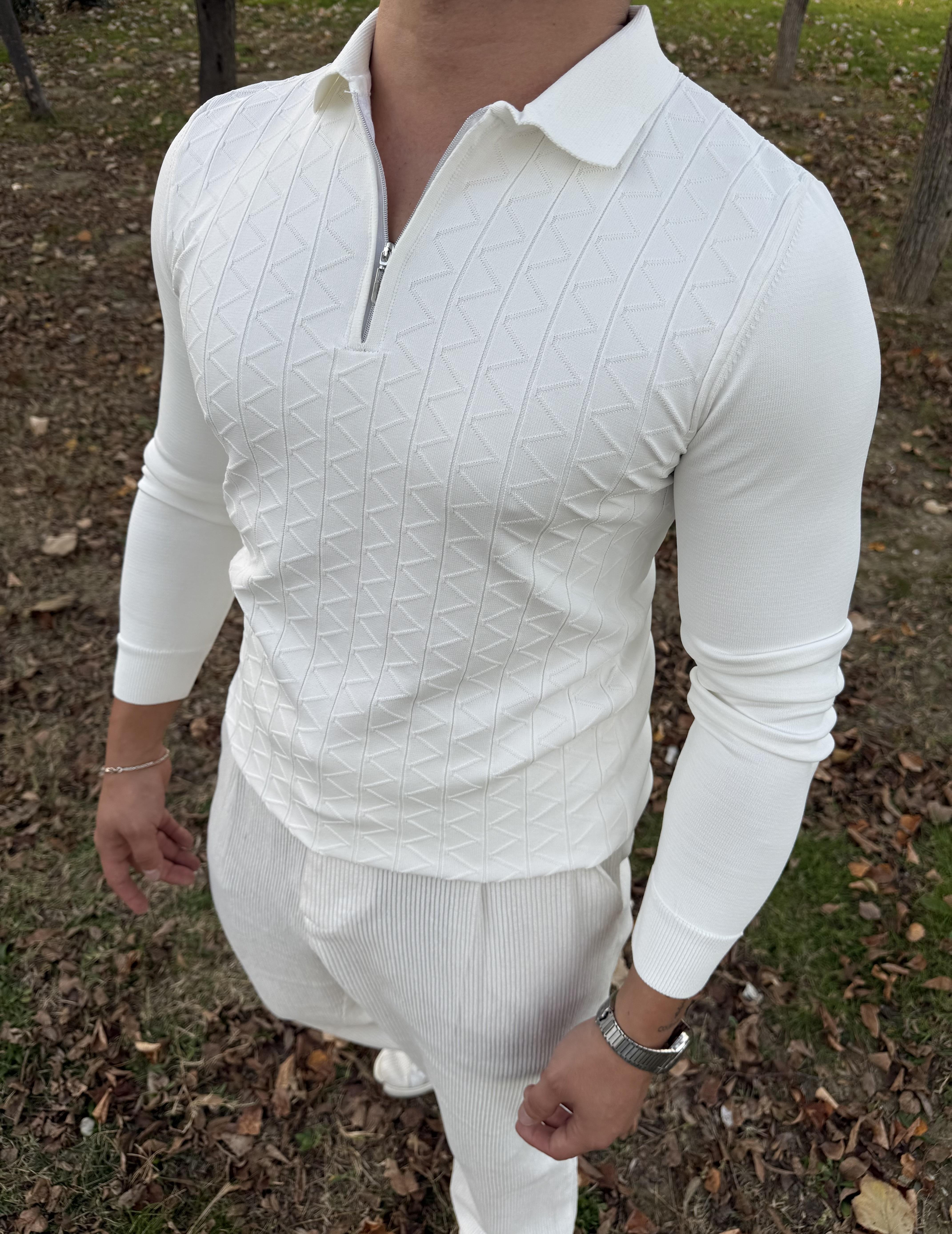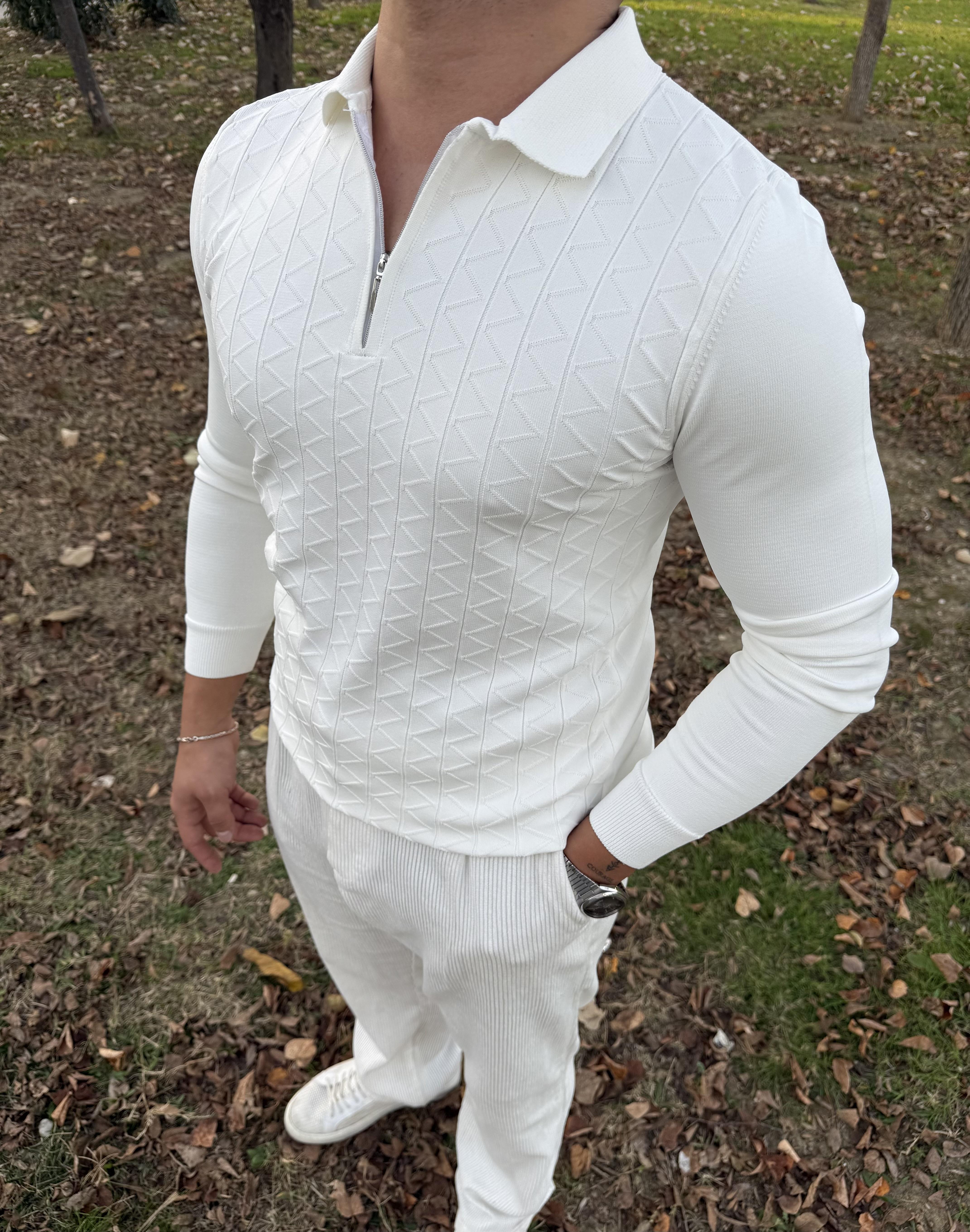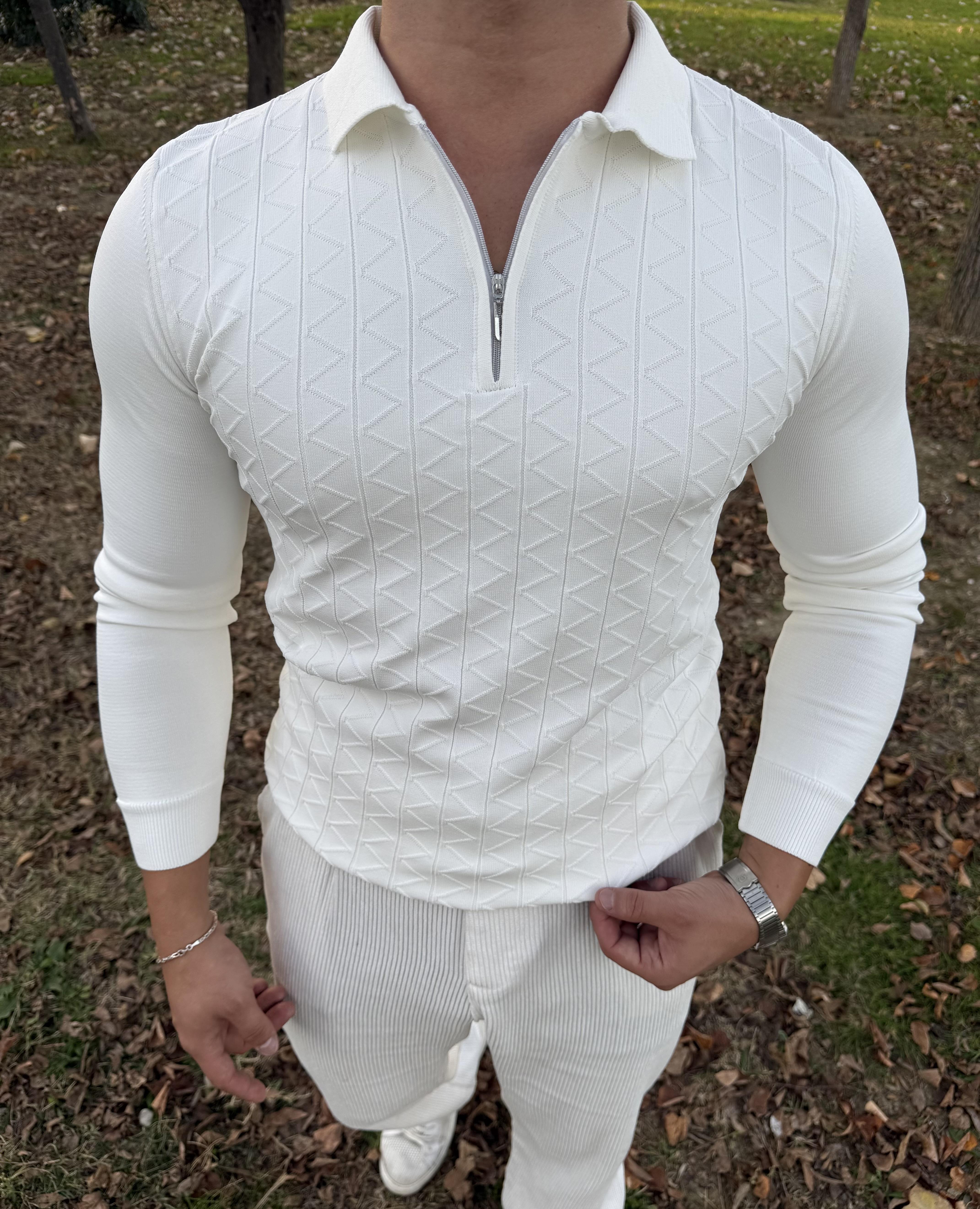 Z desen triko yarım fermuar BEYAZ
